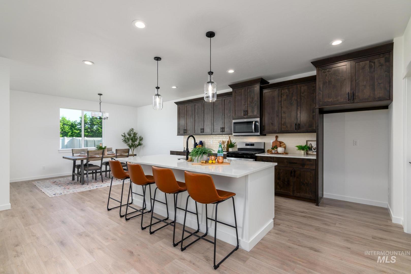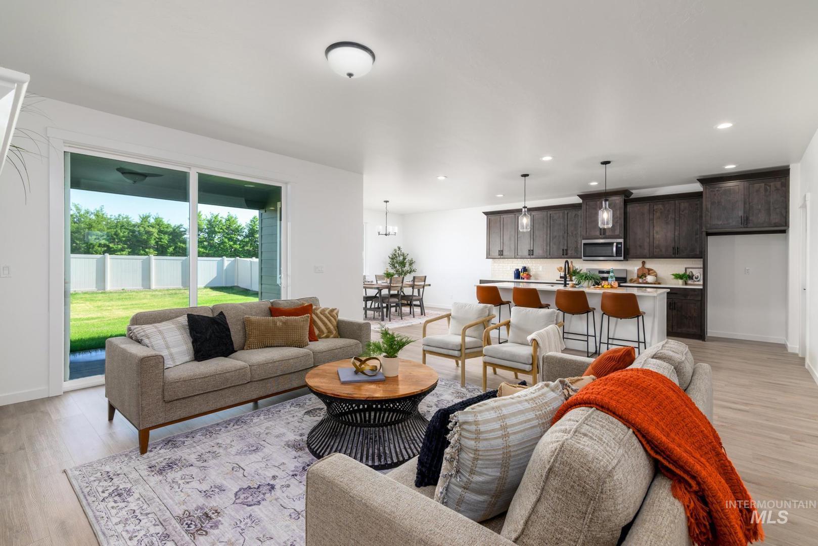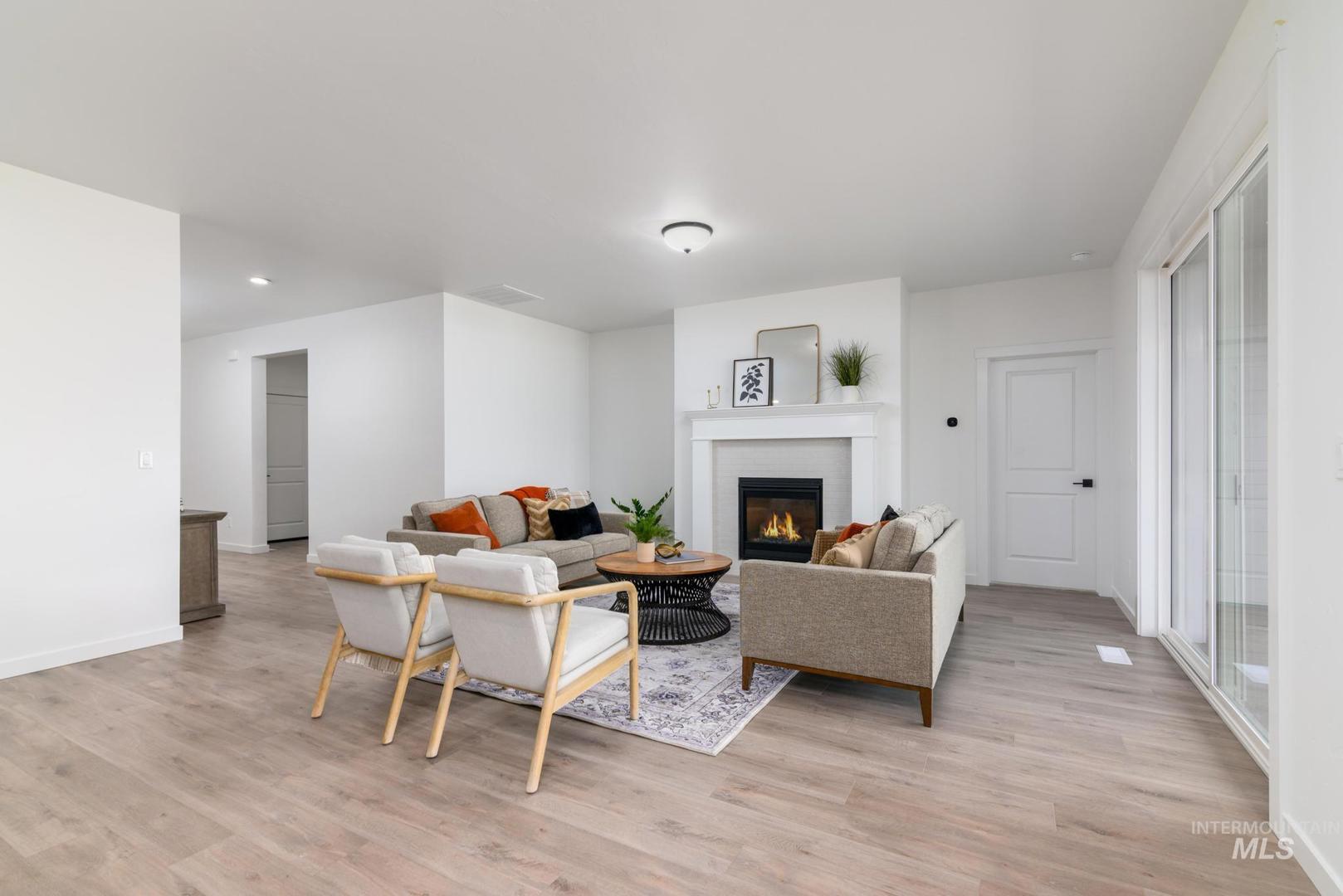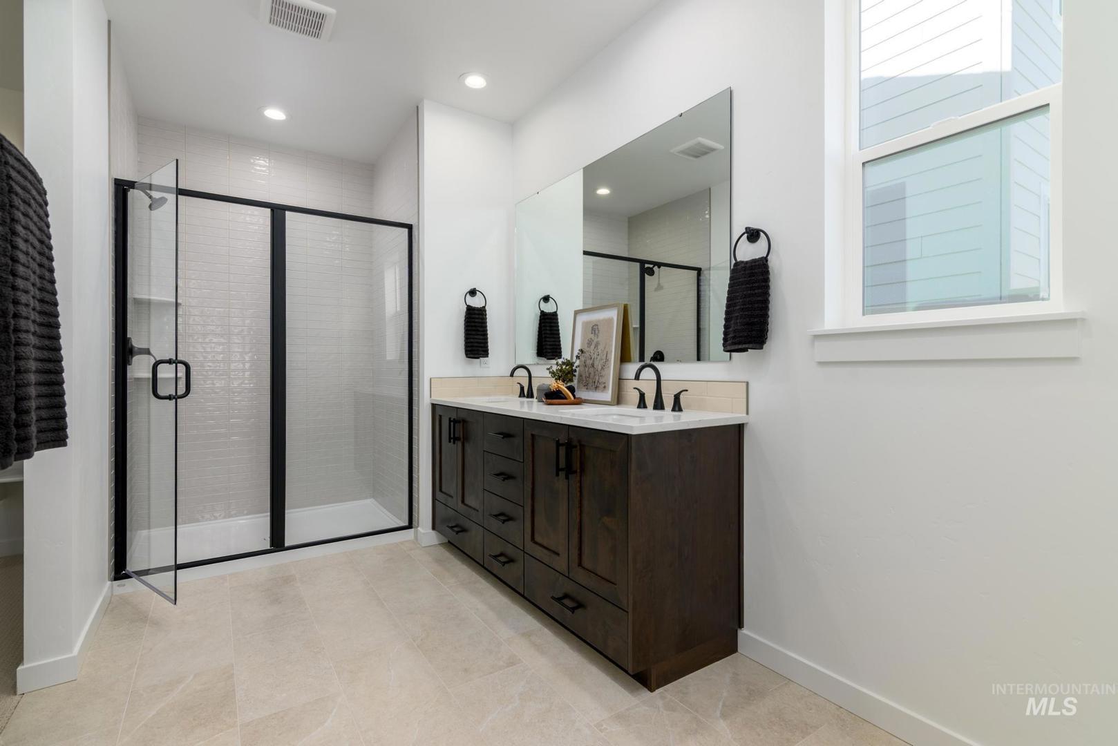 The Connor home design is the epitome of luxury living, featuring an open floor plan that maximizes space and functionality. As soon as one enters through the foyer, they are greeted with a great room that impresses beyond measure. Adjacent to this is an exquisite casual dining area and kitchen equipped with a large island perfect for preparing gourmet meals. A walk-in pantry provides ample storage for all your cooking needs while the everyday entry ensures convenience in every aspect of life. This single family home boasts a primary suite complete with dual sink vanity, luxurious shower, walk-in closet ensuring privacy from other rooms in the house. There is also outdoor living space where owners can enjoy sunsets or entertain guests on the covered patio. Front and rear landscape included. Home is under construction and photos are similar. BTVAI