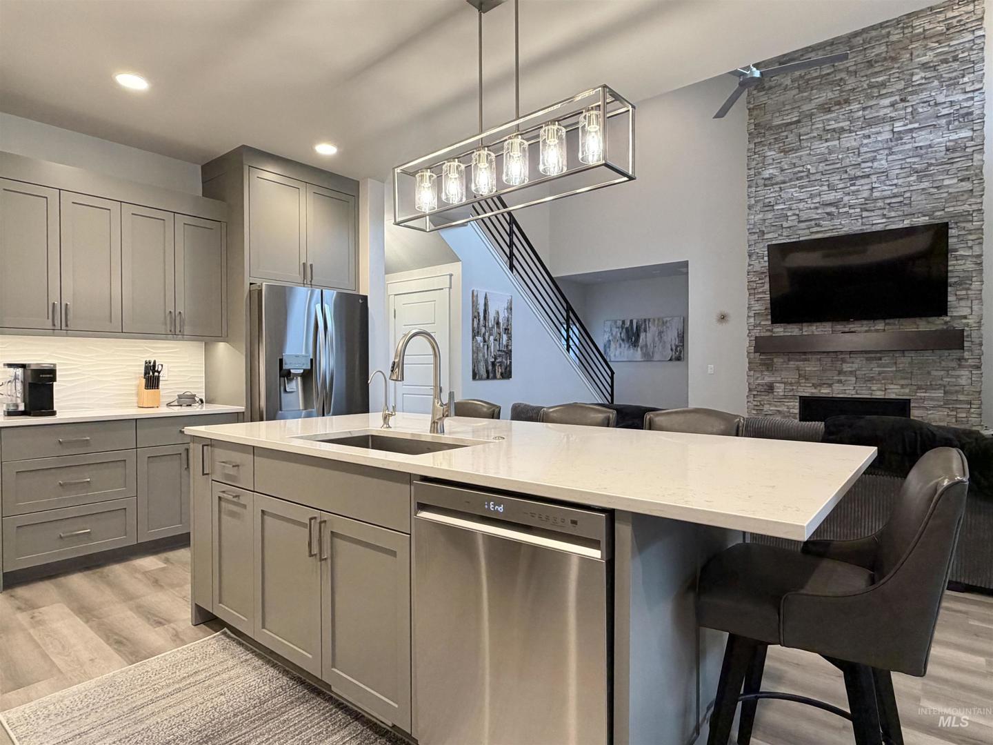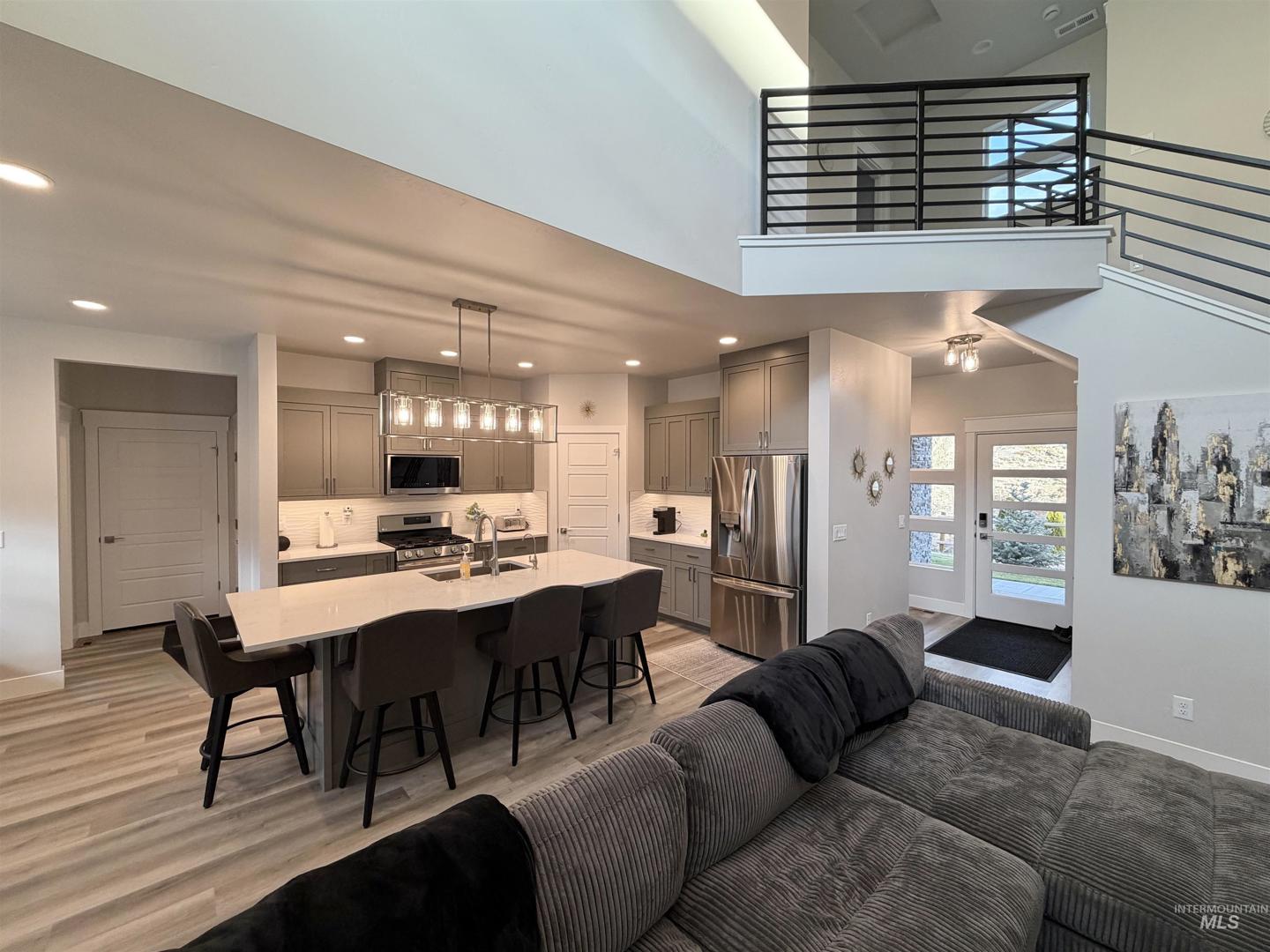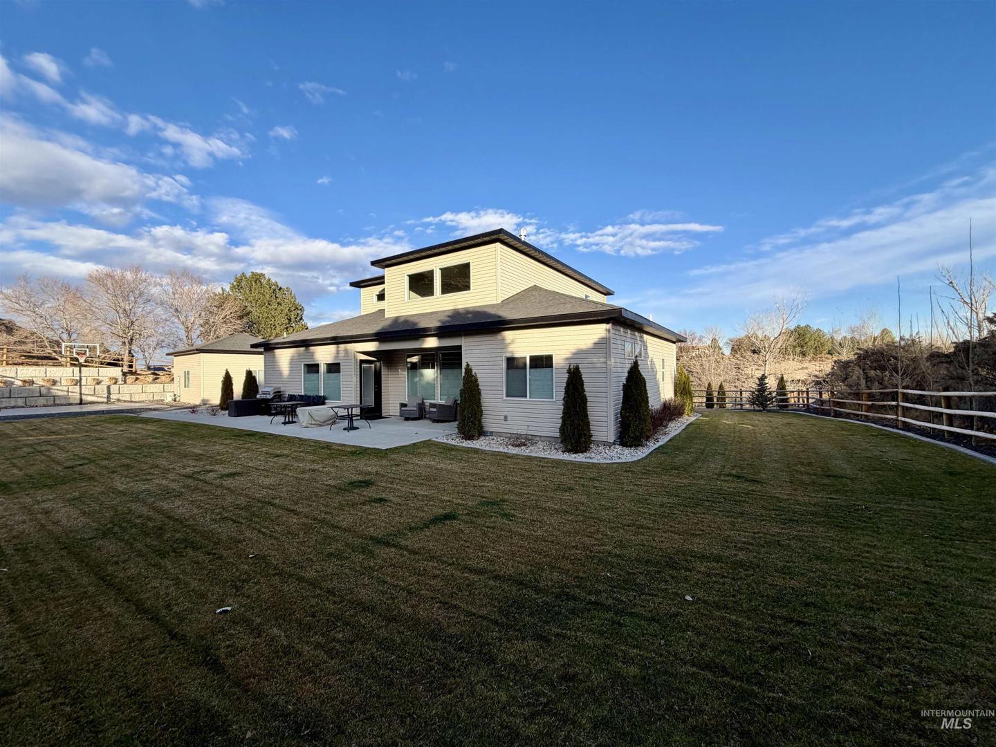 This custom 2024 residence blends modern architecture, smart technology, and privacy in the gated Kanaka Rapids community. Located in the hills above the Snake River just 30 minutes from Twin Falls, the property backs to a large hillside, creating a secluded backdrop and added privacy. Thoughtfully designed with clean lines and quality finishes throughout, the home has been lightly used as a second residence since completion and presents in exceptional condition. Smart-enabled systems allow control of irrigation, garage doors, HVAC, and the interior and exterior camera security system from your phone, along with a tri-zone furnace, RO water filtration system, and Starlink high-speed internet. The landscaped grounds include a heated and cooled shop currently utilized as an office and bonus living space, a basketball court, and outdoor areas ideal for relaxing or entertaining. Residents enjoy private trails, tennis court, ponds, and lake access. Offered fully furnished—including furniture, televisions, and household items—with furnishings valued at over $25,000, creating a turnkey opportunity. The adjacent creekside lot across the street is also available; seller will consider favorable pricing with a bundled purchase of both parcels. The lot is fully fenced and landscaped with over 50 trees on timed drip irrigation and bordered by a year-round creek. Address:4506 Hidden Canyon Lane.
