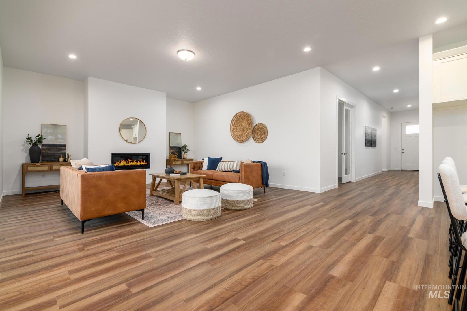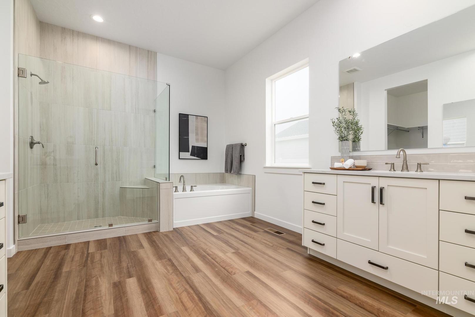 "The Forest." Stunning single story home with a charming front porch. Inside the foyer, an impressive great room with fireplace warmly welcomes guests and offers easy access to the casual dining area and kitchen with a center island - perfect for entertaining. Additionally, this home features a private office, perfect for working from home. A covered patio accessed from the casual dining via beautiful sliding glass doors that provide plenty of natural light. Primary bedroom suite includes a luxurious en-suite bath featuring private water closet, separate soaking tub, dual vanities, and a tile surround shower with semi-frameless enclosure. 3 additional bedrooms and 2 full baths round out this beautiful home. 4 car garage. Front and rear landscape included. Home is under construction. Photos similar. BTVAI