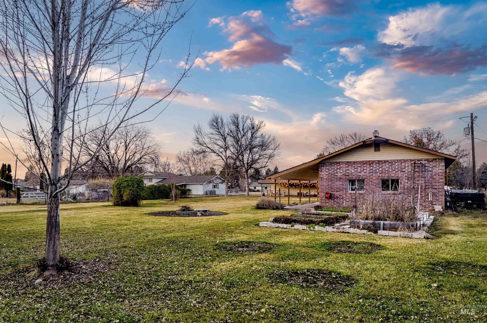 Located in Boise, this rare 0.92-acre property offers an exceptional combination of space, privacy, and convenience. With quick access to Eagle Road and Chinden Boulevard, commuting and daily errands are effortless. The 1,872-square-foot home features three bedrooms and two bathrooms, updated flooring, and a fully remodeled kitchen. A cozy wood-burning fireplace, family room just off the kitchen, and an oversized front living room provide flexible spaces for both everyday living and entertaining. In addition to the attached two-car garage, the property boasts an expansive 900-square-foot, four-car insulated shop complete with oversized doors, a full bathroom, and a wood stove. Set on nearly an acre, the grounds include a paver driveway, covered rear patio, fire pit, vegetable garden, and mature landscaping that enhances privacy and creates a peaceful setting. All major appliances have been updated, and the refrigerator, washer, and dryer are included. Just minutes from the Boise and Eagle Greenbelt, BanBury Golf Course, and Expo Idaho, opportunities offering this much land, shop space, and prime location are increasingly rare.