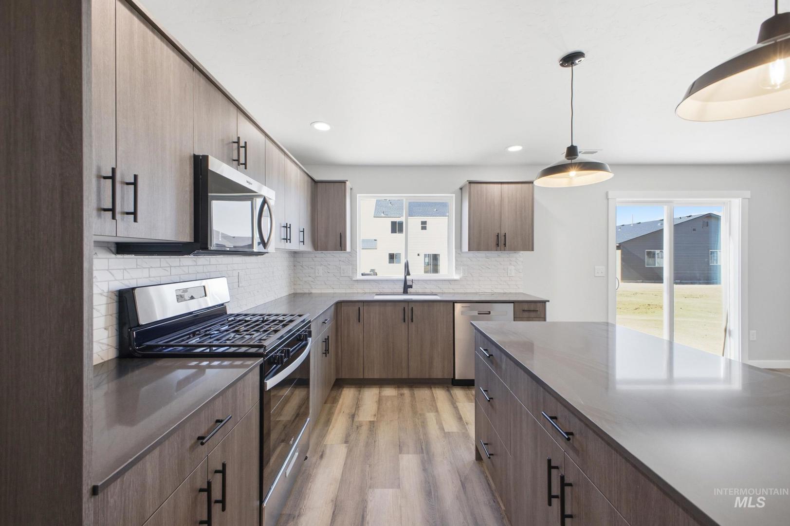 Get Lucky with 3.49% – promotional rate available! Ask a Sales Specialist for details. Embrace the comforts of a brand new home in Meridian, Idaho. The Lennox 2332 invites you into a beautifully balanced two-story design where comfort and style come together effortlessly, offering an upstairs retreat with the primary suite, three additional bedrooms, and a bright loft that feels like a private escape at the end of the day. The main level opens into a spacious living, dining, and kitchen area that flows seamlessly, complemented by a generous flex room perfect for an office, library, or creative space. The kitchen boasts upgraded finishes, including stainless steel appliances, a gas range, and stylish solid surface countertops. Easy access to the patio enhances indoor-outdoor enjoyment, creating the ideal setting for relaxing or entertaining. A thoughtfully designed laundry area adds even more convenience, while modern finishes throughout bring a refined touch to every corner. With its intentional layout and inviting atmosphere, the Lennox 2332 delivers a home that feels both sophisticated and effortlessly livable. Photos are of the actual home!