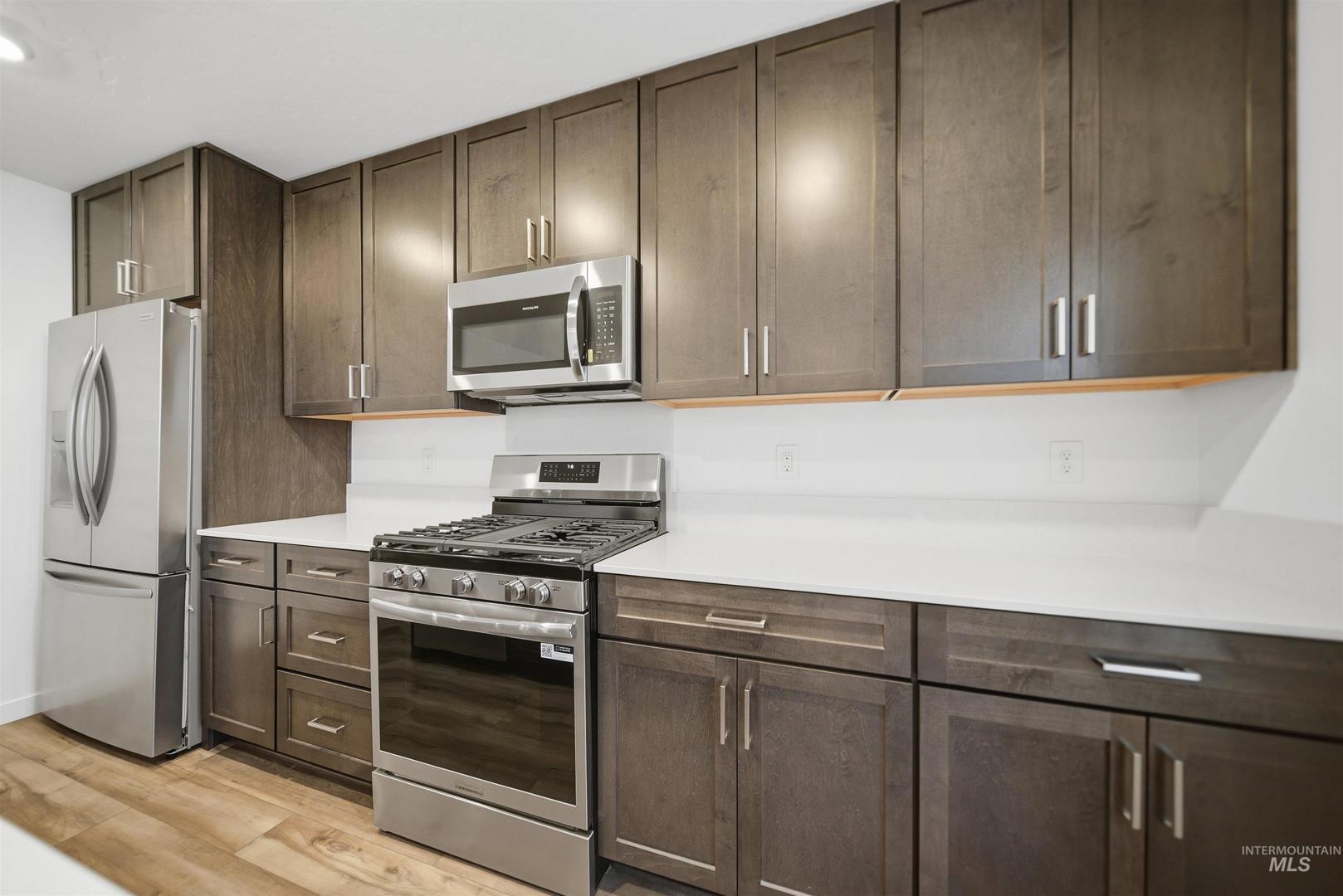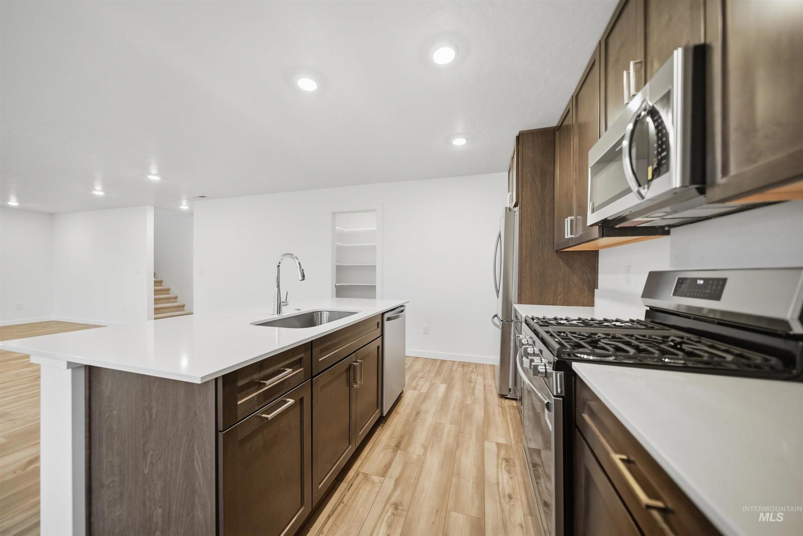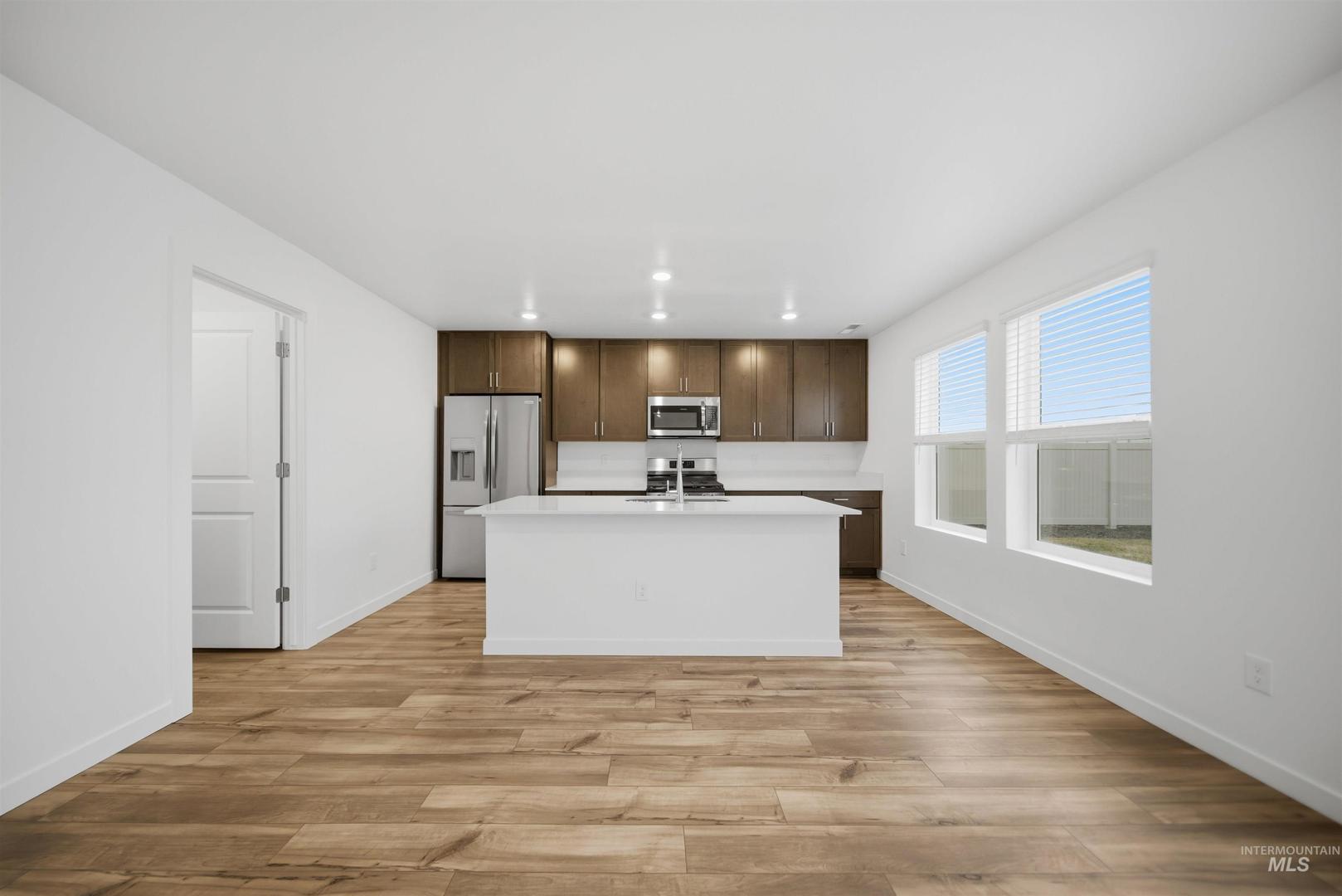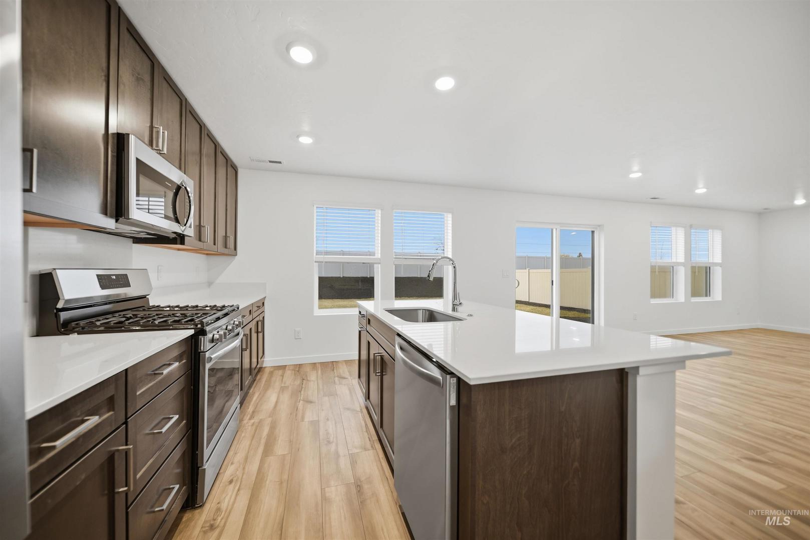 Move-in ready and packed with upgrades, this 4 bedroom, 3 bath home with a 3-car garage in the sought-after Sweetwater Glen community includes a refrigerator, washer/dryer, finished landscaping, and window blinds - everything you need from day one. The Canyon Series exterior with stone accents welcomes you home. Inside, the kitchen is a true centerpiece featuring stainless-steel appliances, quartz countertops, a gourmet island, and Shaker-style soft-close cabinetry, plus convenient pull-out recycle and trash bins. The owner’s suite of a spacious walk-in closet and a dual vanity with quartz countertops. Luxury vinyl plank flooring adds style and durability. Enjoy a landscaped yard, a fully fenced backyard, and energy-efficient features throughout. Sweetwater Glen wonderful community amenities with green spaces and walking paths, a tot lot, clubhouse, and community pool - plus you’re just minutes to the freeway, shopping, and dining.