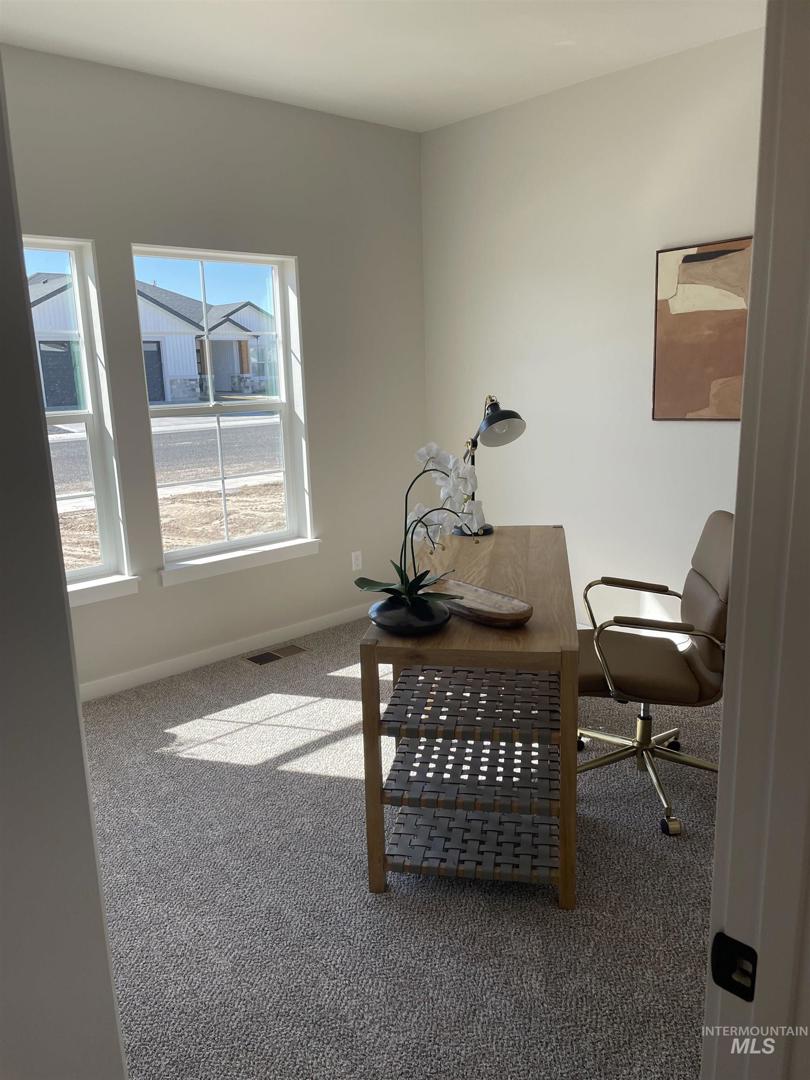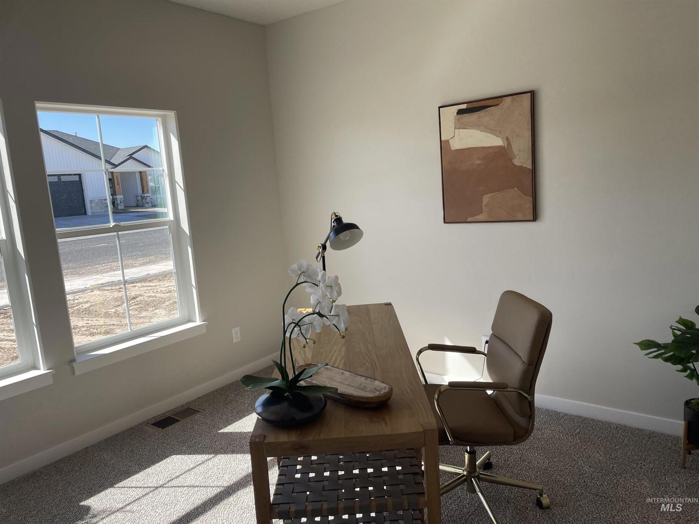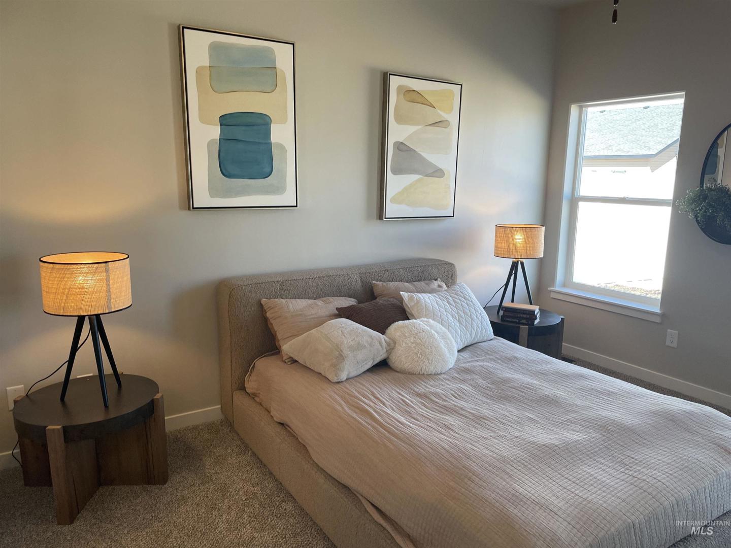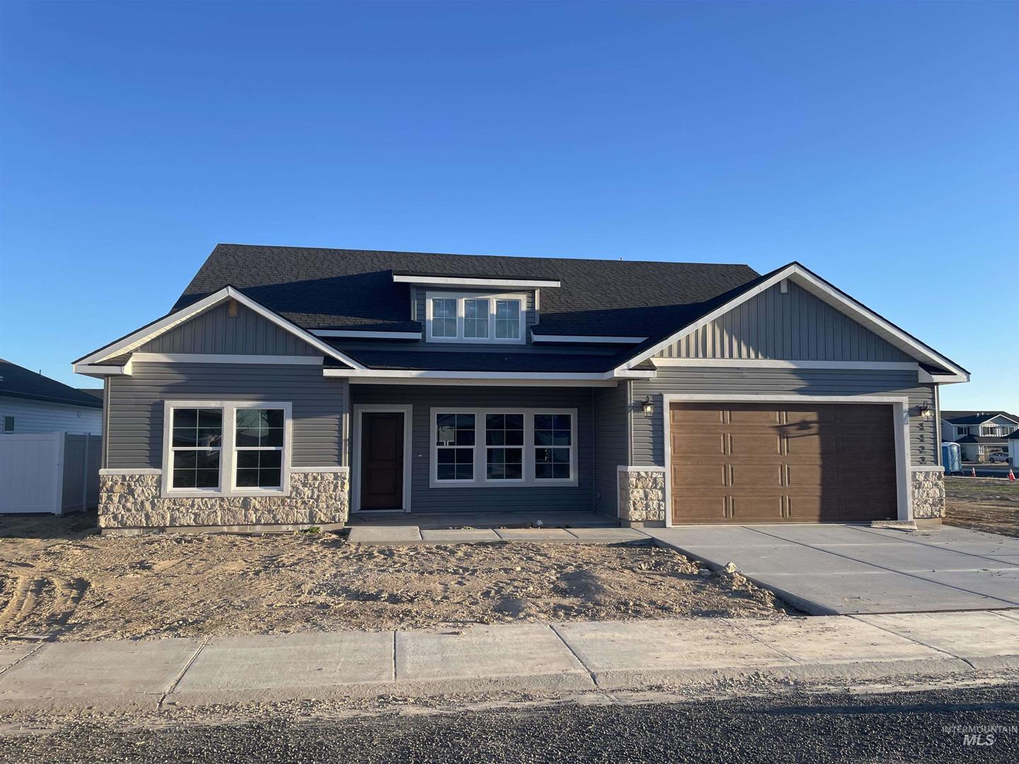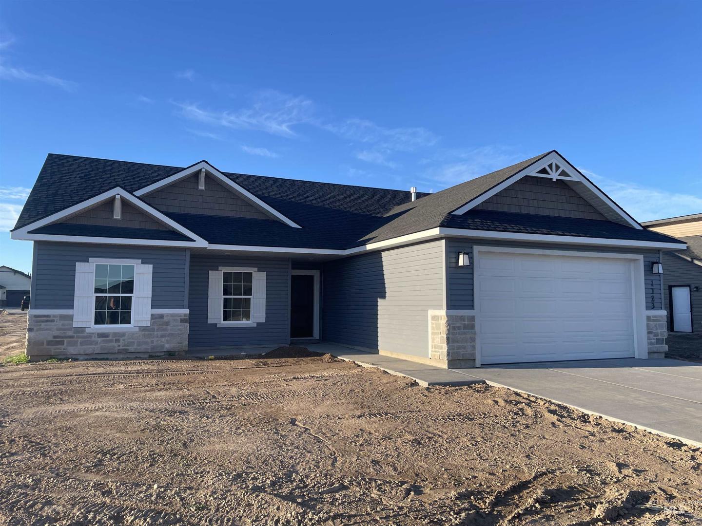 Located at 1122 Crestview in Twin Falls, Idaho, this 3 bedroom, 3 bathroom home offers approximately 1,568 square feet of living space with a 2-car insulated garage and 15’ wide RV parking. This home is move-in ready and features an open-concept great room, kitchen, and dining area with 9’ ceilings and a vaulted living space. The kitchen includes quartz countertops, a center island, tile backsplash, cabinet storage, and a custom lighting package with black plumbing accents throughout. The primary suite offers a dual vanity and tile shower. A junior primary suite includes a private en suite bathroom. Additional features include vinyl plank flooring in main living areas, carpeted bedrooms, additional cabinetry in the laundry room with a custom locker, stained front door, covered front and back patio, and a wood-look garage door. Buyer to verify all information.