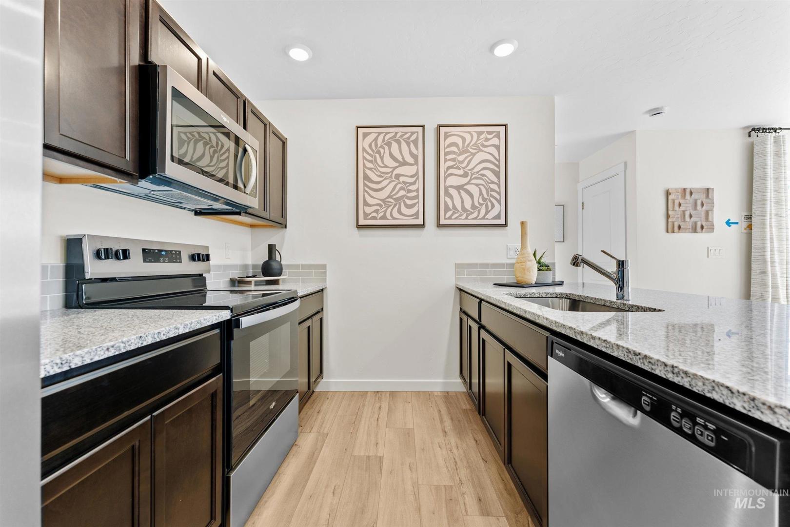 This beautiful, single-story home showcases an open floor plan. Enjoy cooking and entertaining in the modern kitchen, which includes stainless steel appliances, quartz countertops, and single-basin undermount sink. Relax in the primary suite, which features a walk-in closet and connecting bath that offers a dual-sink vanity and spacious shower. The back patio provides the ideal setting for outdoor entertaining and leisure. PHOTO`S SIMILAR