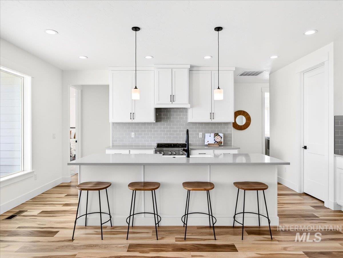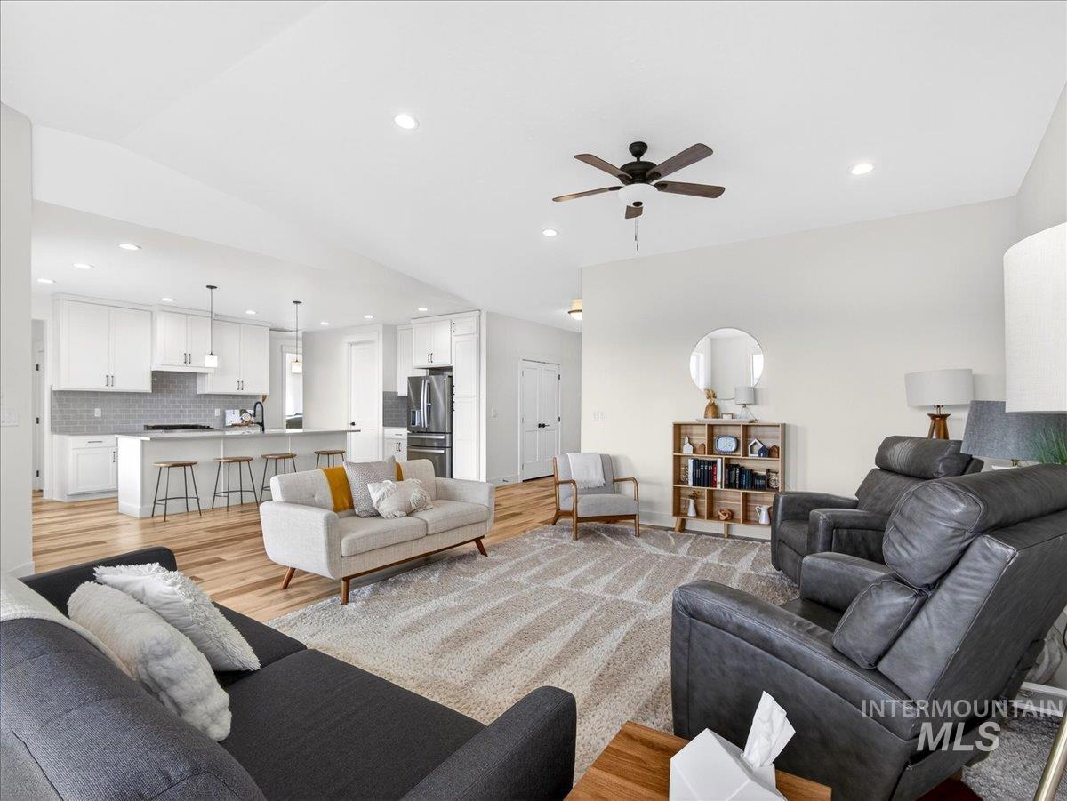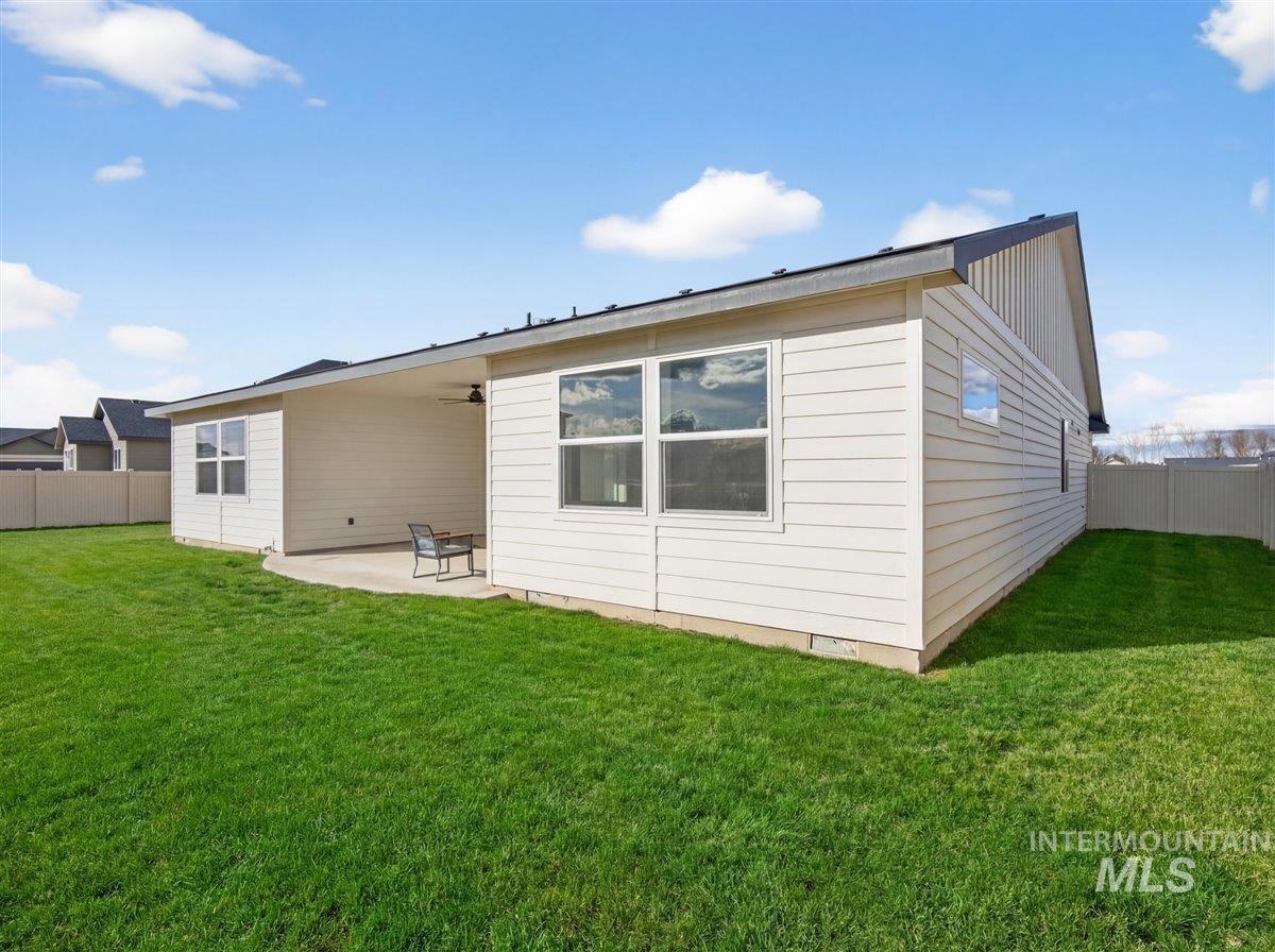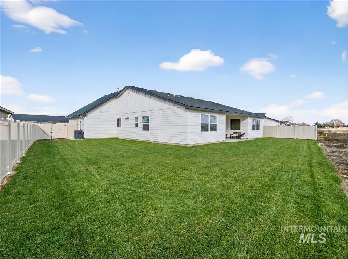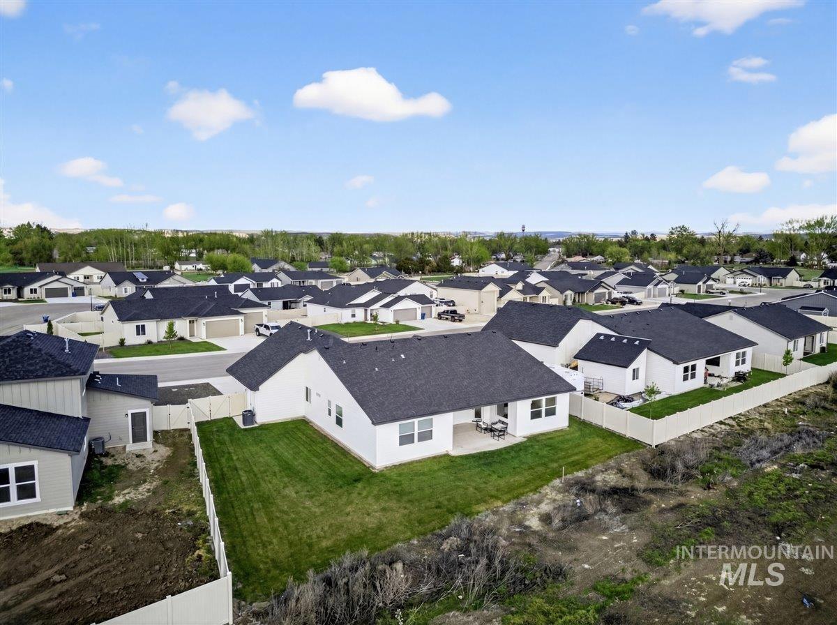 Discover this exceptional home in the highly sought-after Harvest Creek subdivision in New Plymouth, Idaho. Offering 2,275 square feet of thoughtfully designed living space, this residence features 4 spacious bedrooms and 2.5 bathrooms. The main living area makes a striking first impression with vaulted ceilings and an expansive picture window that fills the space with natural light. At the heart of the home, the kitchen is designed for both everyday living and entertaining, showcasing a gas cooktop and oven, quartz countertops, and a generous walk-in pantry. The private primary suite provides a relaxing retreat, complete with a spa-inspired bathroom featuring a soaking tub, walk-in shower, and ample closet space. Step outside to a fully landscaped backyard with a large covered patio-ideal for outdoor dining, entertaining, or enjoying Idaho’s beautiful sunsets. The oversized three-car garage includes a built-in workbench, providing the perfect space for hobbies, projects, and additional storage. Have toys? RV parking offers additional space for recreational vehicles. Harvest Creek is a well-maintained community just minutes from schools and everyday amenities. Move-in ready and meticulously maintained, this home offers comfort, space, and functionality in a desirable location.