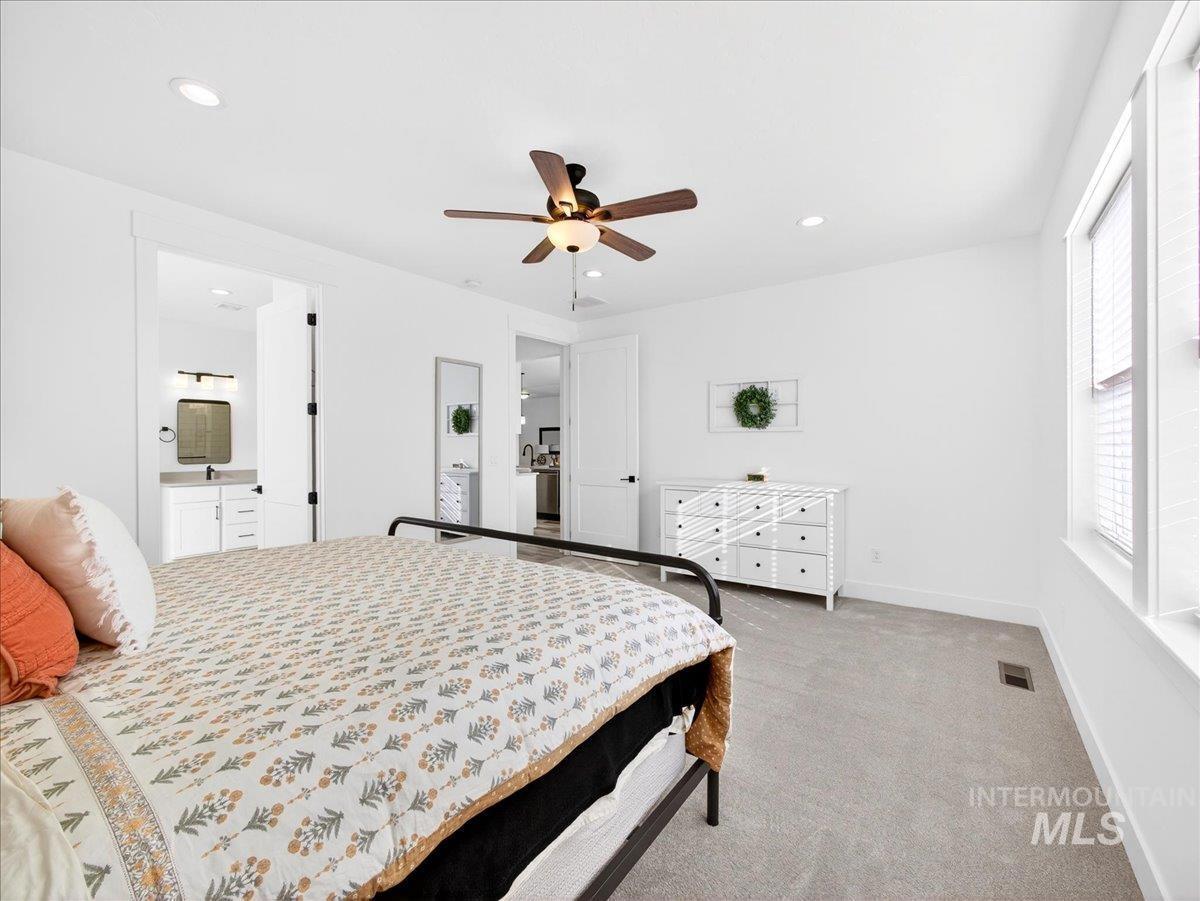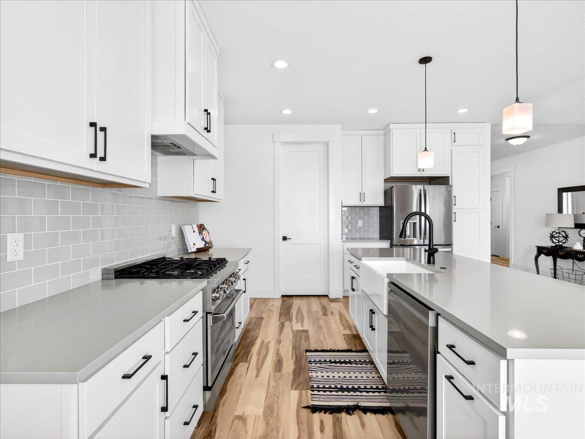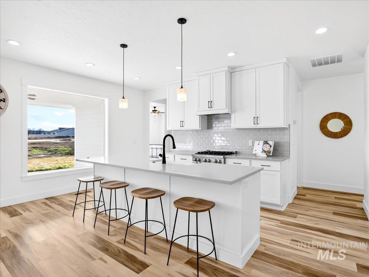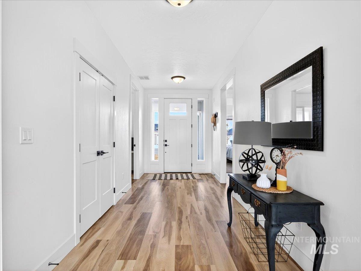 Discover this exceptional home in the highly sought-after Harvest Creek subdivision in New Plymouth, Idaho. Offering 2,275 square feet of thoughtfully designed living space, this residence features 4 spacious bedrooms and 2.5 bathrooms. The main living area makes a striking first impression with vaulted ceilings and an expansive picture window that fills the space with natural light. At the heart of the home, the kitchen is designed for both everyday living and entertaining, showcasing a gas cooktop and oven, quartz countertops, and a generous walk-in pantry. The private primary suite provides a relaxing retreat, complete with a spa-inspired bathroom featuring a soaking tub, walk-in shower, and ample closet space. Step outside to a fully landscaped backyard with a large covered patio-ideal for outdoor dining, entertaining, or enjoying Idaho’s beautiful sunsets. The oversized three-car garage includes a built-in workbench, providing the perfect space for hobbies, projects, and additional storage. Have toys? RV parking offers additional space for recreational vehicles. Harvest Creek is a well-maintained community just minutes from schools and everyday amenities. Move-in ready and meticulously maintained, this home offers comfort, space, and functionality in a desirable location.