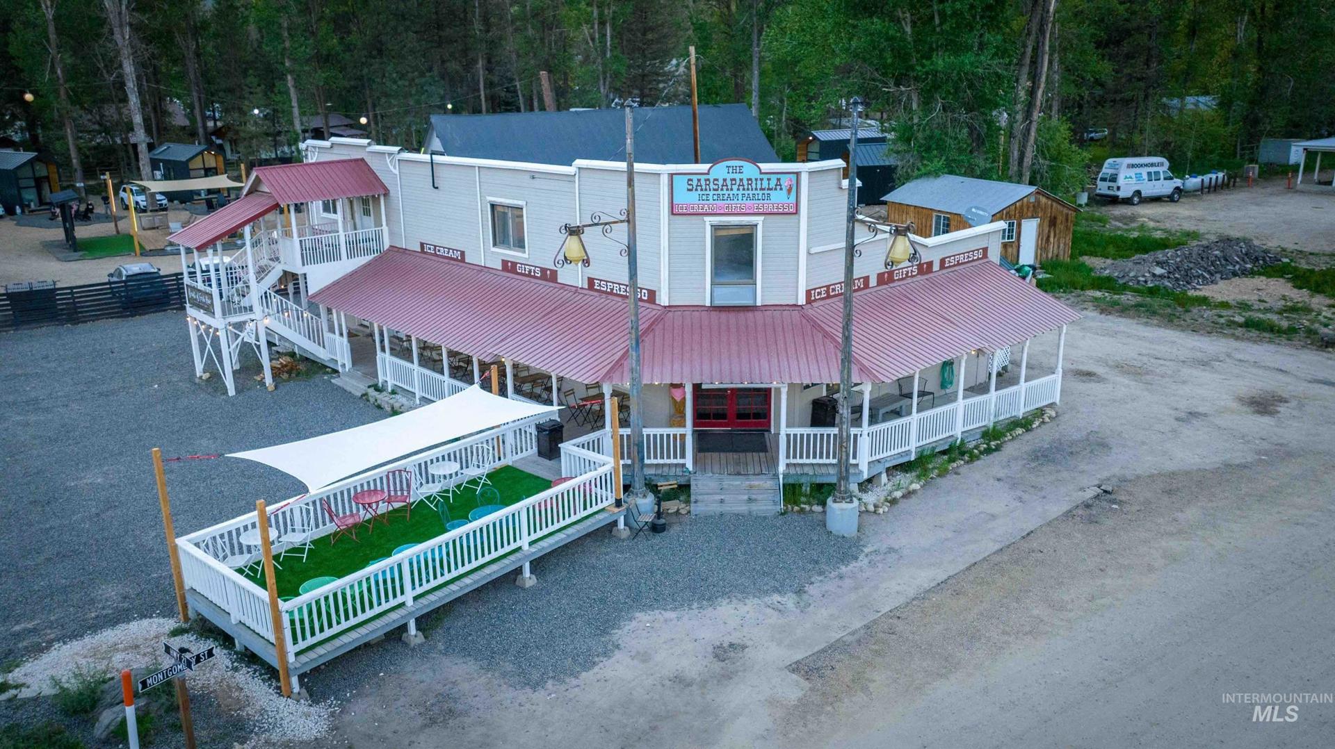 Incredible investment in the heart of historic Idaho City! This prime corner property at 101 Montgomery St features 118 ft of Hwy 21 frontage for maximum visibility. Home to the iconic Sarsaparilla Ice Cream Parlor & Chicory & Sage, this landmark includes a nostalgic boardwalk and western charm that draws locals and tourists alike. The +/- 2,871 SF building was extensively updated in 2022 and offers a versatile layout. It features 4 residential suites perfect for long or short-term rentals, a boutique hotel, or owner-occupancy. The main level hosts the thriving ice cream business, wine bar, and hair salon. This is a rare opportunity to own a stabilized, high-traffic business with significant year-round growth potential. Ample parking and a favorite destination status make this a true gem. Don’t miss this booming retail landscape!