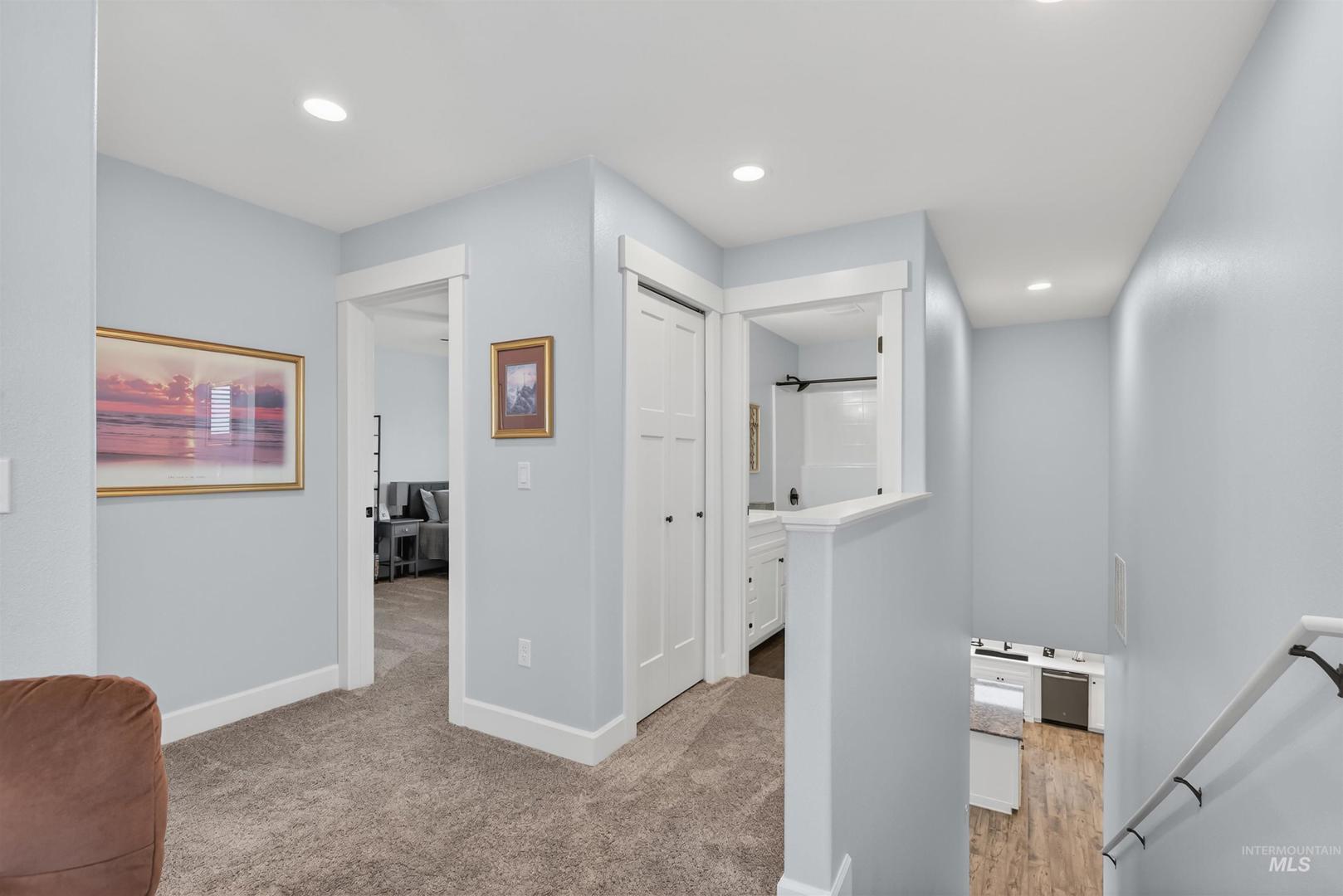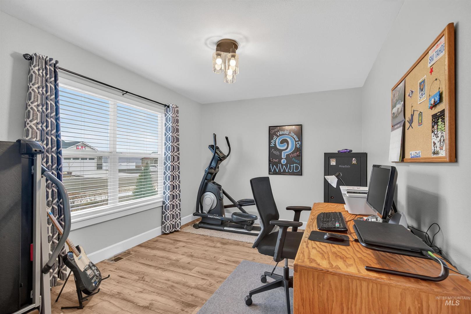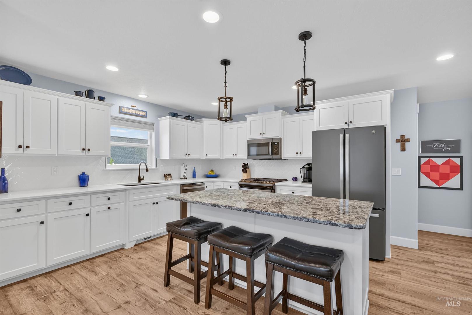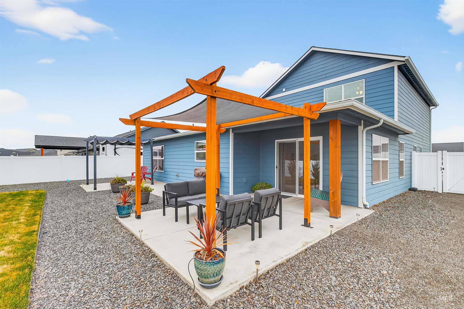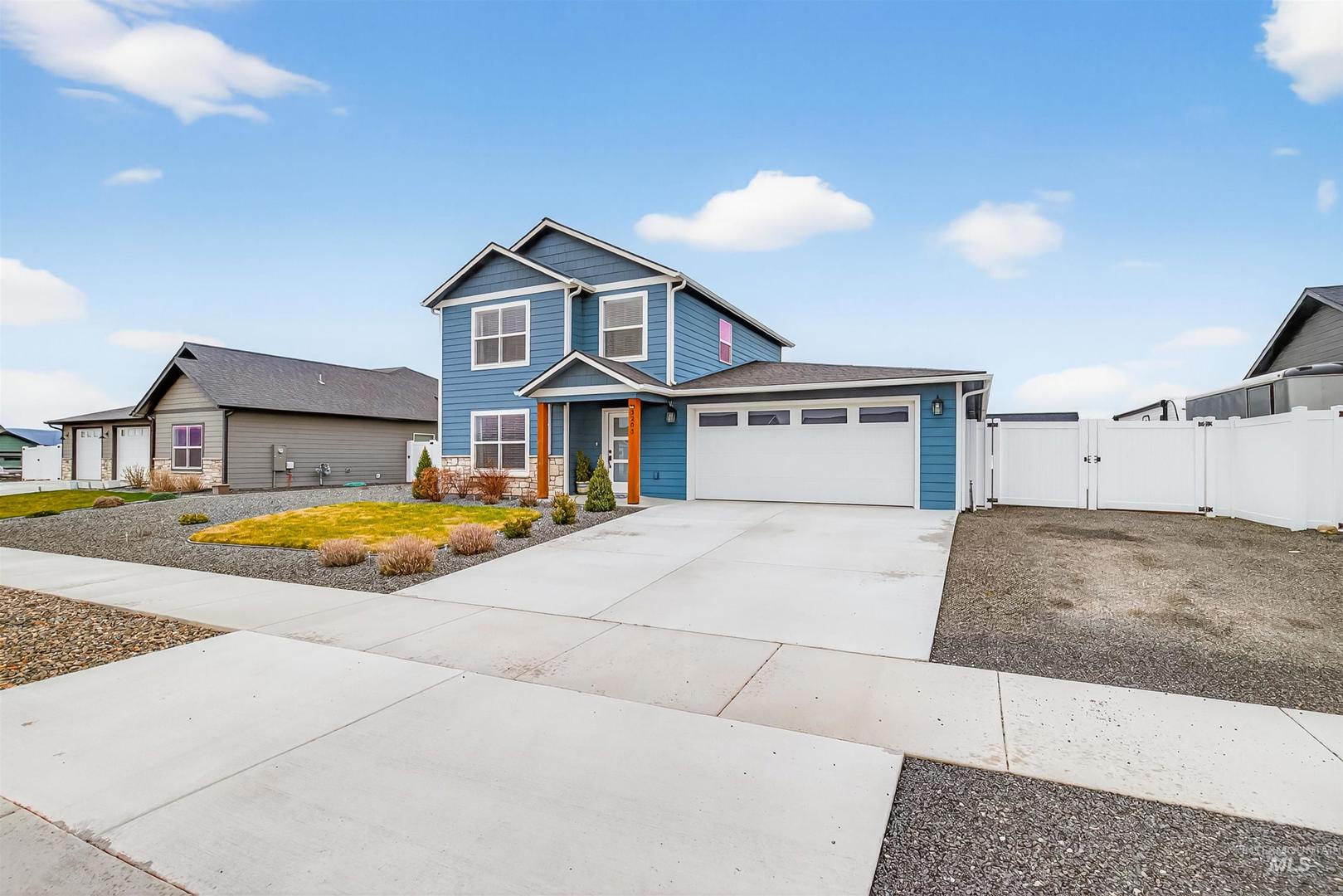 Welcome to Canyon Crest Estates in Lewiston! This move-in-ready 3-bedroom, 2.5-bath home offers nearly 2,200 sq ft with convenient main-floor living. The main level features a spacious master suite with dual vanity and walk-in tiled shower, plus a dedicated office or flex room and guest half bath. The kitchen is the heart of the home with quartz countertops, a large island, full tile backsplash and gas range. Upstairs includes two additional bedrooms, a full bath and a versatile bonus room capturing beautiful views of the Waha Mountains and surrounding valley. Outside, enjoy a fully fenced backyard with completed landscaping, sprinkler and drip systems, two pergola-covered patios and an 8x12 storage shed. The generous lot offers ample RV or boat parking plus room for a larger workshop or additional storage. Walking distance to Canyon Crest Park and minutes to schools.