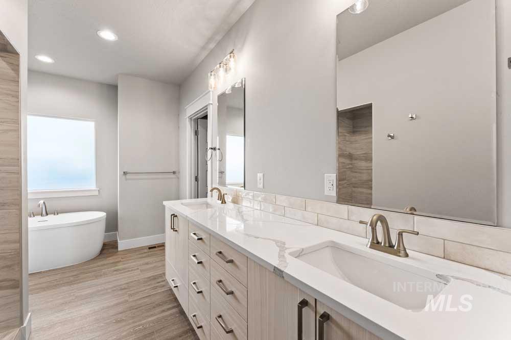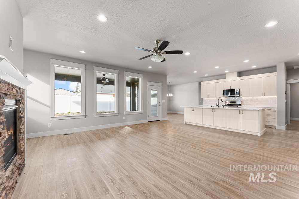 Brand new home with an RV bay in Pheasant Meadows! This stunning floor plan offers open-concept living with expansive living areas, durable LVP flooring, walls of natural light, a cozy fireplace, and a beautifully appointed gourmet kitchen. The kitchen features stylish neutral cabinetry, an extended entertaining island, designer tile backsplash, and stainless steel appliances. The private primary suite includes a generous walk-in closet and a luxurious en suite bath with dual vanities, a freestanding soaker tub, and a fully tiled walk-in shower with direct laundry access. Two additional bedrooms plus an office (or optional 4th bedroom) complete the versatile and comfortable layout. Enjoy low-maintenance outdoor living with a covered patio, perfect for year-round relaxation. A 3-car garage with an RV bay provides ample space for vehicles, storage, or recreational gear.