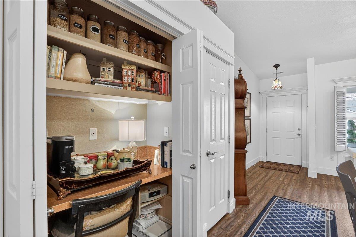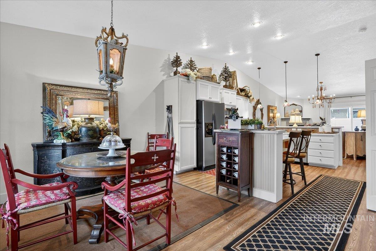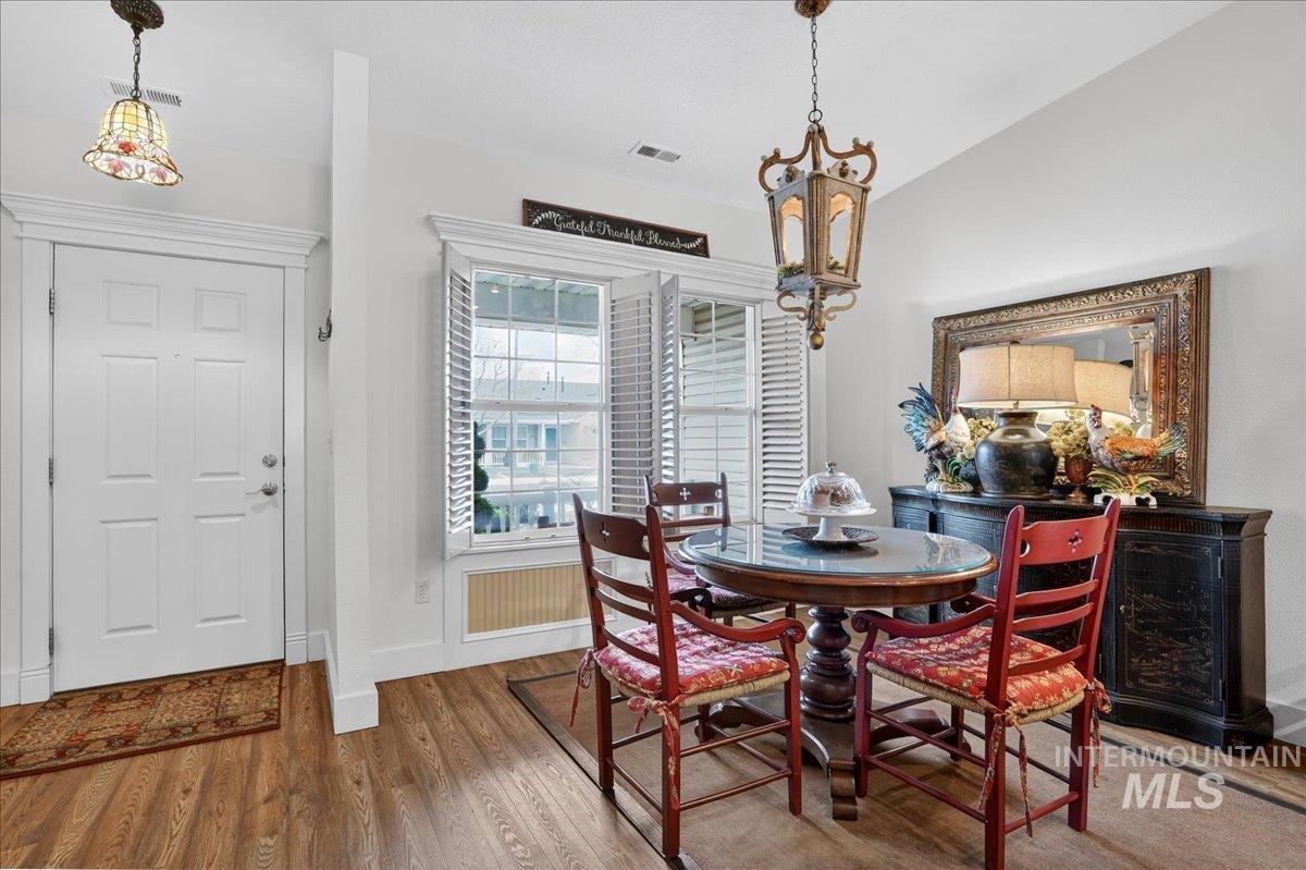 Welcome to your dream home! This beautifully maintained property features spacious living areas, modern finishes, and abundant natural light throughout. The open-concept kitchen is perfect for entertaining, complete with stainless steel appliances including a gas stove and new dishwasher. The stunning lighting will make you feel like you live in a French castle. When you want a little extra privacy, just close up the beautiful wood shutters. Step outside to the recently landscaped backyard oasis boasting concrete boarders and large patio. Perfect for entertaining. You will never have to worry about mowing your own lawn or rake leaves as HOA takes care of weekly maintenance. No need bringing in the mess form outside, the garage has a sink for all the messy cleanups. Prime central Meridian is just minutes from all the best shopping and entertainment. To add extra storage, attic has finished floor and shelving. Don`t miss the opportunity to make this exceptional residence yours!