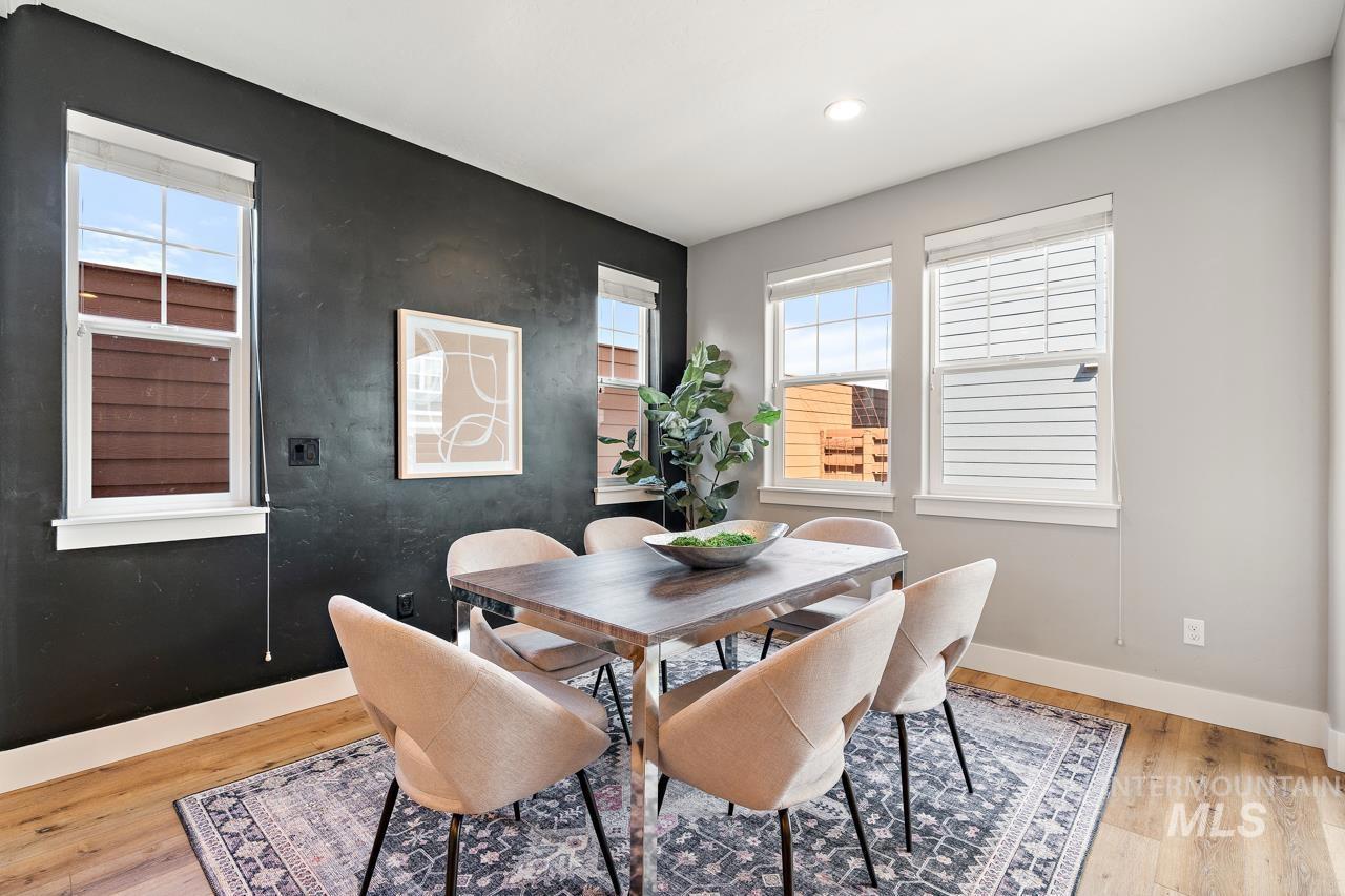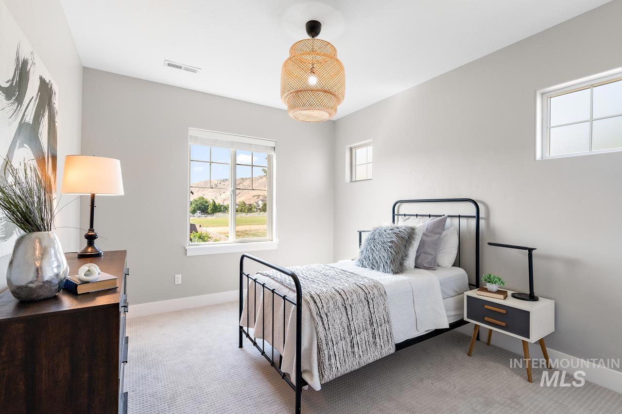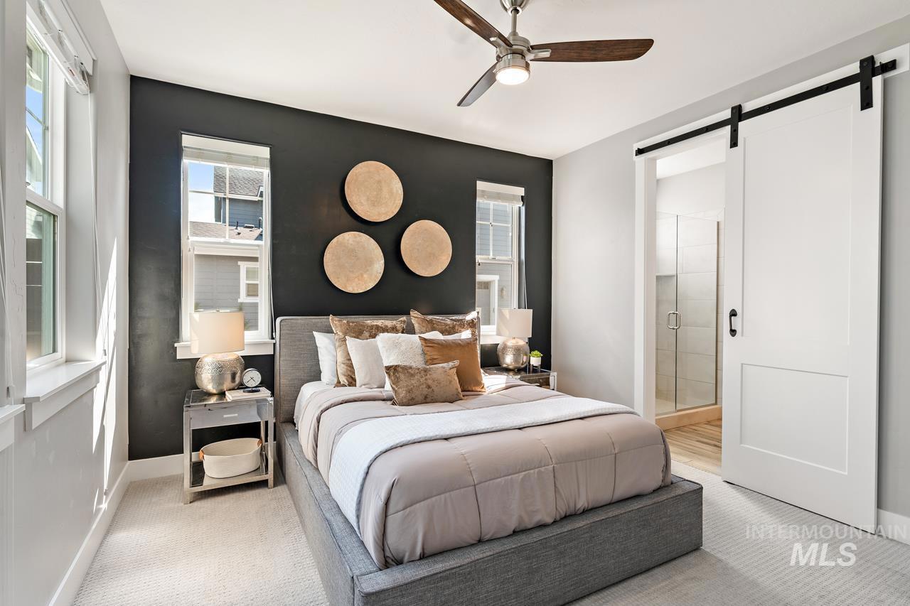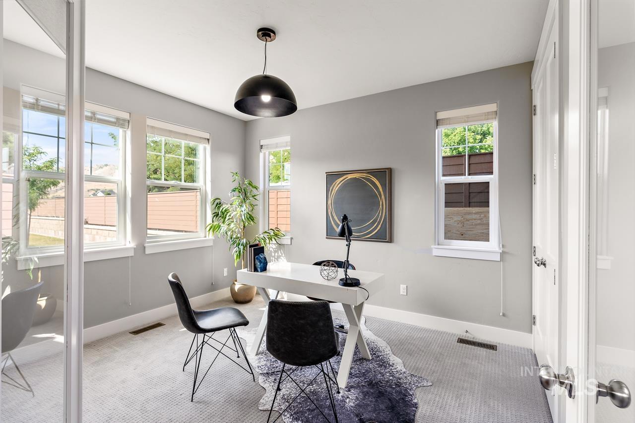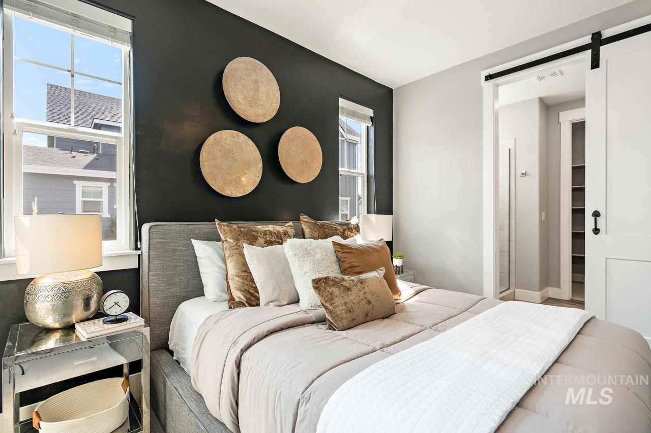 Perfectly situated on a private street with the rolling Boise foothills as your backdrop. This chic modern home has space for all! The flexible floor plan includes a private main-level master bedroom, flooded with natural light. The second main level bedroom makes a great office, complimenting todays work/study from home lifestyle. An open concept kitchen boasts gleaming granite countertops, 6 burner gas range, high-end stainless-steel appliances, and timeless bright white cabinetry that complements the rich flooring throughout. Generous living room is accented by a cozy gas fireplace & flows seamlessly to the covered patio with low-maintenance yard! Upstairs you will be delighted with three additional bedrooms and oversized loft for hanging out. This property is all about the location, location, location! Just a short walk to community pools, common areas, greenbelt & foothill trails. Bike to local eateries, mountain bike trails, and even bike to downtown Boise! Just a 10-minute drive to downtown Boise putting you at the heart of everything fabulous that Boise has to offer!