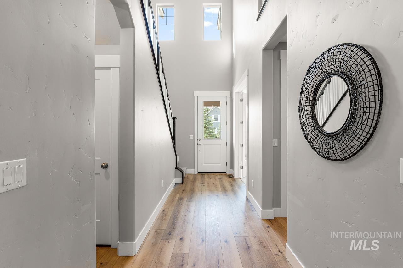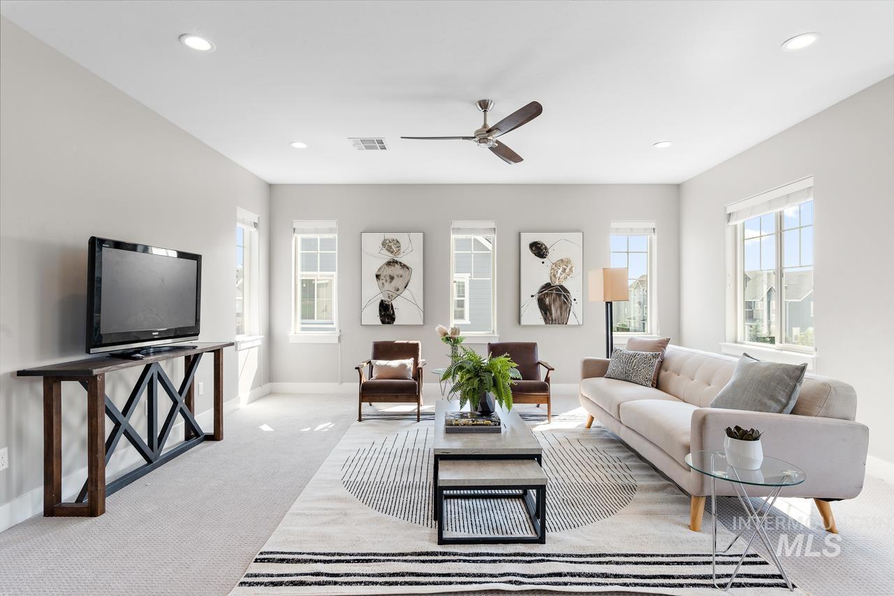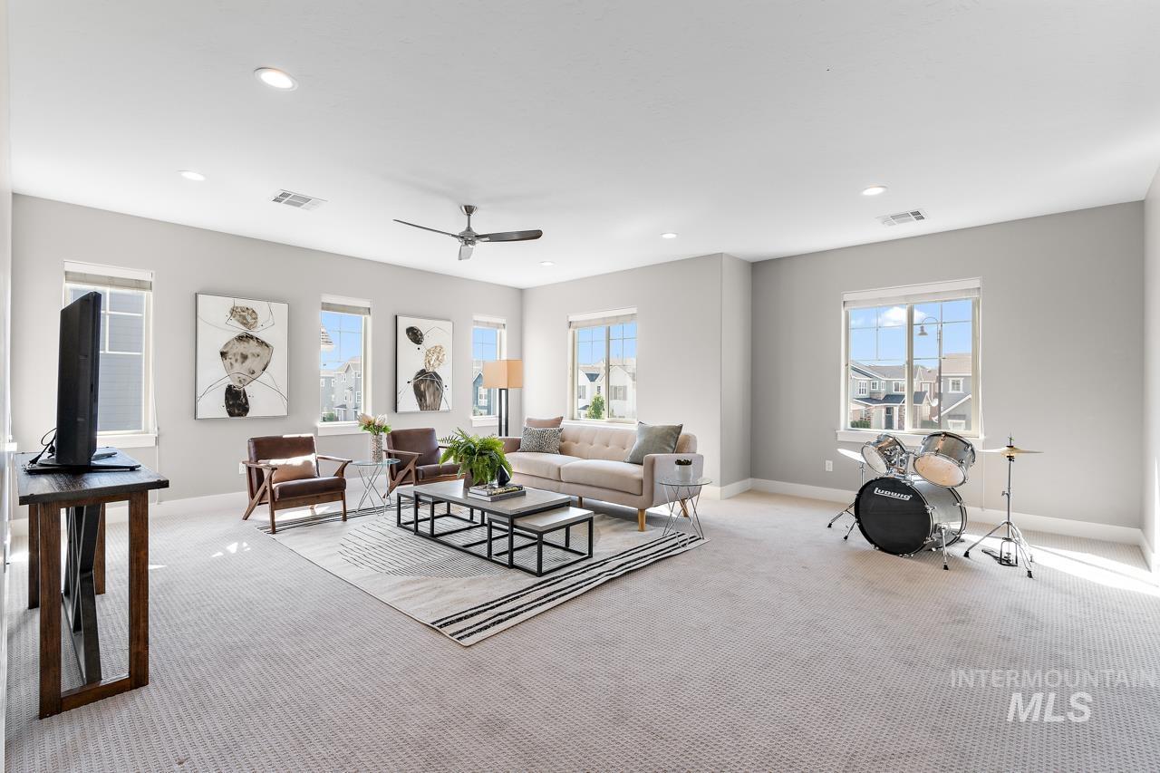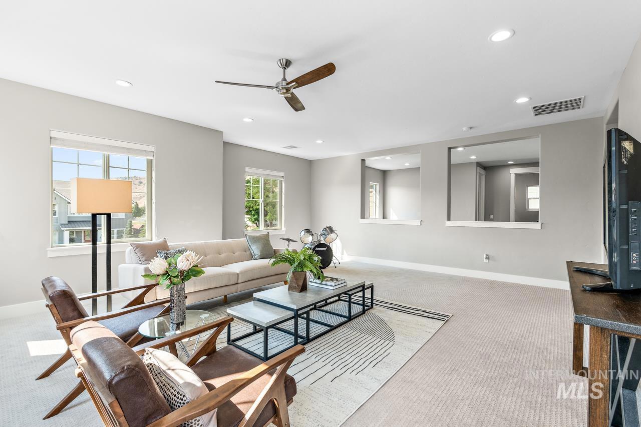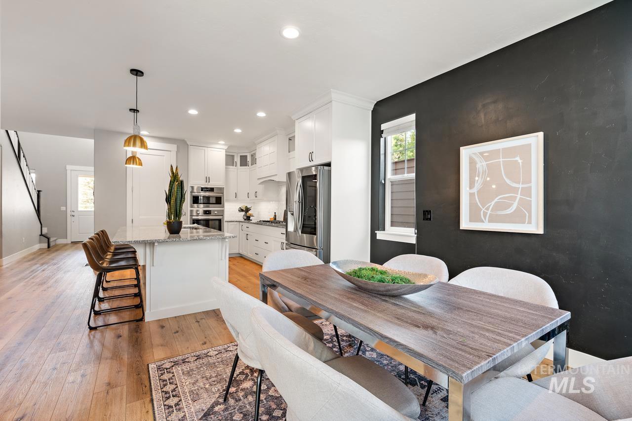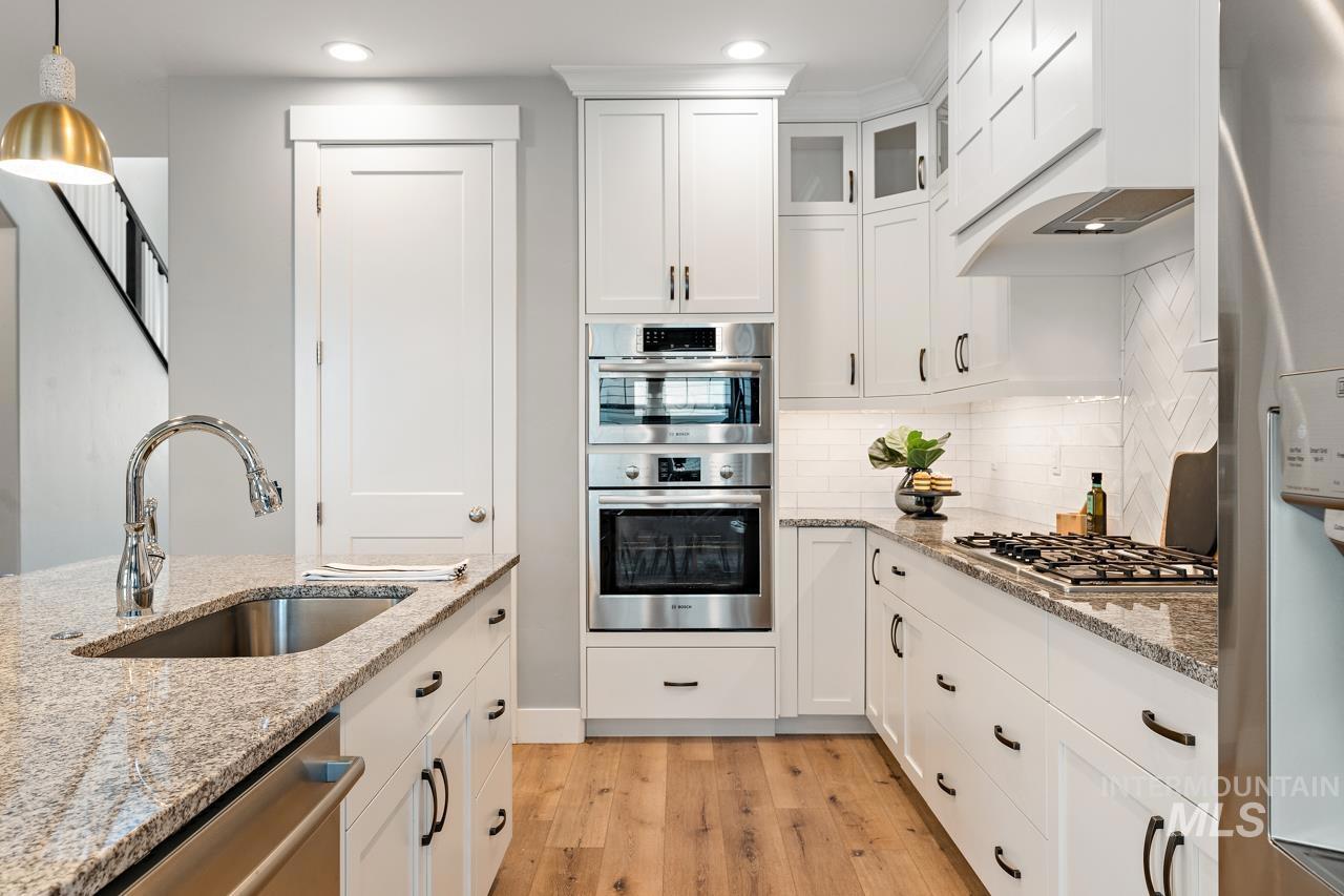 Perfectly situated on a private street with the rolling Boise foothills as your backdrop. This chic modern home has space for all! The flexible floor plan includes a private main-level master bedroom, flooded with natural light. The second main level bedroom makes a great office, complimenting todays work/study from home lifestyle. An open concept kitchen boasts gleaming granite countertops, 6 burner gas range, high-end stainless-steel appliances, and timeless bright white cabinetry that complements the rich flooring throughout. Generous living room is accented by a cozy gas fireplace & flows seamlessly to the covered patio with low-maintenance yard! Upstairs you will be delighted with three additional bedrooms and oversized loft for hanging out. This property is all about the location, location, location! Just a short walk to community pools, common areas, greenbelt & foothill trails. Bike to local eateries, mountain bike trails, and even bike to downtown Boise! Just a 10-minute drive to downtown Boise putting you at the heart of everything fabulous that Boise has to offer!
