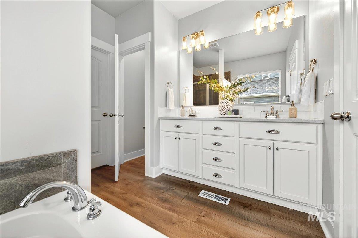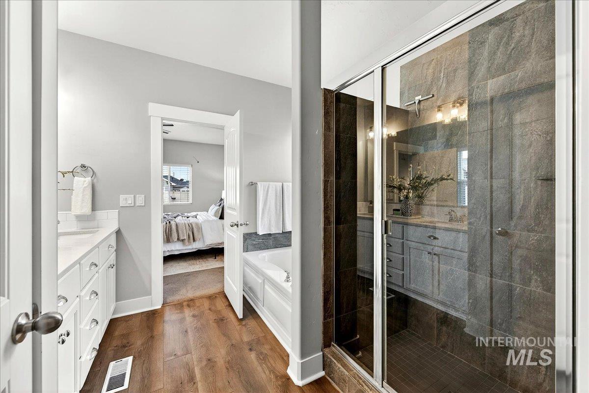 The Oaks is one of the most highly desirable subdivisions in the northwest Meridian area. Open concept living area with a large statement fireplace with beautiful custom tile creating a warm and inviting focal point. The spacious kitchen and open eating area are fabulous for entertaining, complete with stainless steel appliances, gas range stove with a pot filler, and ample counter space for gathering with friends and family. A split bedroom floor plan offers personal privacy for all, making it ideal for families or guests. Step out back to an extended deck and covered patio overlooking a fully fenced yard with plenty of room to BBQ and raise garden beds. The generous master suite features dual vanities, a relaxing soaker tub, separate step-in tiled shower, and a walk-in closet. Upstairs bonus room is ideal for a hobby room, play space, office, or hosting overnight guests. The 4th bedroom could easily serve as a downstairs office. Extra storage throughout and a generous 3 car garage means room for everything. Cool off on hot summer days at multiple pools, a pickleball court, enjoy the fishing pond, and play at the multiple parks. Close to dining, schools, and shopping, this home is a must see!