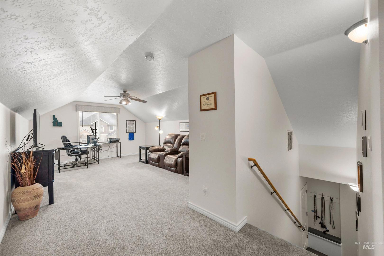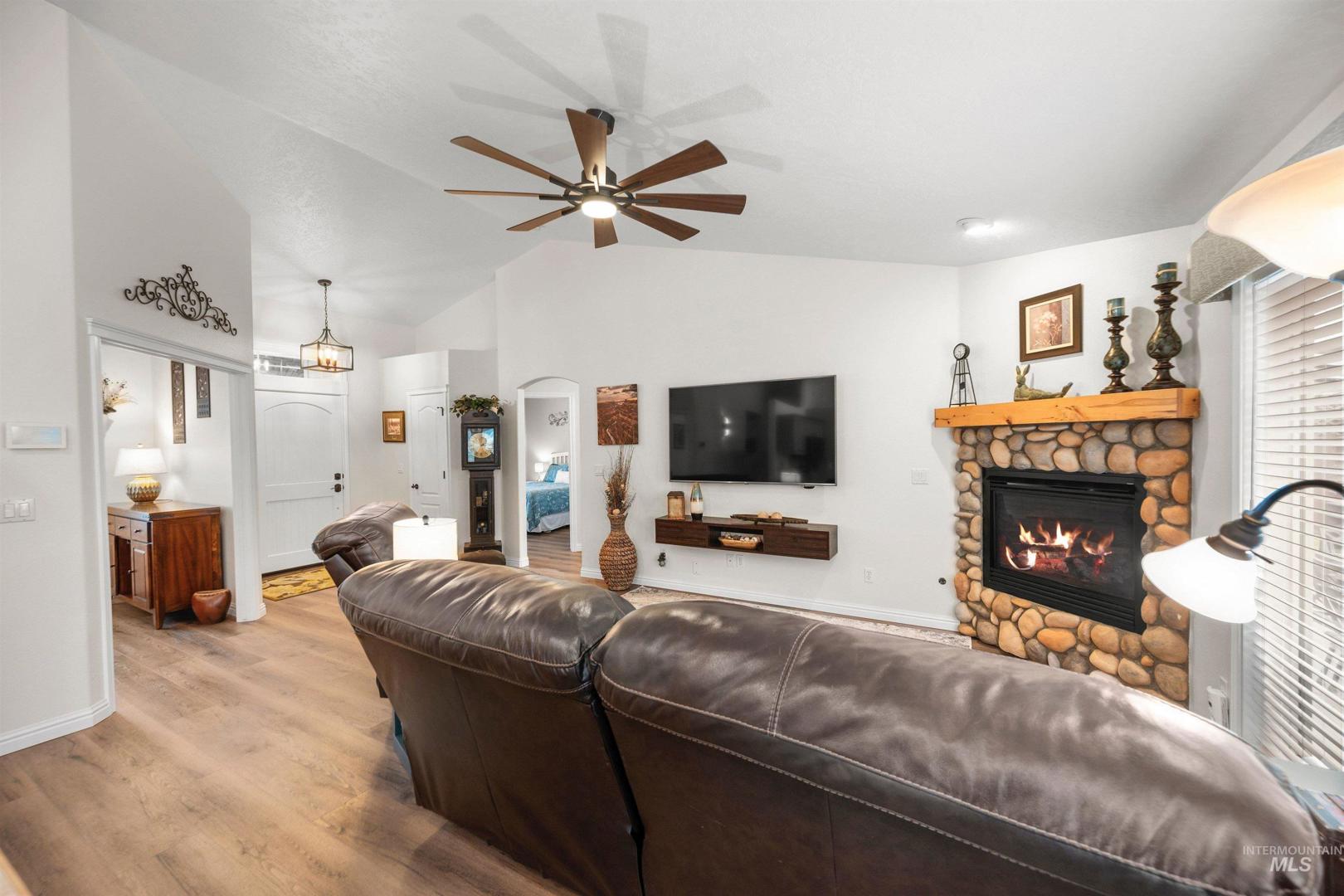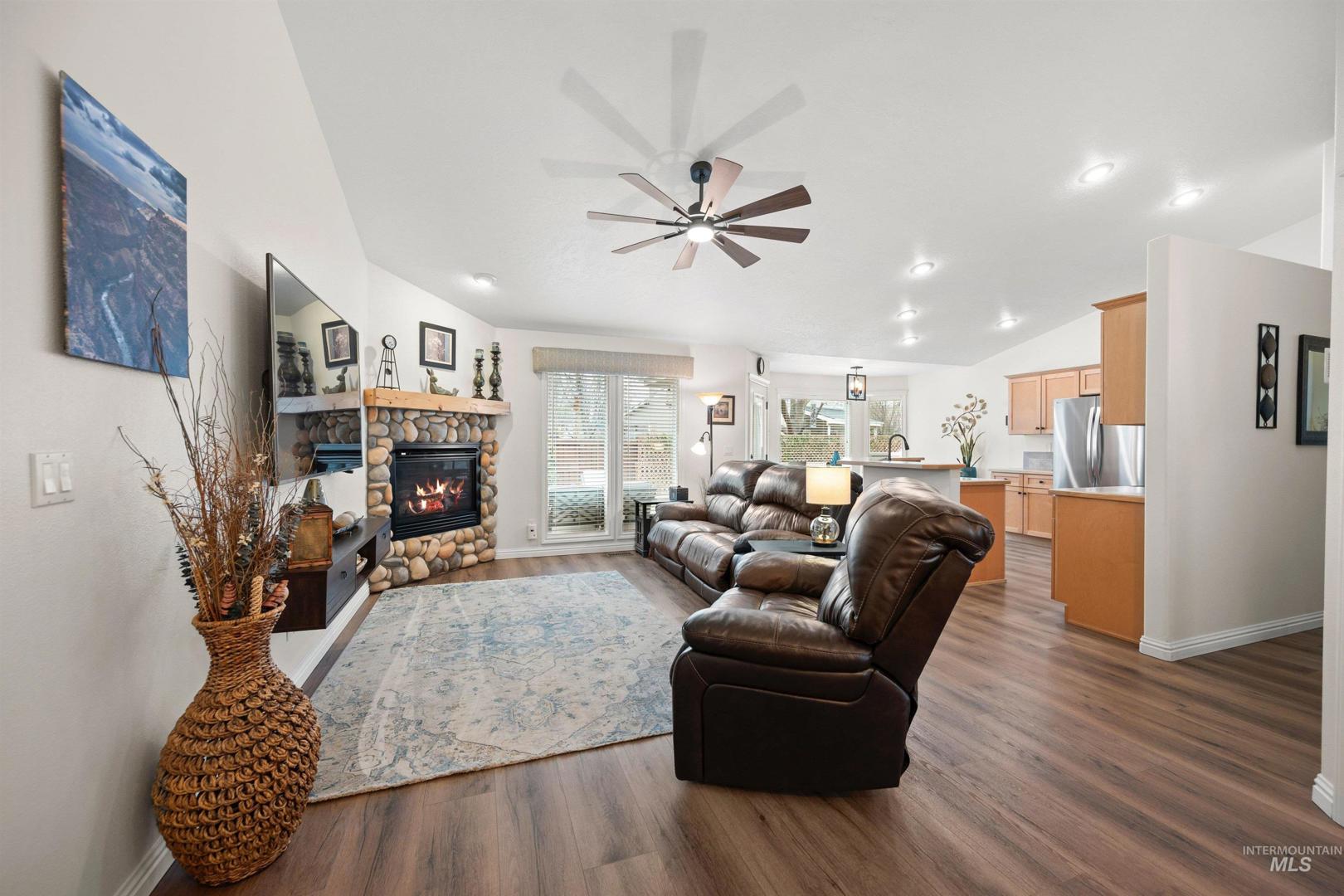Welcome to this 4 bedroom 3 full bath home in desirable Lochsa Falls where comfort, style and functionality create the perfect home for everyday living and entertaining. The kitchen is decked out with all new ss appliances with room to dine at counter or eat-in kitchen table or enjoy the separate dining room. The great room with corner fireplace offers warmth and comfort. The split bedroom plan brings you to a private retreat with ensuite bath with dual sinks, a walk in shower and a spacious walk in closet. On the other side, additional bedrooms allow separation and privacy. The upper bonus room works as flexible space, an office, TV room or playroom, with an additional bedroom with balcony and a full bath. The garage has a bay for 2 cars, a tandem bay for 1-2 cars and a shop space with access to the backyard. The shop has electrical, tool storage and a large workbench. On the side behind a double wide gate you will find RV parking with 30 amp service. The expansive backyard features a patio running the length of the house for relaxing, barbecuing or just enjoying being outside in the nicely landscaped yard. A new 10x16 Stor Mor shed houses all the extras for your outdoor enjoyment. Come home to Lochsa Falls, a lovely established subdivision with greenspaces and multiple walking paths throughout in a convenient location close to everything you need.