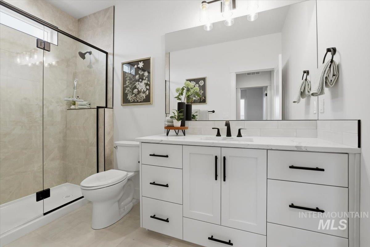 Built by Stetson Homes, a seasoned and trusted Idaho builder. The layout includes 3 bedrooms, 2.5 baths, and a dedicated office, with two of the bedrooms and a loft located upstairs, perfect for flexible living, work, or play. The kitchen is designed to impress with an LG appliance package, quartz countertops, a full tile backsplash, and custom-built cabinetry. Natural light fills the home, creating an open and welcoming feel throughout. The primary suite features a walk-in closet and a fully tiled walk-in shower with a relaxing soaker tub. Step outside to your charming covered back patio, offering plenty of space for outdoor lounging and entertaining while enjoying your beautiful property. The Patagonia community offers parks, walking trails, ample green space, a swimming pool, and pickleball courts for year-round enjoyment. Conveniently located with a quick commute to both Kuna and Meridian, plus easy freeway access, you’ll enjoy connectivity without the noise and congestion of city traffic. Ask about adding your personal touch to selections and colors!