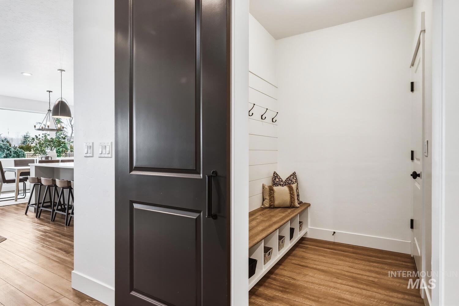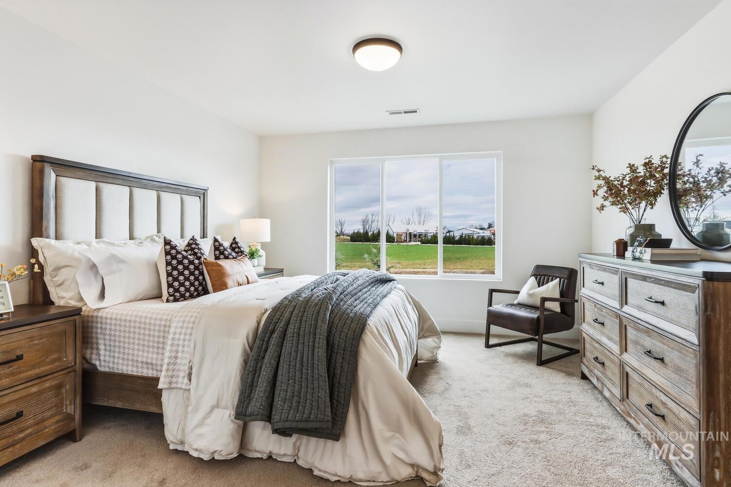 Beautifully maintained Alturas-built home in northwest Nampa offering 4 bedrooms, 2.5 baths, and 2,296 square feet in impeccable condition. Ideally located, close to shopping and convenient freeway access, this home sits on an open lot with mountain views, no rear neighbors, and direct access to the community walking path. The open great room and kitchen are designed for gathering and everyday living, complemented by a large walk-in pantry and many tasteful finishes throughout. A main-level bedroom provides flexibility for guests or a home office. Bench seating with lockers at the entry, ample under-stair storage, a convenient half bath, and stylish barn doors gracing the primary suite’s entry add both charm and function. Upstairs you’ll find three additional bedrooms, including a spacious primary suite with a beautifully tiled walk-in shower and oversized walk-in closet. The upstairs laundry room includes added cabinetry and counter space for convenience. Enjoy Idaho evenings in the upgraded backyard featuring upgraded landscaping, pavers, and a fire pit. A three-car tandem garage plus an additional shed provide exceptional storage. Arbor residents enjoy access to a community pool, clubhouse, and playground.