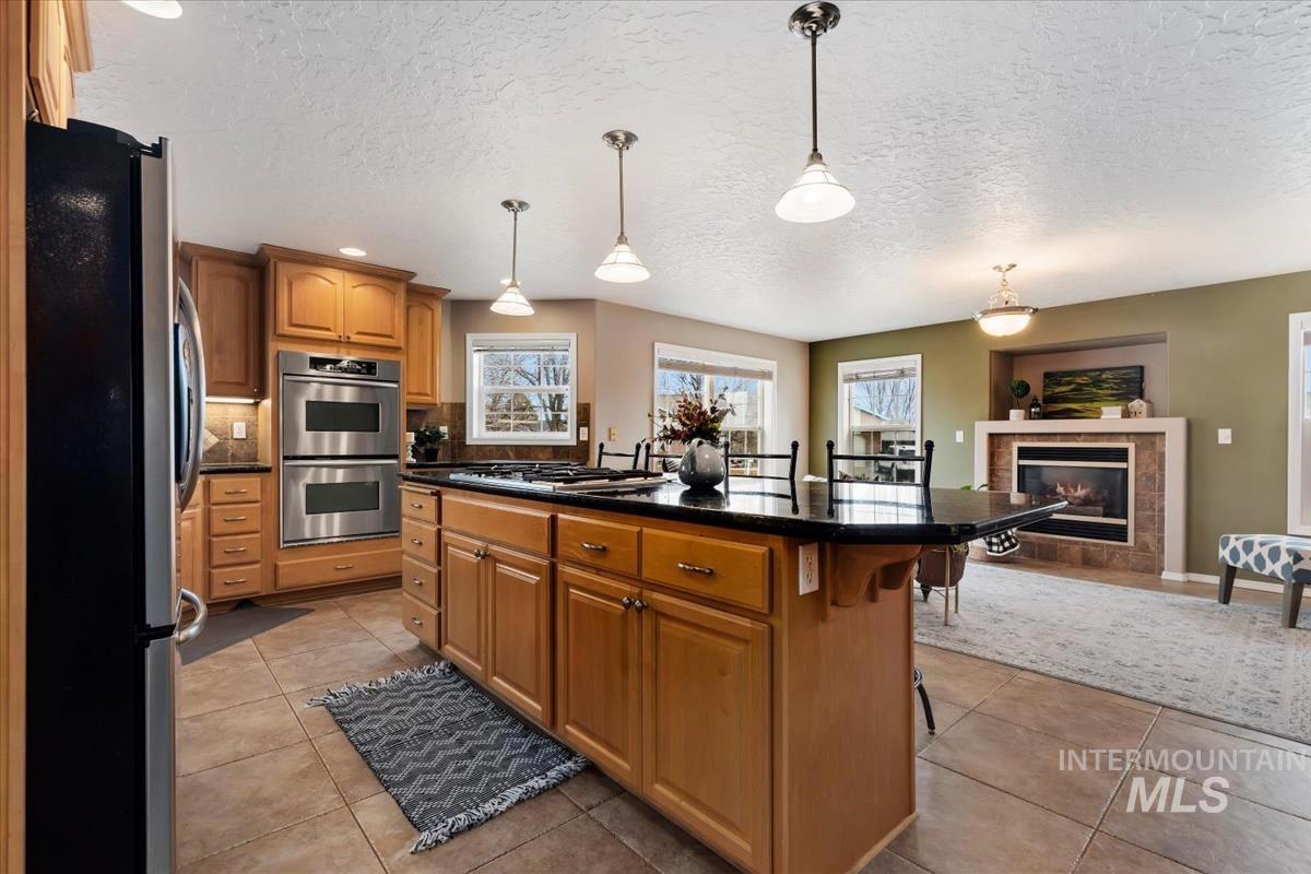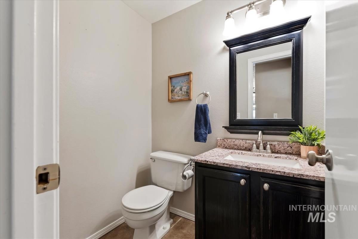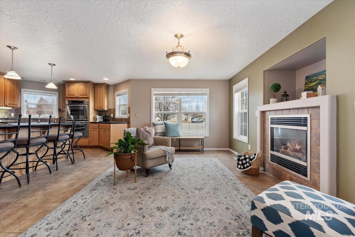 WOW! Space, Upgrades & Prime Location Near the Golf Course Situated on an almost ½-acre corner lot near the golf course in Mountain Home. This stunning home checks all the boxes! The show-stopping kitchen features granite countertops, a large island, double oven, 5-burner gas stove, stainless steel appliances, abundant storage, and a cozy gas fireplace. The spacious living room offers custom built-ins and a second gas fireplace - perfect for gathering and relaxing. A formal dining room adds even more room to entertain. The main-level primary suite provides privacy and comfort with its own en-suite bath. Upstairs you’ll find three additional bedrooms, a full bathroom, and a versatile lounge area - ideal for a home office, playroom, or reading nook. Brand new carpet throughout gives the home a fresh feel, and major updates provide peace of mind: new roof (2021), AC (2019), furnace (2023), and water heater (2024). Enjoy the huge fenced yard, large covered patio overhang, 3-car garage, and spacious RV parking - plenty of room for all your toys. Space, comfort, and thoughtful upgrades - this one truly stands out!