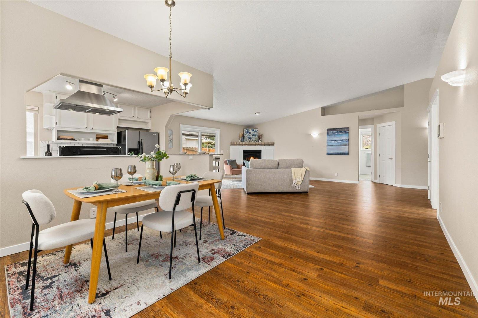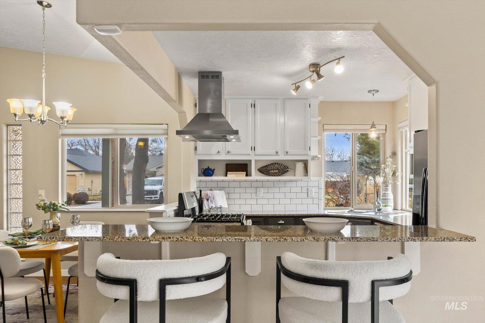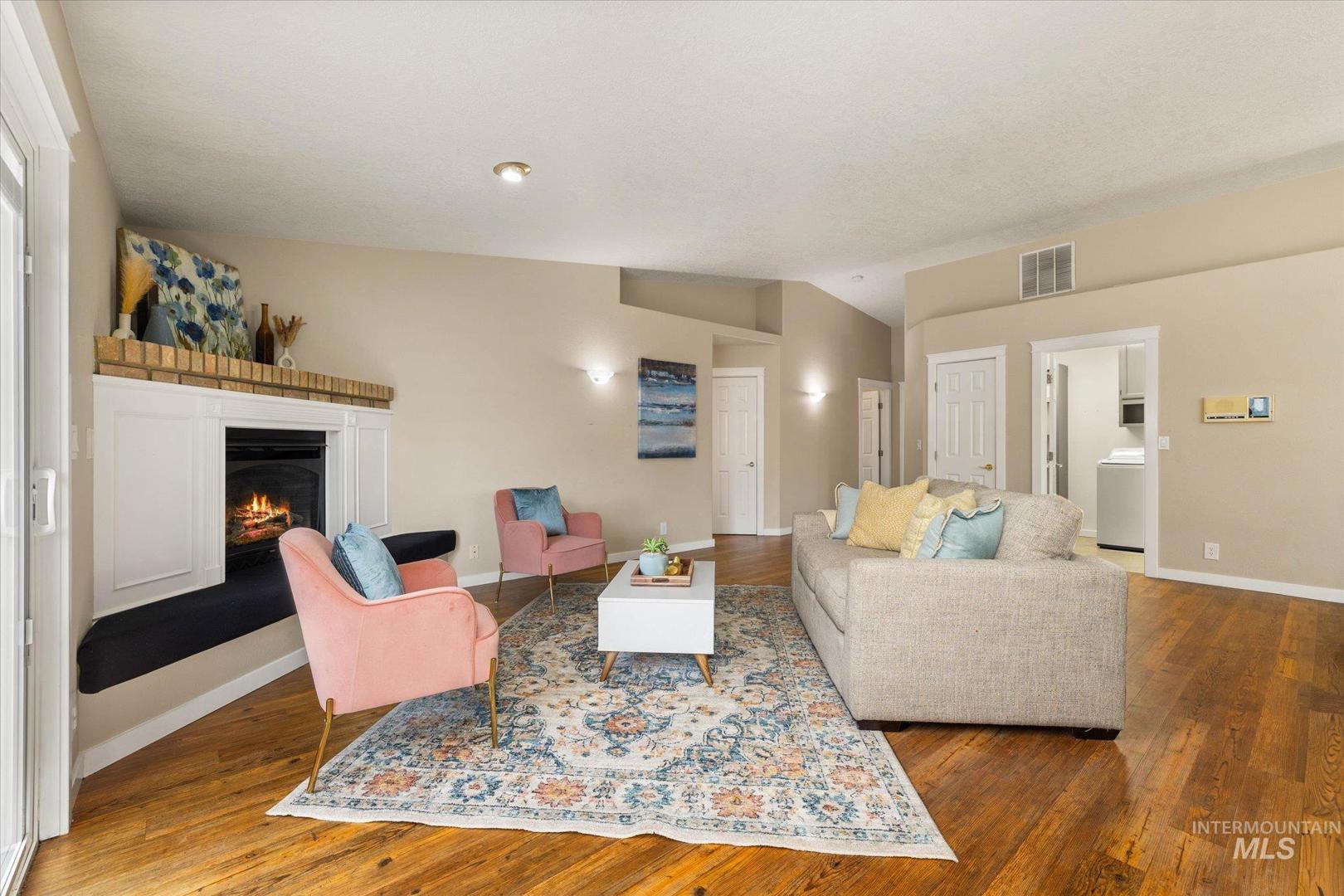 In the heart of Eagle and just minutes to downtown, parks, shops, and local restaurants, this move-in ready, single level delivers location and lifestyle in one inviting package. Surrounded by mature trees that create a peaceful, established feel, it offers the perfect balance of convenience and comfort in one of the area’s most desirable settings. This squeaky clean home features brand new carpet & vaulted ceilings. A cozy gas fireplace anchors the light filled great room, creating an inviting space with a slider door conveniently opening to the outdoor retreat. The open layout flows seamlessly into the kitchen, where a breakfast bar invites you in, upgraded with stainless appliances, granite countertops, & tiled backsplash bringing style and functionality together. The spacious primary suite feels like a true retreat, complete with a soaking tub for relaxing, separate shower, & dual vanities that add both comfort and convenience. An oversized utility room offers exceptional storage and flexibility, easily doubling as pantry space or the ultimate drop zone for easy living. Step outside to the large yard to enjoy two backyard patios, perfect for summer barbecues, evening dinners under the trees. This is Eagle living at its best, comfortable, connected, and full of warmth and charm, all with low HOA fees allowing for a relaxed, yet cohesive neighborhood.