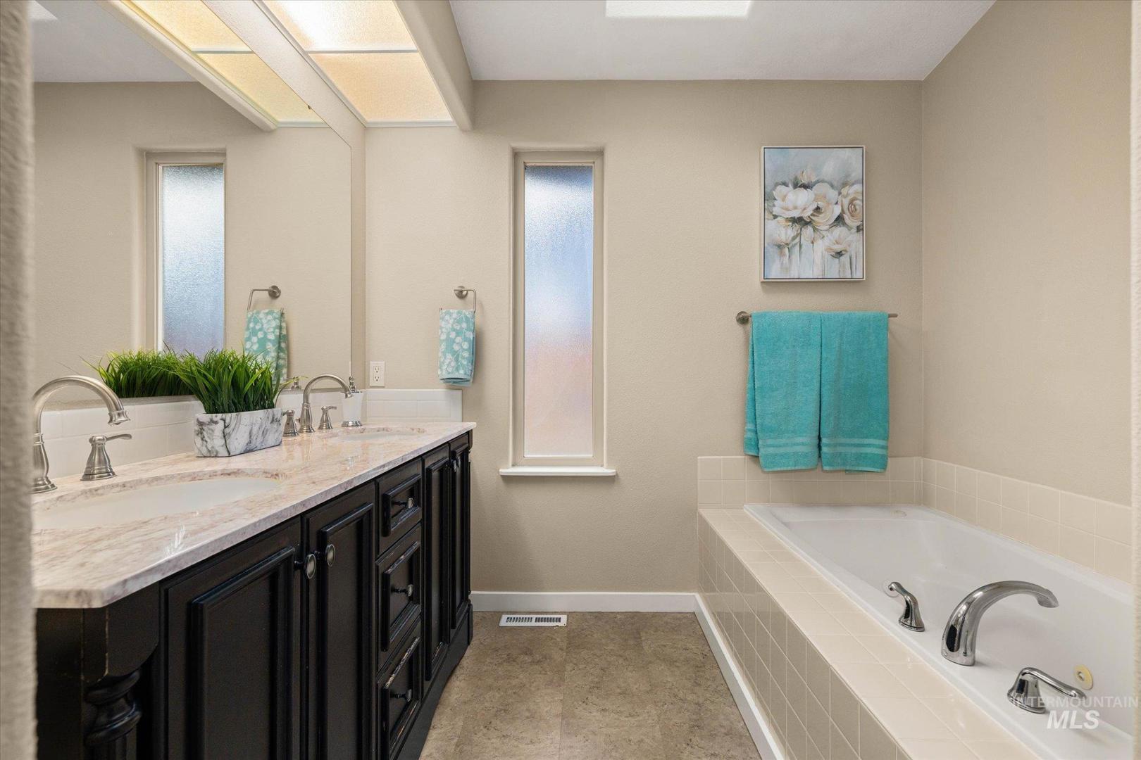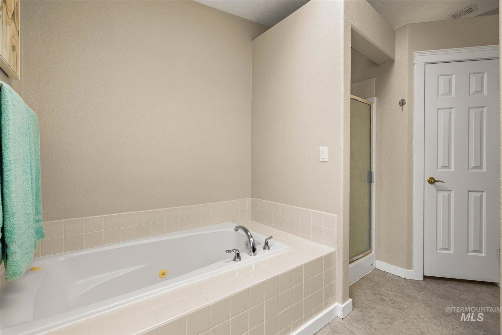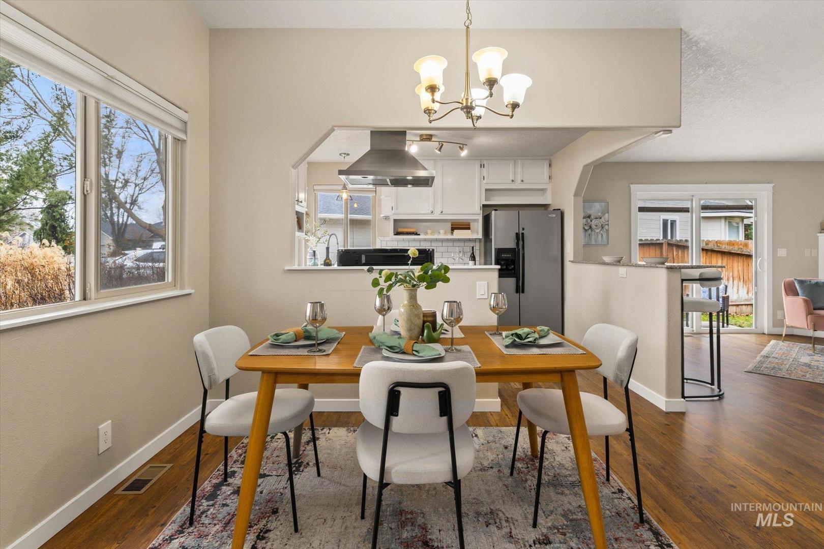 In the heart of Eagle and just minutes to downtown, parks, shops, and local restaurants, this move-in ready, single level delivers location and lifestyle in one inviting package. Surrounded by mature trees that create a peaceful, established feel, it offers the perfect balance of convenience and comfort in one of the area’s most desirable settings. This squeaky clean home features brand new carpet & vaulted ceilings. A cozy gas fireplace anchors the light filled great room, creating an inviting space with a slider door conveniently opening to the outdoor retreat. The open layout flows seamlessly into the kitchen, where a breakfast bar invites you in, upgraded with stainless appliances, granite countertops, & tiled backsplash bringing style and functionality together. The spacious primary suite feels like a true retreat, complete with a soaking tub for relaxing, separate shower, & dual vanities that add both comfort and convenience. An oversized utility room offers exceptional storage and flexibility, easily doubling as pantry space or the ultimate drop zone for easy living. Step outside to the large yard to enjoy two backyard patios, perfect for summer barbecues, evening dinners under the trees. This is Eagle living at its best, comfortable, connected, and full of warmth and charm, all with low HOA fees allowing for a relaxed, yet cohesive neighborhood.
