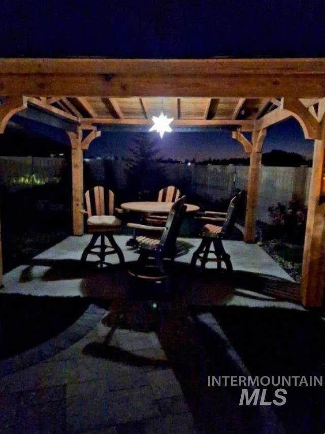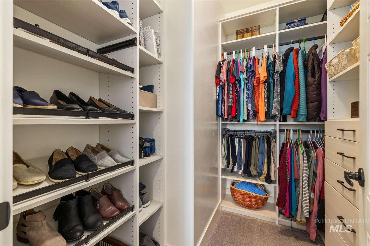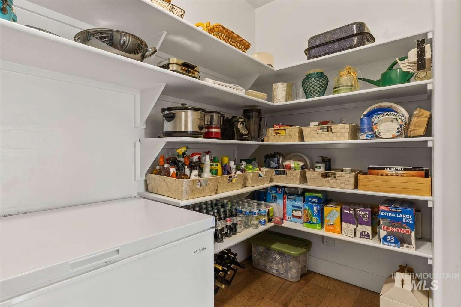 This lovely single-level home, situated on a generous 1/3 acre, offers high-end finishes in a well-designed floor plan. An inviting foyer greets you with hickory wood floors and opens to an expansive great room with natural light. A stone gas fireplace, with a raised hearth and knotty alder mantel, brings warmth and charm to this spacious living area. The kitchen has knotty alder cabinets, a tumbled marble backsplash, a gourmet range, a large island with a front apron farm sink, and an oversized pantry. Gaze through the 3-door slider to a stunning water feature, lush trees and plants, and a custom-built gazebo with power, all connected by a paver patio and walkways. Enjoy privacy and comfort with a split-bedroom layout and dual-zone heat. A convenient flex room off the main living area has multiple options. The primary bedroom views the impressive backyard through a sliding glass door with motorized shades. The primary bath has tiled floors, a walk-in tiled shower, a large tub, and a walk-in closet with a custom-built organizer. The secondary bedroom has a walk-in closet with a built-in custom organizer and is steps away from the main bath, with a walk-in tiled shower. A large 3-car garage with 4 extra feet in depth has custom storage cabinets, wall storage units, and a polyurea floor coating. A large side yard includes RV parking and a 12x14 shed with power.