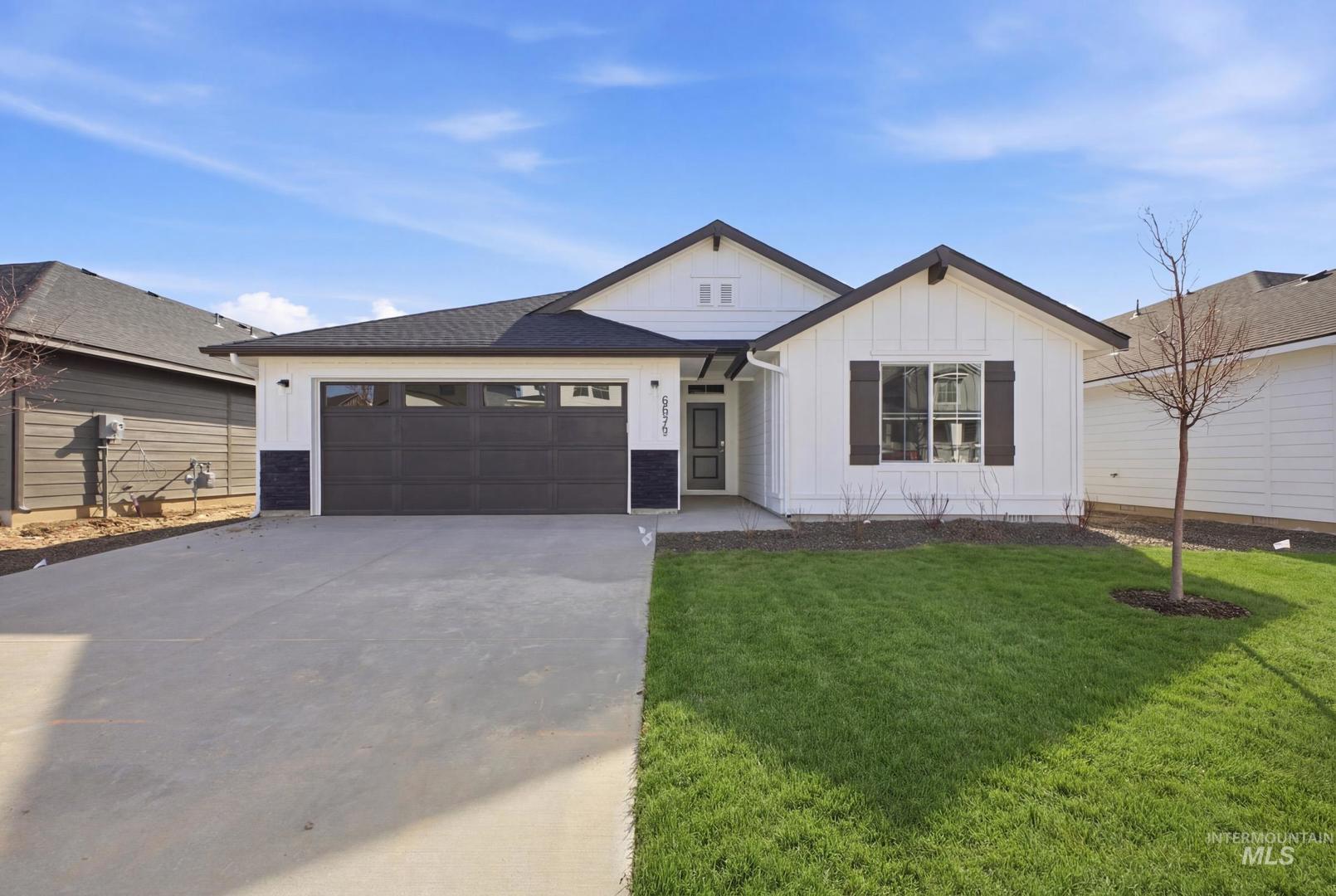 Get Lucky with 3.49% – promotional rate available! Ask a Sales Specialist for details. This new home located in beautiful Meridian, Idaho has all the comforts you need & more! The Harrison 2025 delivers single-level living at its finest with a bright, sunlit living room positioned at the rear of the home to create a calm and inviting retreat. The kitchen boasts upgraded finishes, including stainless steel appliances, a gas range, and stylish solid surface countertops. The primary suite feels like a private escape with its elegant en suite bath featuring dual vanities, refreshing natural light, and an expansive closet for effortless storage. Spacious additional bedrooms and a thoughtfully arranged layout enhance comfort throughout, and a dedicated laundry room adds convenience to your daily routine. Designed with modern living in mind, the Harrison 2025 brings together style, ease, and refined simplicity. Photos are of the actual home!
