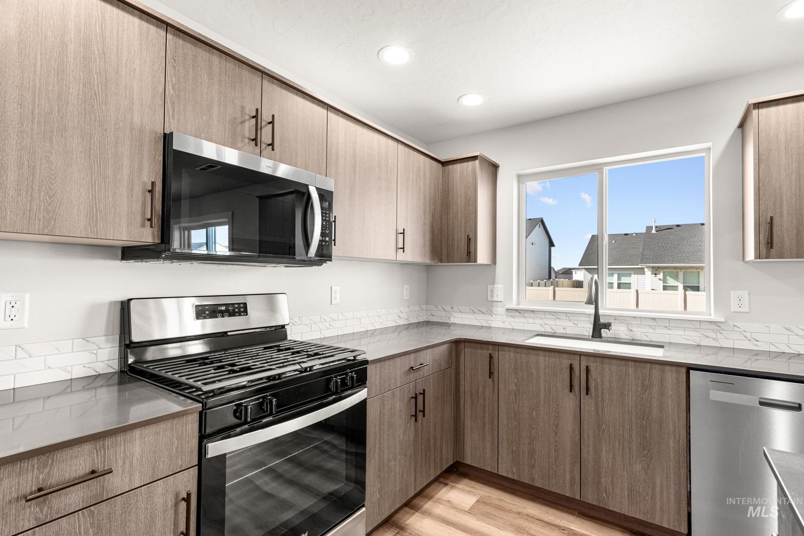 Get Lucky with 3.49% – promotional rate available! Ask a Sales Specialist for details. Feel enriched in your brand new home located in Nampa, Idaho! The Tatom 2054 welcomes you with an inviting entry that leads toward the rear of the home, where a well-appointed kitchen offers upgraded finishes, including stainless steel appliances, a gas range, and stylish solid surface countertops. Easy access to the backyard from the dining room extends the living space outdoors and enhances everyday enjoyment. A formal living room near the front of the home pairs beautifully with the main living room in the rear, providing multiple comfortable spaces for gathering or relaxing. Upstairs, the primary suite is joined by the laundry room and three additional bedrooms, with the fourth bedroom featuring an expansive closet for added storage. With its open design, versatile layout, and abundant space throughout, the Tatom 2054 delivers comfort and flexibility for a variety of lifestyles. Potential RV parking available. Photos are of the actual home!