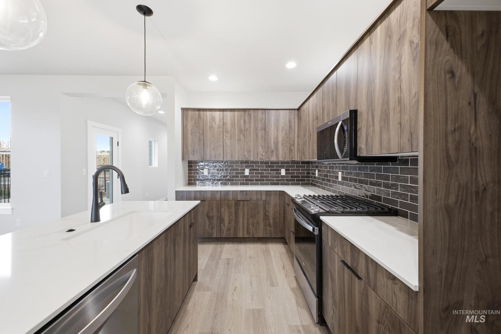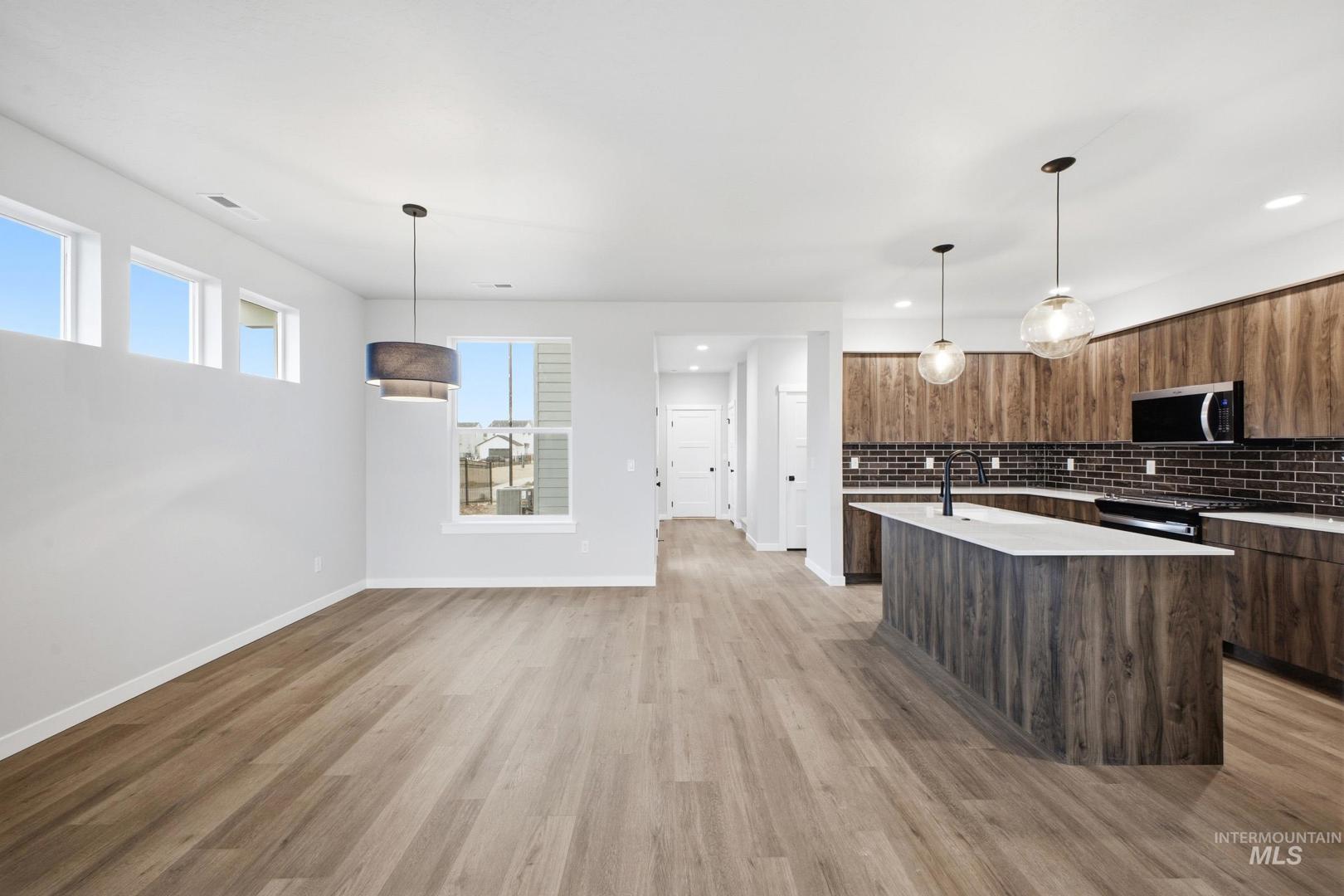 Get Lucky with 3.49% – promotional rate available! Ask a Sales Specialist for details. This new home located in beautiful Boise, Idaho has all the comforts you need & more! The Regis 2093 blends modern utility with stylish character, beginning with a generous covered front porch that sets a welcoming tone before leading into an open living area filled with natural light from large picture windows and elevated by 9ft ceilings. The kitchen boasts upgraded finishes, including stainless steel appliances, a gas range, and stylish solid surface countertops. The main level flows smoothly from kitchen to dining to living, offering a bright and comfortable environment for everyday living. Upstairs, a sizable loft provides flexibility and serves as a natural buffer between the primary suite and the two additional bedrooms. The primary suite offers a peaceful retreat with its own en suite bath and expansive closet, while the upstairs laundry room adds convenience for all. With its light filled spaces, adaptable layout, and refined details, the Regis 2093 delivers a lifestyle that feels both elevated and inviting. Photos are of the actual home!