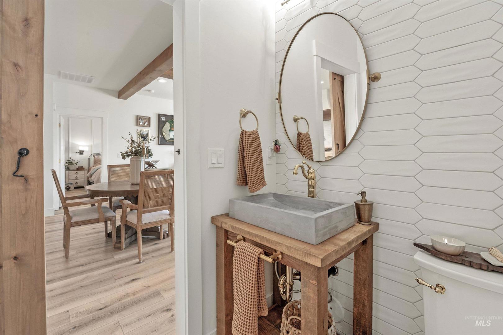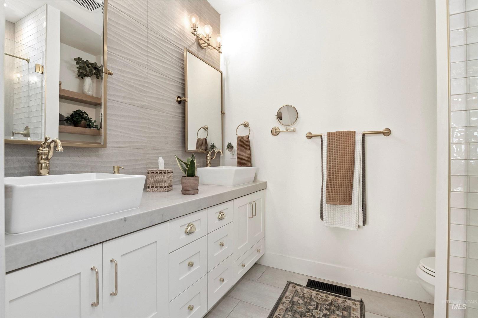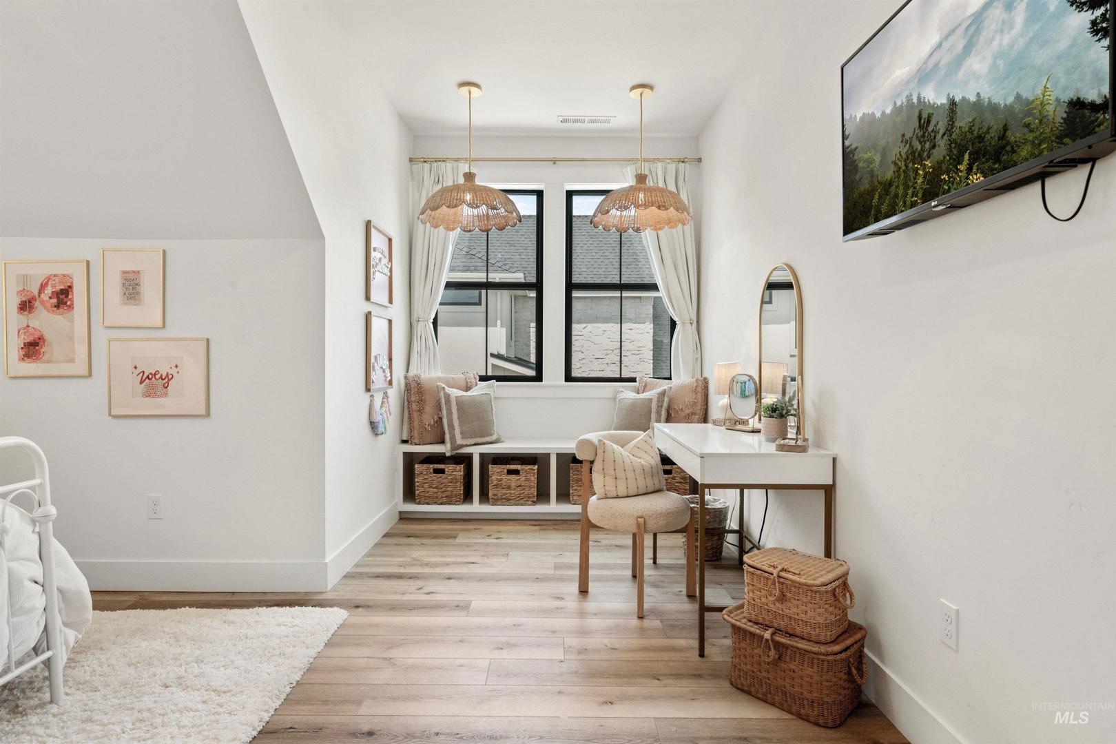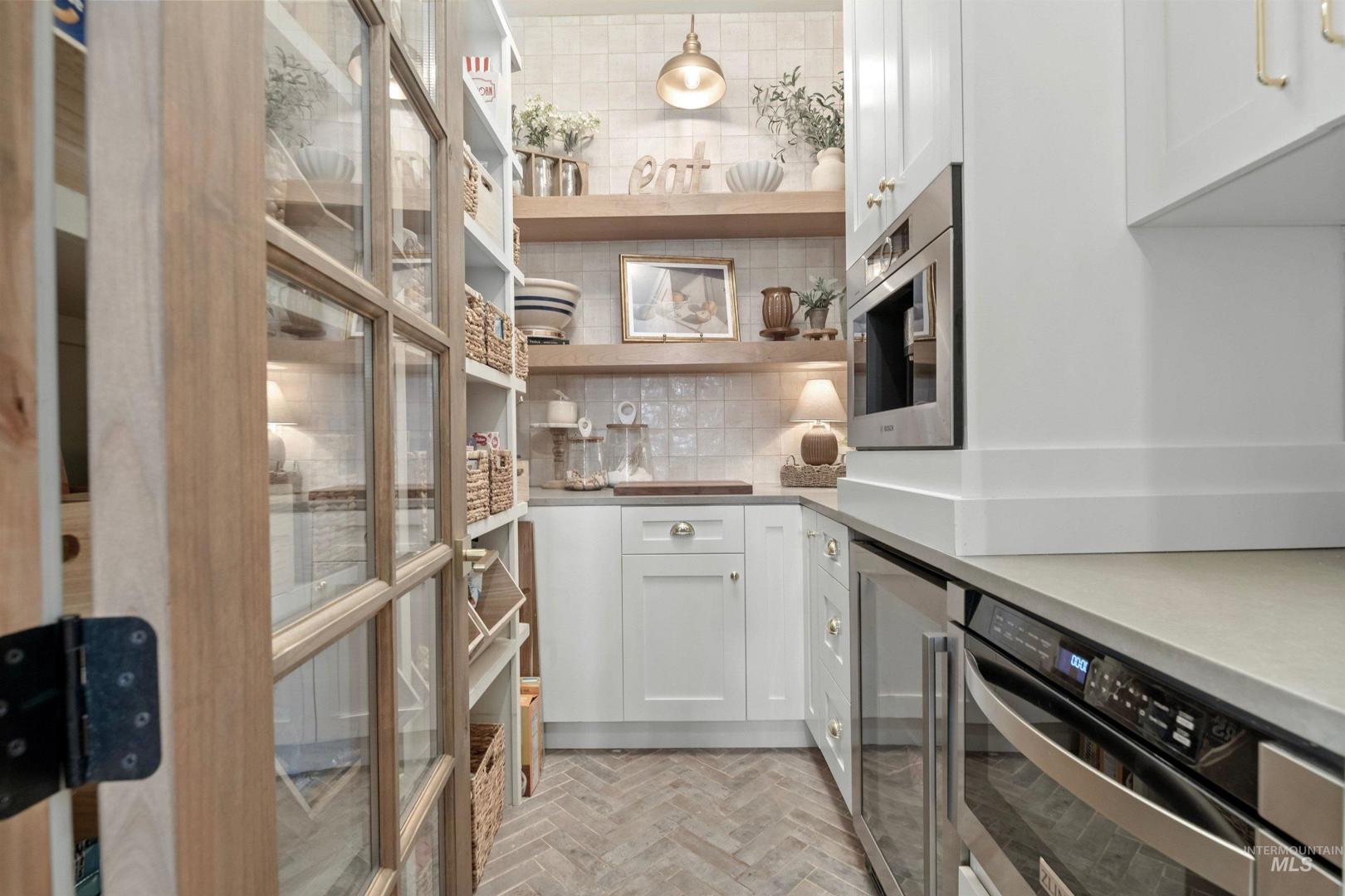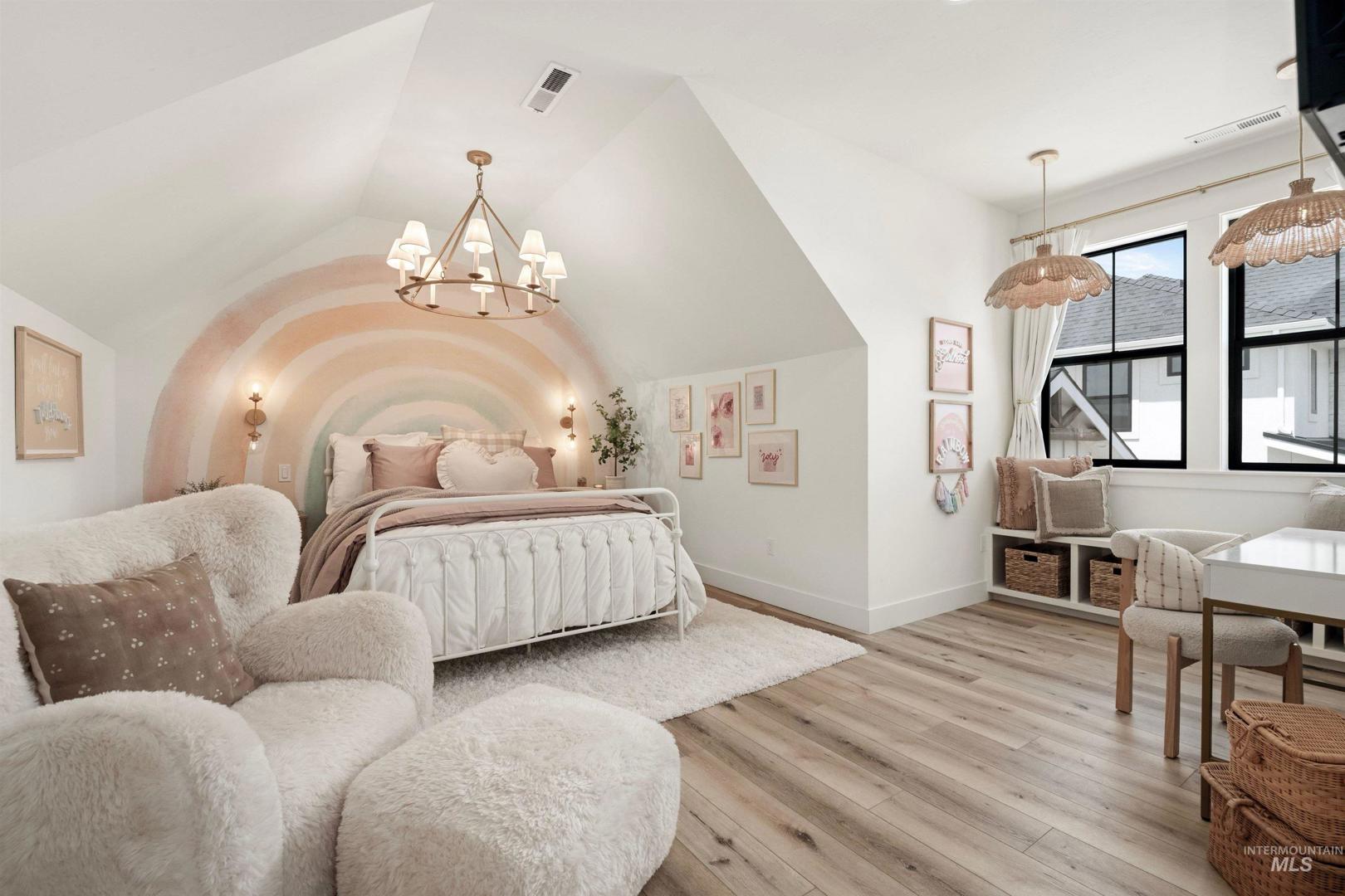 Step into a life where every moment feels elevated. This exceptional Custom Luxury Residence—set within the prestigious enclave of The Keep—blends Modern French Country inspiration with the kind of comfort, warmth, and effortless sophistication that turns a house into a sanctuary. Resting on over half an acre, it includes a private-entry Casita that creates the perfect haven for guests, extended family, or quiet weekend retreats. From the very first step inside, the home sets a tone of refined living. Grand arched glass-and-iron doors, framed by softly glowing gas lanterns, open to cathedral ceilings that invite light and air to flow freely. Throughout this full custom home, curated details tell a story: artisan tilework, custom millwork, brass accents, and reclaimed wood from the historic Simplot Barn infuse each space with authenticity and soul. Designed for those who love to gather, cook, and celebrate, the home features alder cabinetry, mitered-edge quartz countertops, striking limestone fireplaces, and two chef-worthy kitchens—each equipped with 6-burner ZLINE gas ranges, premium appliances, and a butler’s pantry that keeps entertaining effortless. A main-level office, an upstairs bonus room, a flexible additional living space, and a hidden tech nook offer room for creativity, productivity, and play. The 40` RV bay ensures that adventure is always within reach.