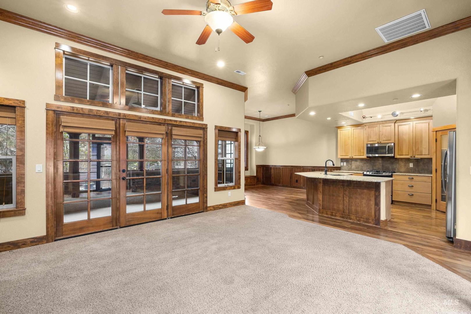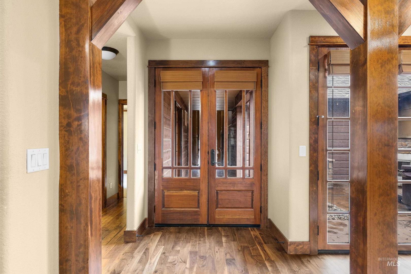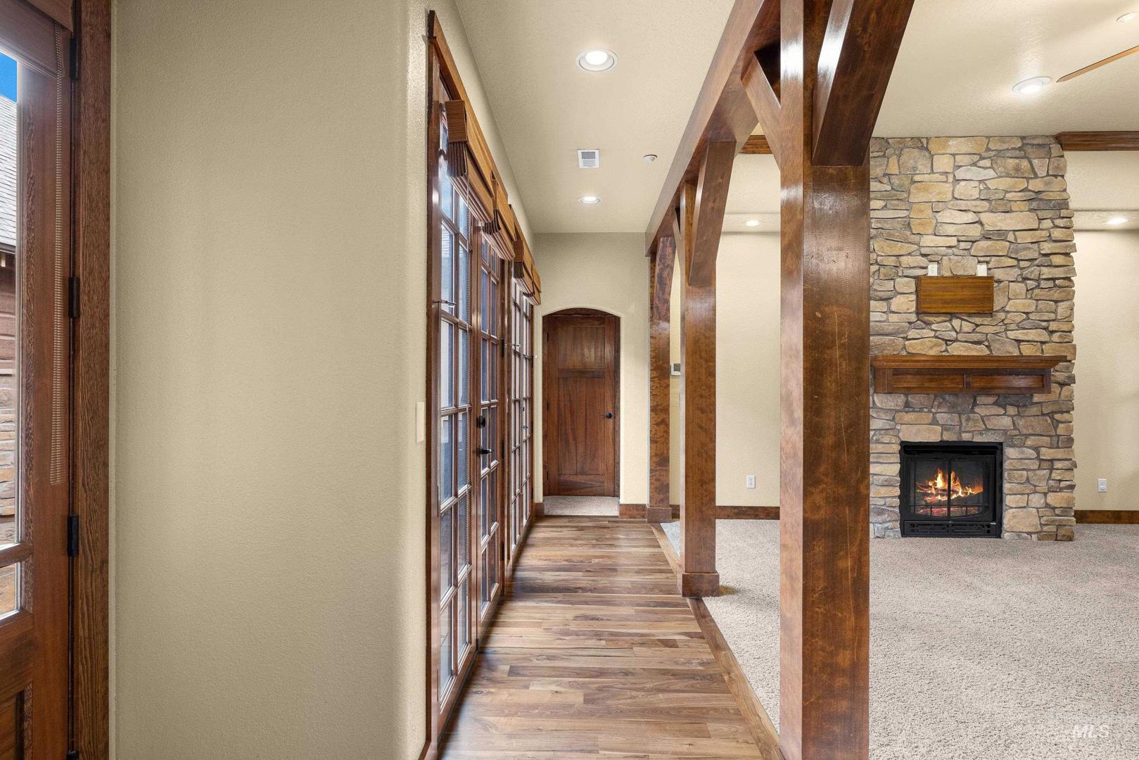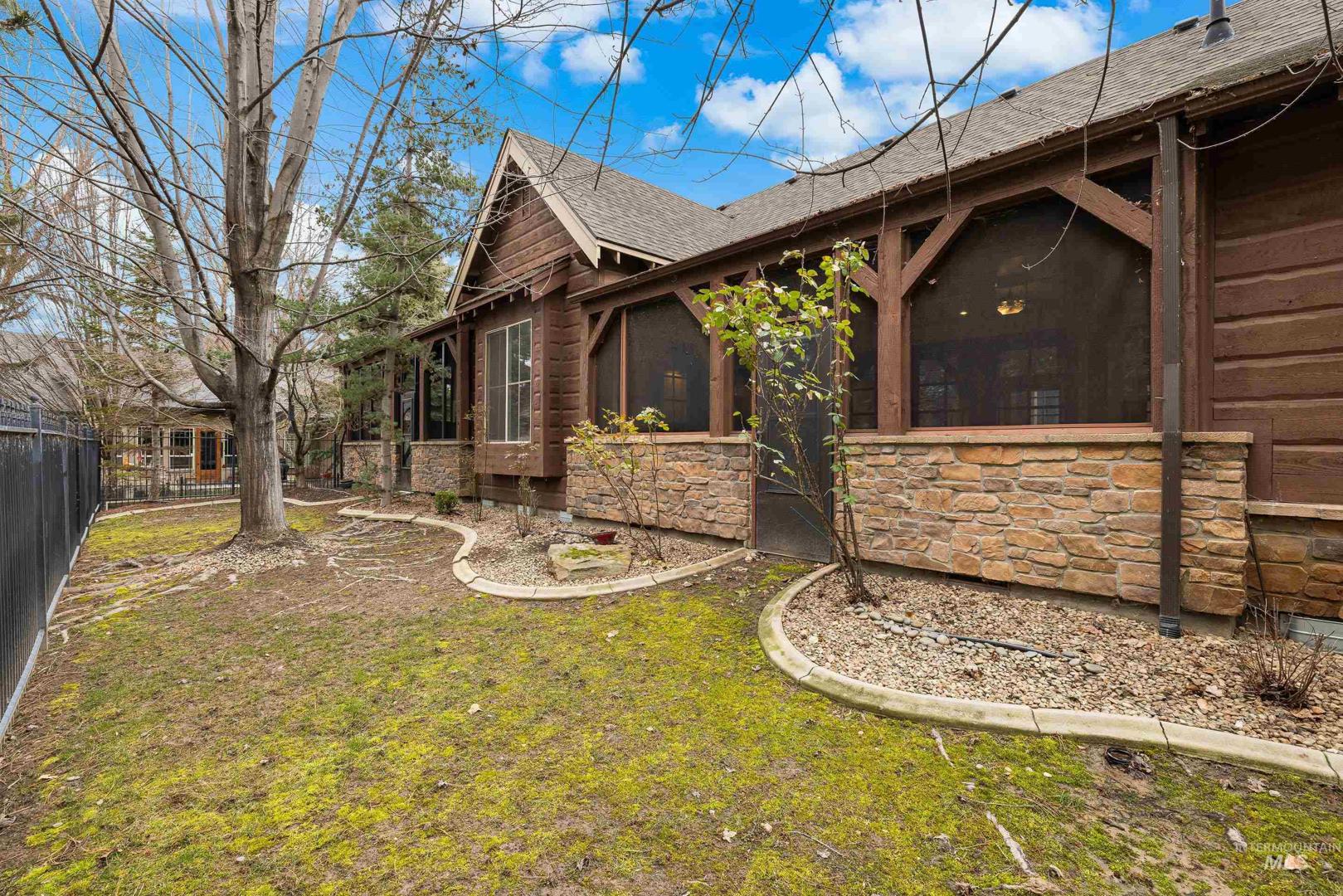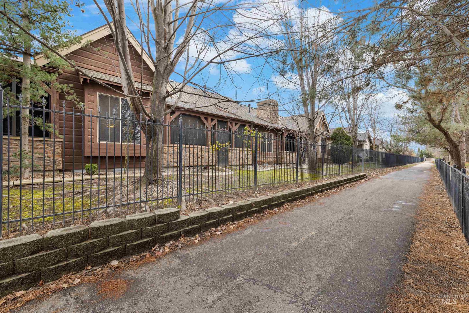 Rustic Sophistication with Boise River access in a private, gated Garden City community. Located just north of the Boise River near State St. & Hgwy 55, you have immediate access to DT Eagle and are just a short drive to DT Boise and The Village. Roth Homes built this single-level, lodge-style townhome w/ a rough-hewn, square-cut, open-beam design combining historic Idaho w/ modern comfort & amenities. Thoughtfully laid out with an open, central living space perfect for relaxing or entertaining, 2 split-bedroom ensuites, and an additional den/office. You will also be impressed by the plethora of custom upgrades – gourmet kitchen w/ granite counters, hardwood floors, upgraded carpets, tiled shower, plantation shutters, built in BBQ, & a whole-house intercom system. Relax in the hot tub by the gas fireplace in your private courtyard or visit with friends & neighbors while enjoying a greenbelt view off your back patio. Whether flyfishing the Boise River or traveling the greenbelt you`ll be so glad you`ve found this tranquil Idaho escape! BTVA