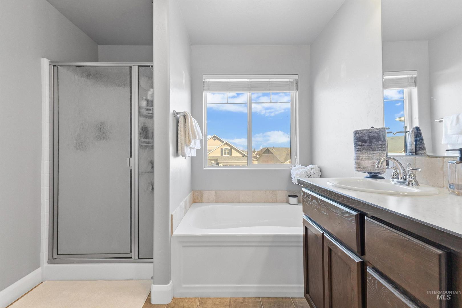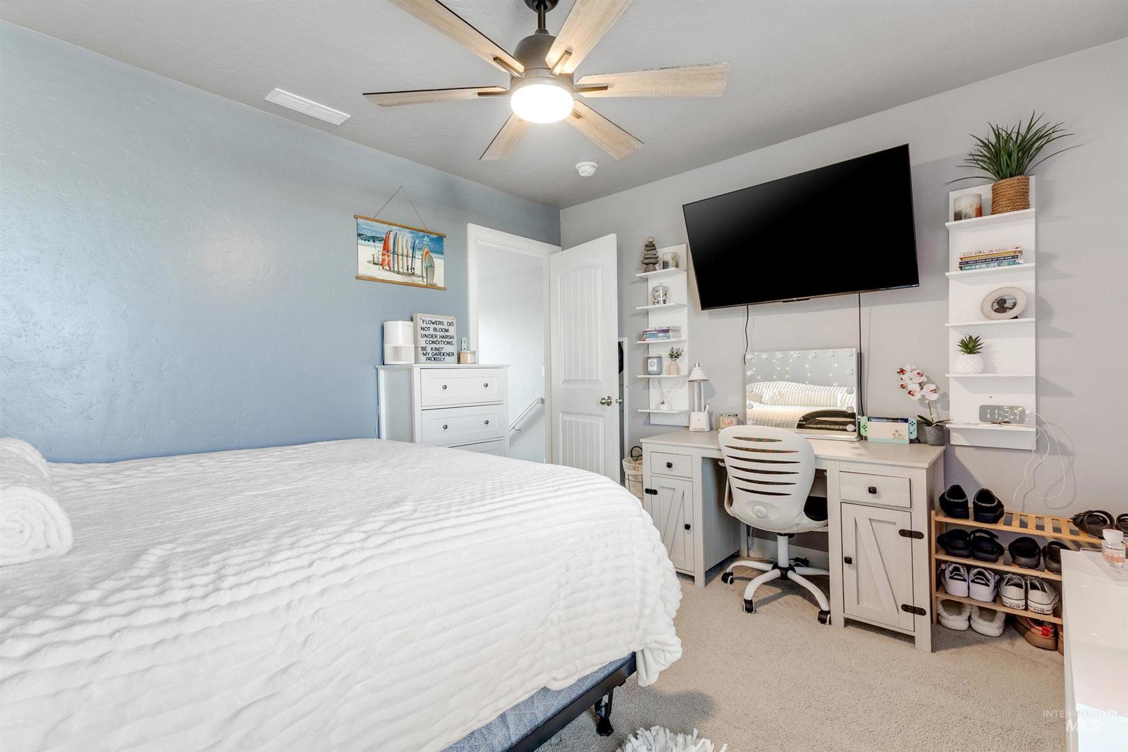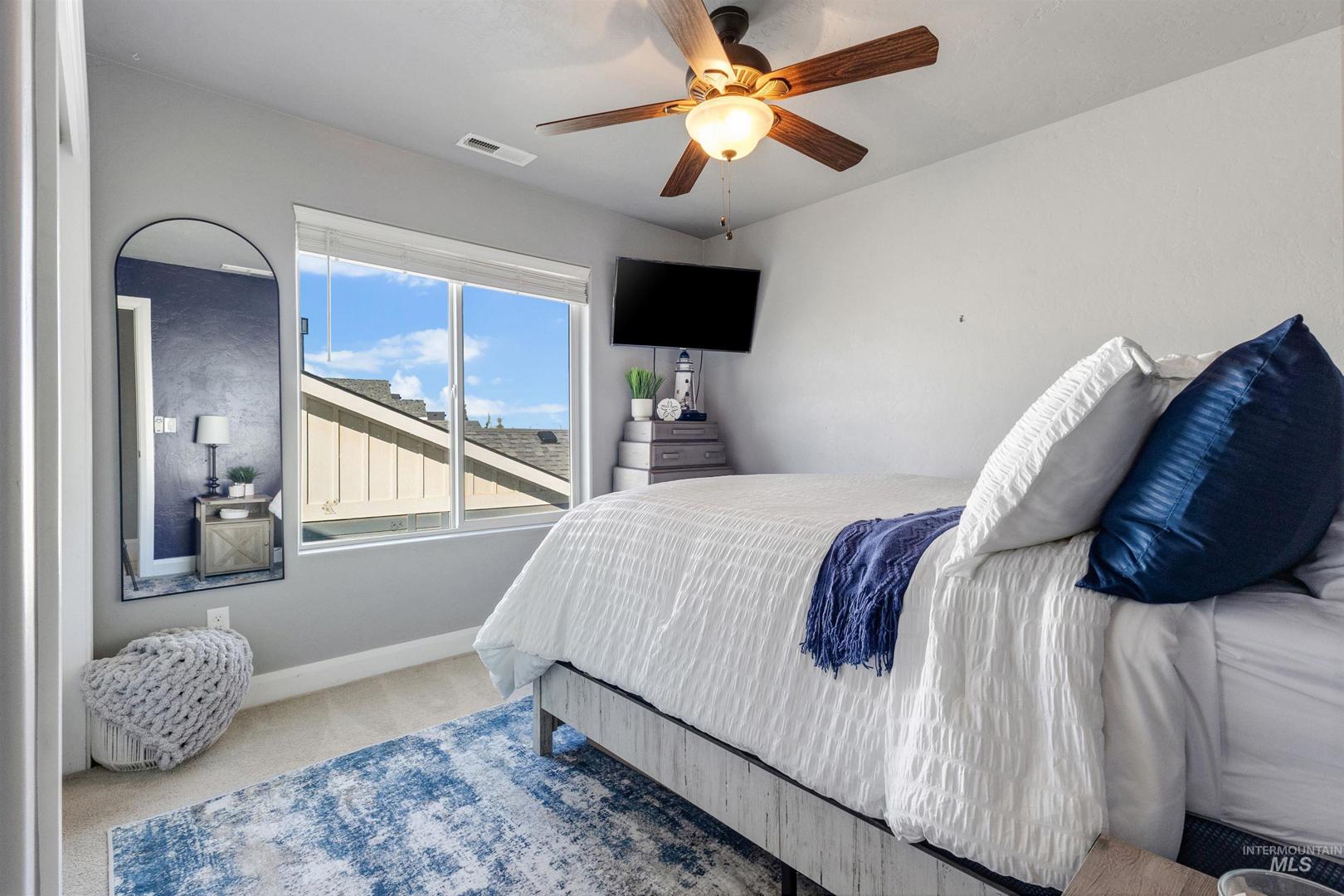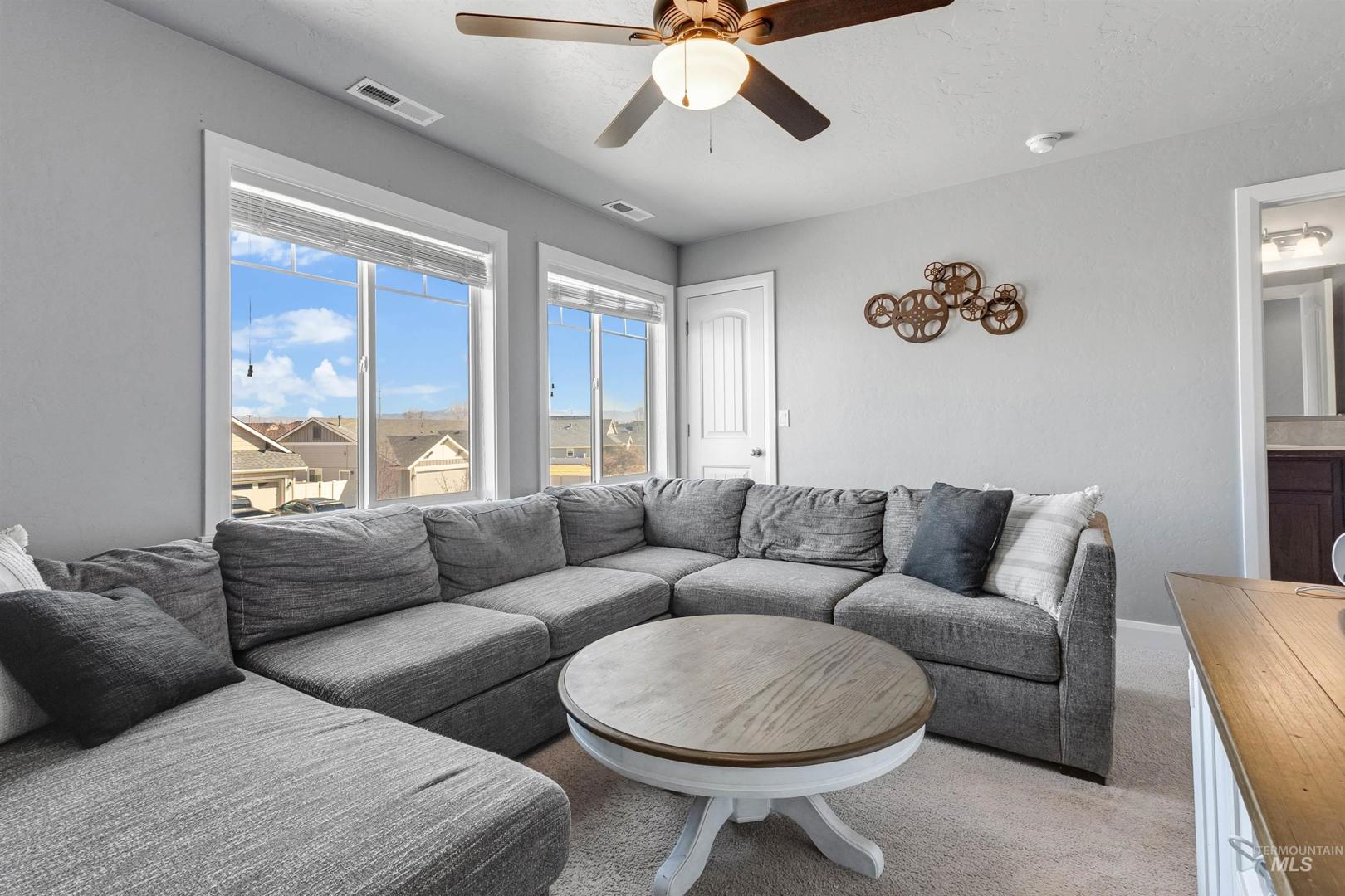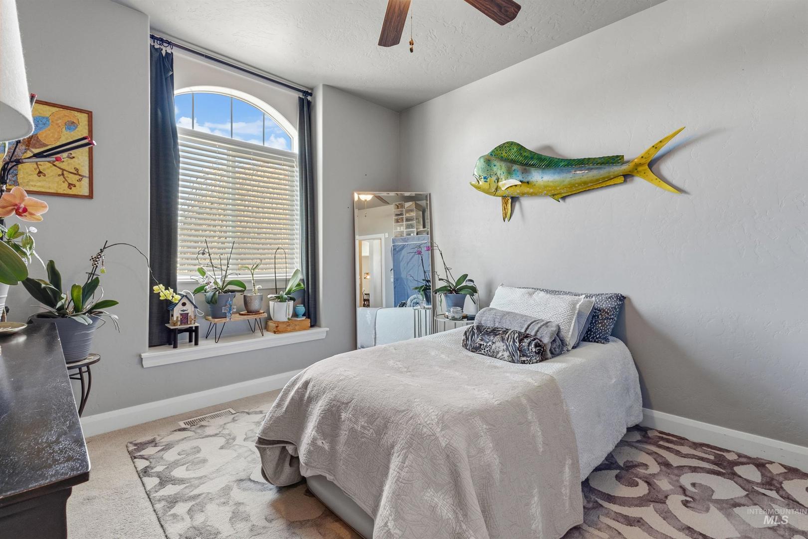 Welcome to this beautifully designed 2,598 sq ft home in the heart of Meridian! The home boasts 4 bedrooms and 3.5 bathrooms, with an additional office that can be used as an optional bedroom. Dual closets in the master, and separate shower and tub in the master bath. The large kitchen features updated appliances and a walk in pantry. Very spacious bedrooms and bonus room/flex space. Upstairs laundry and large 3 car tandem garage. The community offers two large pools, playground, pickleball and basketball courts, walking paths and fishing ponds! The tranquil backyard features an extra large covered patio. Very clean and impeccably maintained!