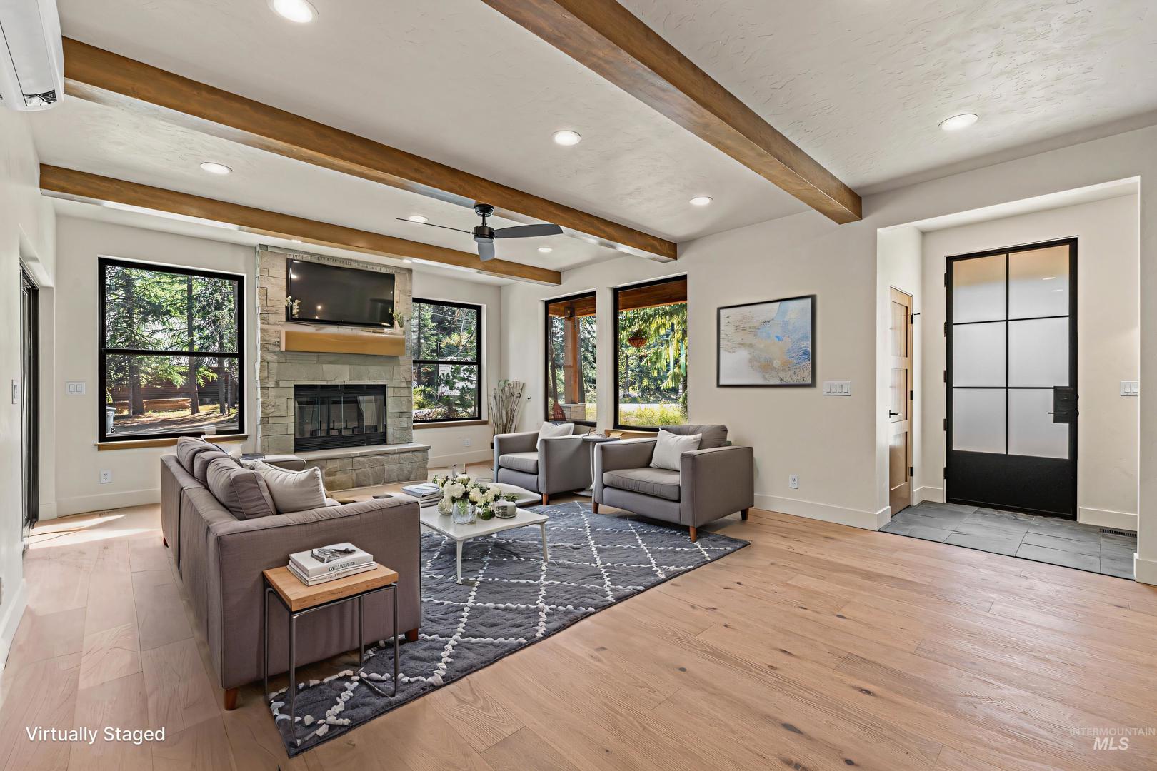 Stunning and hard to find new custom home with an attached oversized shop/garage. This artfully crafted and designed property is situated on a south facing wooded lot on a pristine peninsula flanking Cascade Lake. A short walk to the beach and adjacent to many hiking trails of BOR land open space. The 3bd 2.5ba residence combines style and function with a sleek interior designer influenced plan with custom wood accents and high-end appliance and fixtures. Many windows and sliding glass doors bring the outdoors in, offering abundant natural light. A cozy family room/loft area with wet bar is perfect for relaxing after a day on the slopes. Enjoy a 30’x40’ attached shop w/ additional oversized door, ideal for truck, boat, and/or RV storage and all of your toys. Tastefully landscaped, a covered deck off the primary bd and a covered inviting front porch, this property offers low-maintenance outdoor living. Just minutes from Tamarack Resort a short drive to McCall, it has it all! A rare opportunity to own a thoughtfully designed mountain retreat that blends modern finishes w/ everyday functionality. The cost per sq. feet for all cannot be beat! A must see!