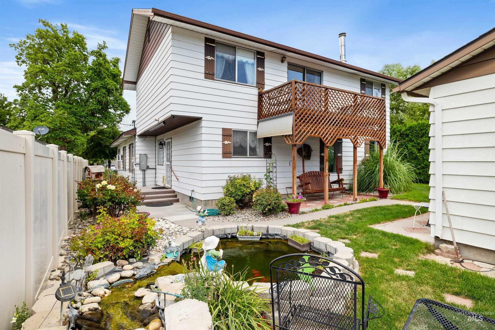 Step into a home where charm meets modern convenience! This 4-bedroom, 2.5-bathroom gem offers 2,460 sq ft of thoughtfully designed living space on a beautifully manicured corner lot. Imagine starting your mornings on the second-floor balcony, sipping coffee as you overlook your private fish pond, or hosting unforgettable gatherings on the expansive patio surrounded by lush landscaping. Inside, the spacious family room with a cozy wood-burning stove invites you to relax, while the large master suite or versatile office/craft space that cater to your every need. Outdoor enthusiasts will love the garden space, irrigation system, and detached 2-car garage with workshop potential. Conveniently located near schools, shopping, and amenities, this home is a rare find that blends historical charm with modern comforts. Homes like this don’t come around often—schedule your private tour today and make it yours before it’s gone!
