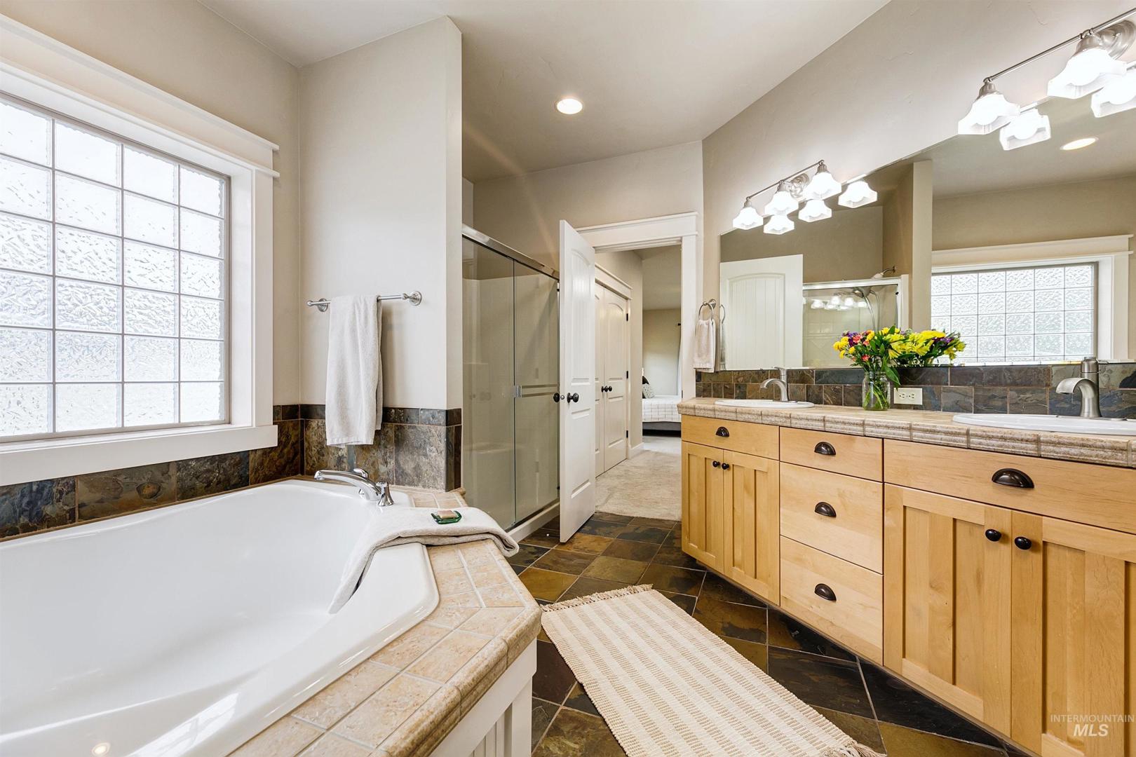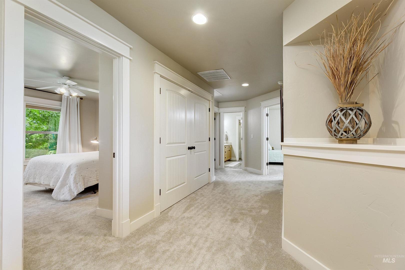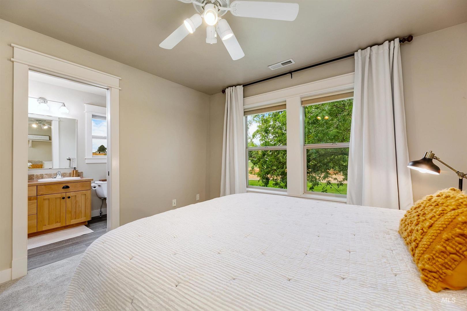 Gracefully poised on .74 acres at the end of a quiet cul-de-sac in Star’s coveted Westpointe neighborhood, this impeccably maintained 3,138 sq ft home offers the freedom of acreage living just one mile from downtown. With no rear neighbors, the setting unfolds as a private retreat featuring mature landscaping, fruit trees, grape vines, blackberry and raspberry bushes, raised garden beds, a spacious firepit, in-ground trampoline, sports court, and room for a future shop. The thoughtful floorplan includes a main-level primary suite with walk-in closet, secondary closet, and direct backyard access. A dedicated office and open living spaces capture serene, park-like views, while the kitchen overlooks the expansive yard—ideal for everyday living and entertaining. Upstairs offers three bedrooms, including one with a private ensuite and walk-in closet, a versatile bonus room (potential fifth bedroom/media/playroom), and a full bath with dual sinks. Recent updates include a new roof (`25), interior and exterior paint, and carpet. Energy Star certification ensures efficiency and lower utility costs; HVAC and AC are biannually serviced. Three car tandem garage with work bench. Walk to nearby schools, enjoy Hunter Park across the subdivision, easy Hwy 16 access, and sunrise views over Bogus Basin. Acreage of this caliber, moments from Star’s amenities, is truly exceptional. Welcome home.