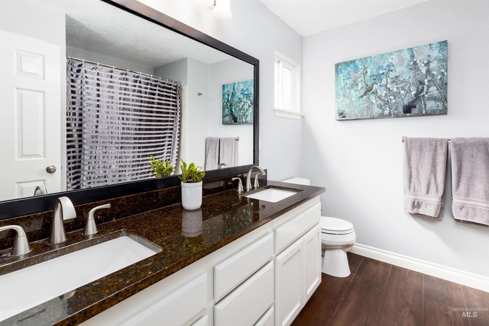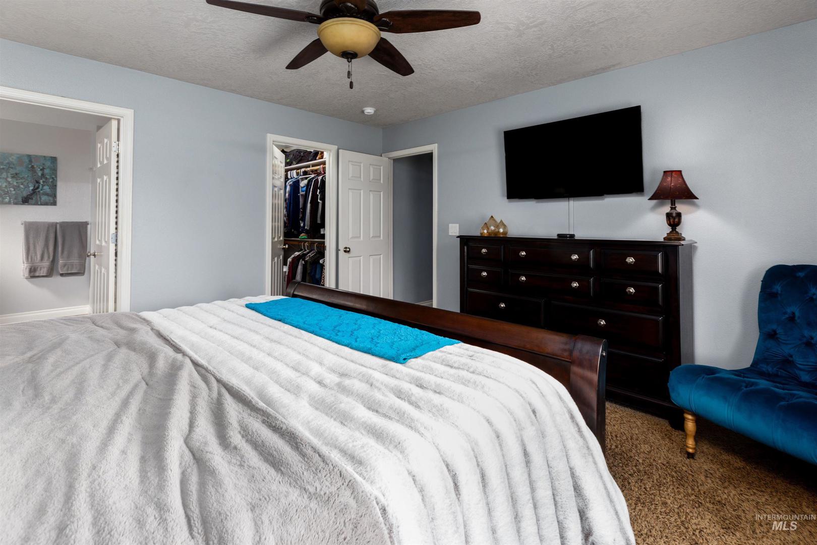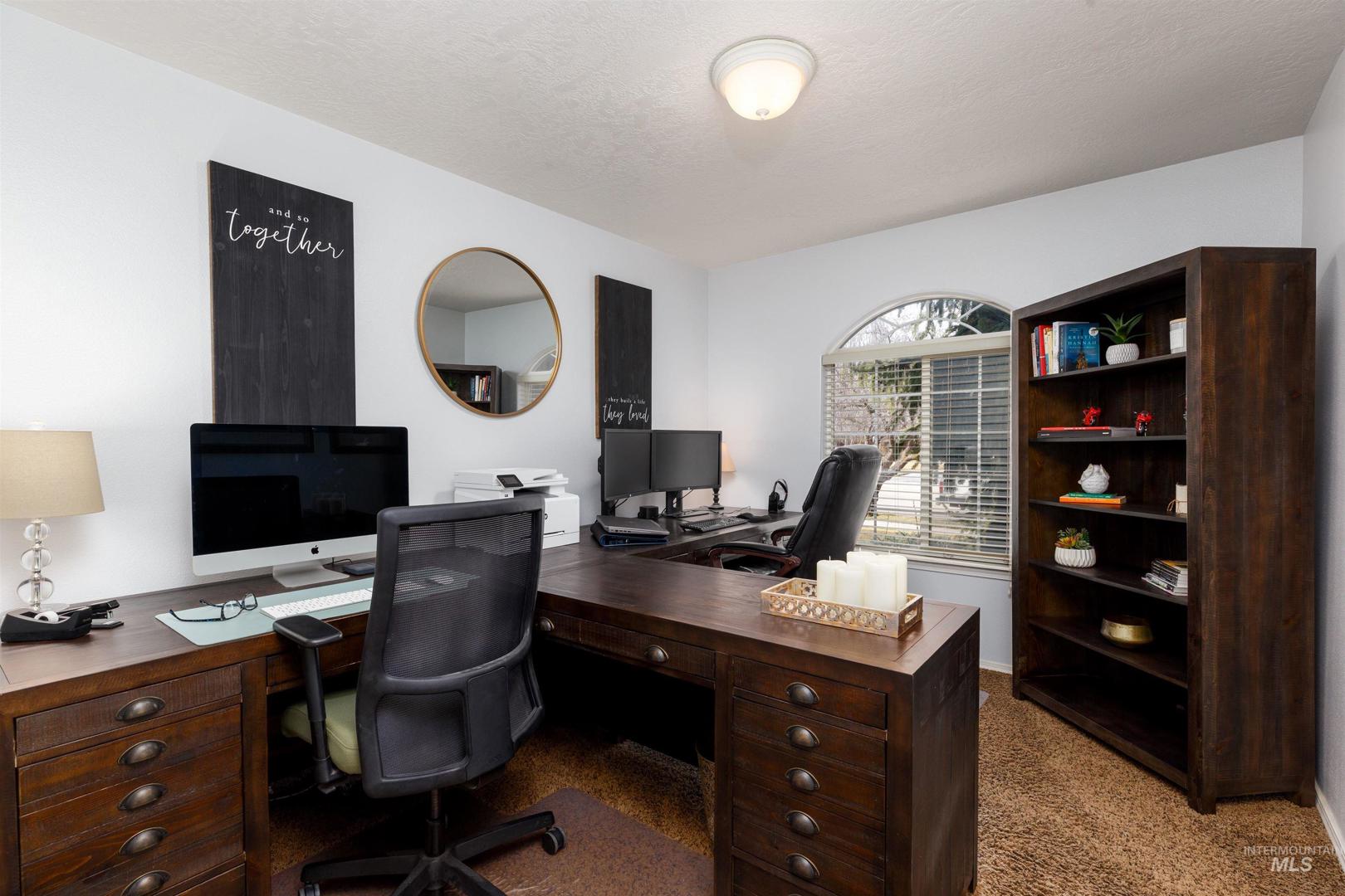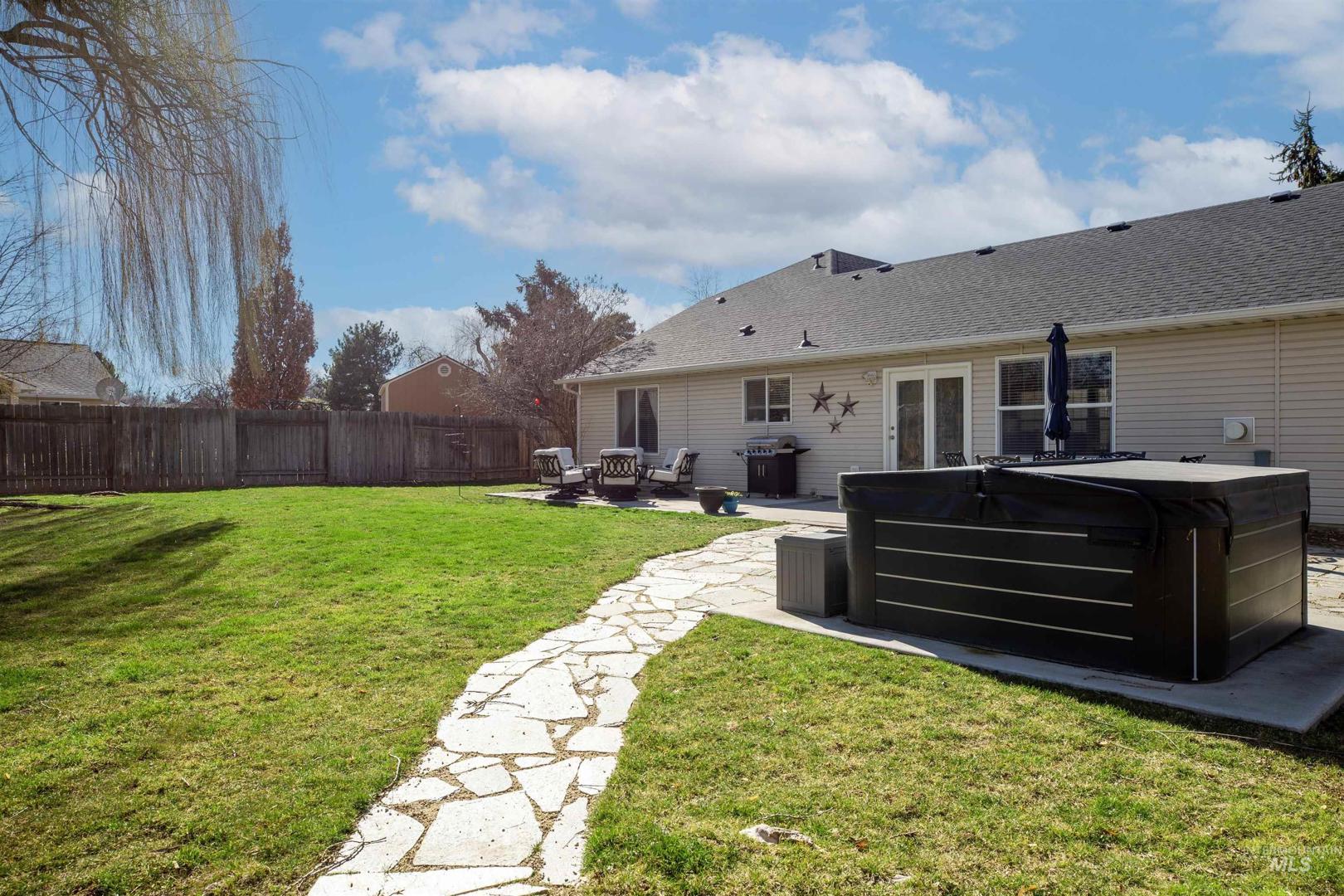 Wonderful home including a brand new roof covering this true 4 bedroom + formal dining or office area AND separate bonus room. Nice kitchen boasts double oven, granite countertops & full tile backsplash, laminate flooring (throughout entry, living area, kitchen & dining area too) pantry & central vac kickplate for easy cleanup. Kitchen opens to great room with cozy rock fireplace. Large main level primary bedroom has deep soaker tub with tile surround, walk-in closet, ceiling fan and dual vanities. Utility room with tile floors and access to the private bonus room with skylights, ceiling fan & wired for surround sound. Extra amenities include water softener, central vac, CAT 5 wiring, storage shed, insulated interior walls for sound, insulated and finished garage and new HVAC system installed in July, 2024. All of this with a large, East facing backyard for year round enjoyment on the extended patio with multiple seating areas. Relax in the pristine, nearly new hot tub. Pressurized irrigation for inexpensive watering. Tree-lined streets in this lovely neighborhood with location location location! Minutes to shopping, medical, freeway access and the Village. Welcome Home!