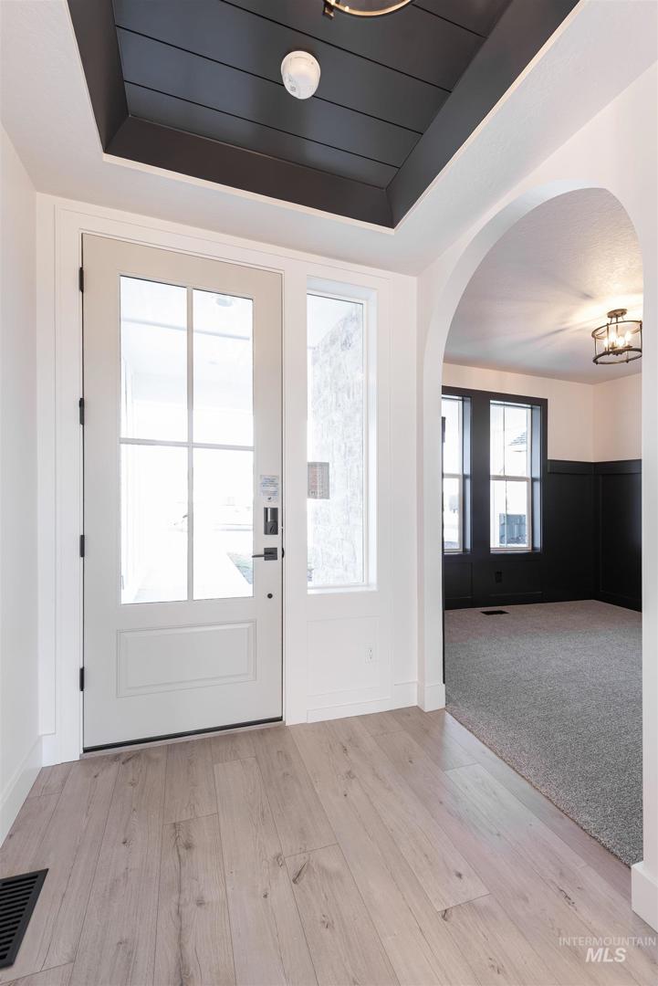 The Cordova is one of Eaglewood Homes` most efficient designs! It is a versatile 4 bedroom home with the master suite and office on the first floor, and 3 bedrooms upstairs. You can use the largest upstairs bedroom as a spacious bonus room, home theater, or guest room. The beautiful downstairs office has custom accent trimwork and a secret closet door built-in The Cordova is packed with high quality features, stunning design, and luxury all in 2500 sq. ft! This home includes a covered patio, full front and back landscaping and is HERS rated for lower utility bills. Every Eaglewood home comes with premium Moen plumbing fixtures, custom cabinetry, and expertly chosen selections with high quality materials and finishes. Step outside to a neighborhood full of parks, walking paths, community pools, and fiber-optic internet — all within easy reach of Kuna and Meridian amenities. Your dream home awaits! BTVAI. Home is complete, ALL PHOTOS ARE ACTUAL. Bring your real estate agent for access to tour the home via lock box, or tour on your own with just a smartphone and ID!