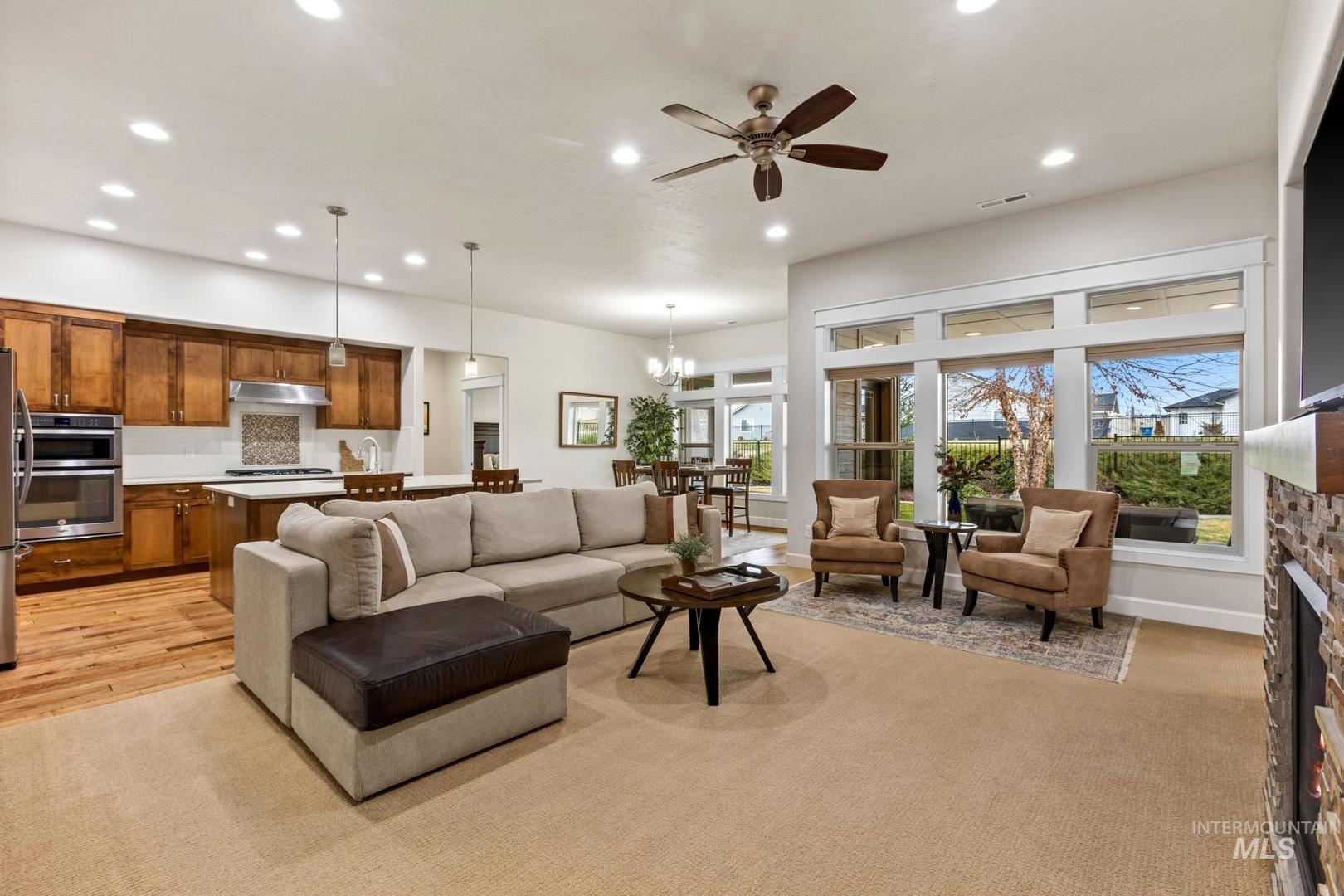 Modern Luxury Meets Ultimate Utility. Built in 2017 by Evergreen Homes, this immaculate 2,270 sq. ft. residence in Starcreek offers the perfect Idaho lifestyle. The open-concept interior shines with soaring ceilings, a gourmet kitchen featuring granite counters, stainless steel appliances, and a versatile split-bedroom floor plan designed for privacy. A massive 2-car garage plus a 45’ deep RV bay with a 14’ door and full hookup, the ultimate sanctuary for your boat, toys, or workshop. Step outside to a beautifully landscaped .22-acre lot with a covered patio, pressurized irrigation, and stunning views of Bogus Basin. Located just minutes from top-rated schools and the heart of Star, this home is turnkey and ready for its next chapter.