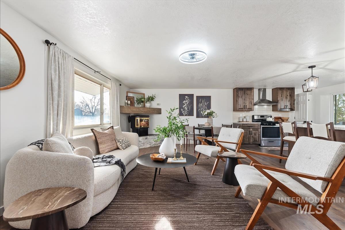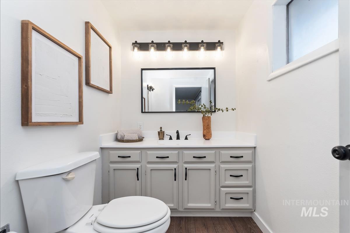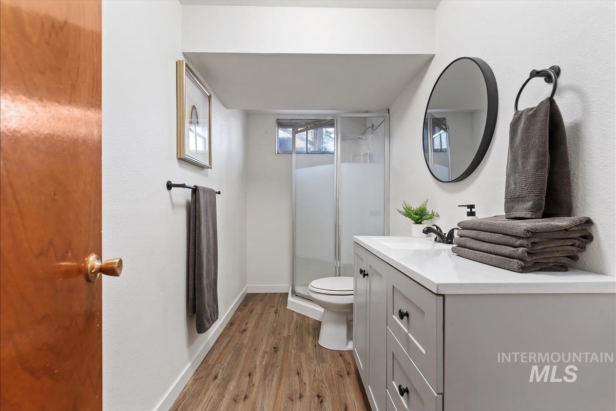Beautifully updated home offering plentiful space both inside and outside, RV parking & no HOA/CC&Rs! You`re welcomed into a sunny open great room with beautiful LVP throughout the entire main level. Snuggle up around the fireplace sitting on a raised hearth w/stone front & beneath a stately mantle. Gather in the kitchen around your 11`x4` island, admiring the custom cabinetry, full tile backspace, farmhouse lighting & sink & stainless appliances. The gas range & huge walk in pantry are ideal for any cook! The kitchen leads out to the covered back patio-ready for BBQs & overlooking the huge back yard complete with fire pit area, play set, raised garden beds & double gate w/alley access. The main bathroom offers a tiled shower surround, new vanity w/quartz countertop & new light fixtures. The master bedroom has a private 1/2 bath w/refinished vanity, new mirror & lighting! Head downstairs to find brand new LVP throughout, a huge recreation/family room, full (remodeled) bathroom & an additional bedroom & laundry/office/craft/flex room. There are so many upgrades throughout..bedroom ceiling fans, new paint, new lighting throughout, custom wood/metal stairwell railing, extra deep garage, new garage door/opener, new shutters, new railing & huge mature trees...All within walking distance to the Homedale boat ramp into the Snake River, the Homedale City Pool & Homedale High football field!