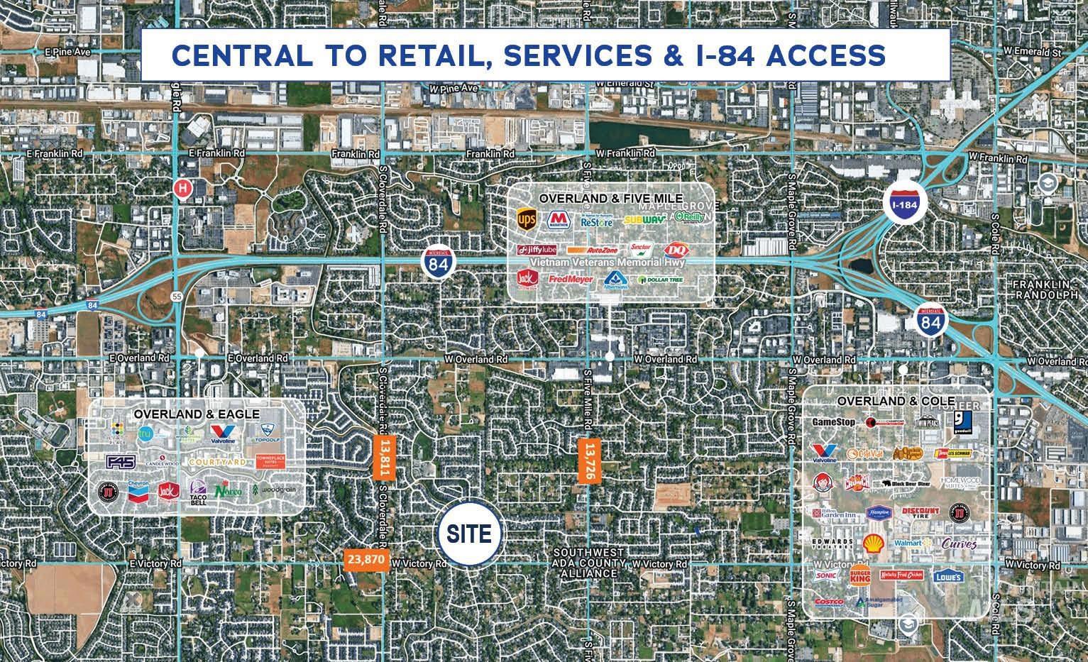Prime Residential Lots – +/-0.5 Acres in the desirable Pepperwood Estates neighborhood. Lots can be purchased separately or together. Single-Family Residential Zoning – Ideal for a custom home build in a quiet, established area. Convenient South Boise Location – Close to Pepper Ridge Elementary, Mountain View High School, Gem Prep Meridian Charter School, and Siena Elementary. Peaceful Cul-de-Sac Setting – Enjoy privacy with limited traffic and mature surrounding homes. Utilities Available – Located within Boise city limits with access to city services. Strong Community Appeal – Quick access to shopping, dining, parks, and major arterials, including Victory and Cloverdale Roads. No taxes as lots are owned by the Boise School District. Please see flyer in documents for more info