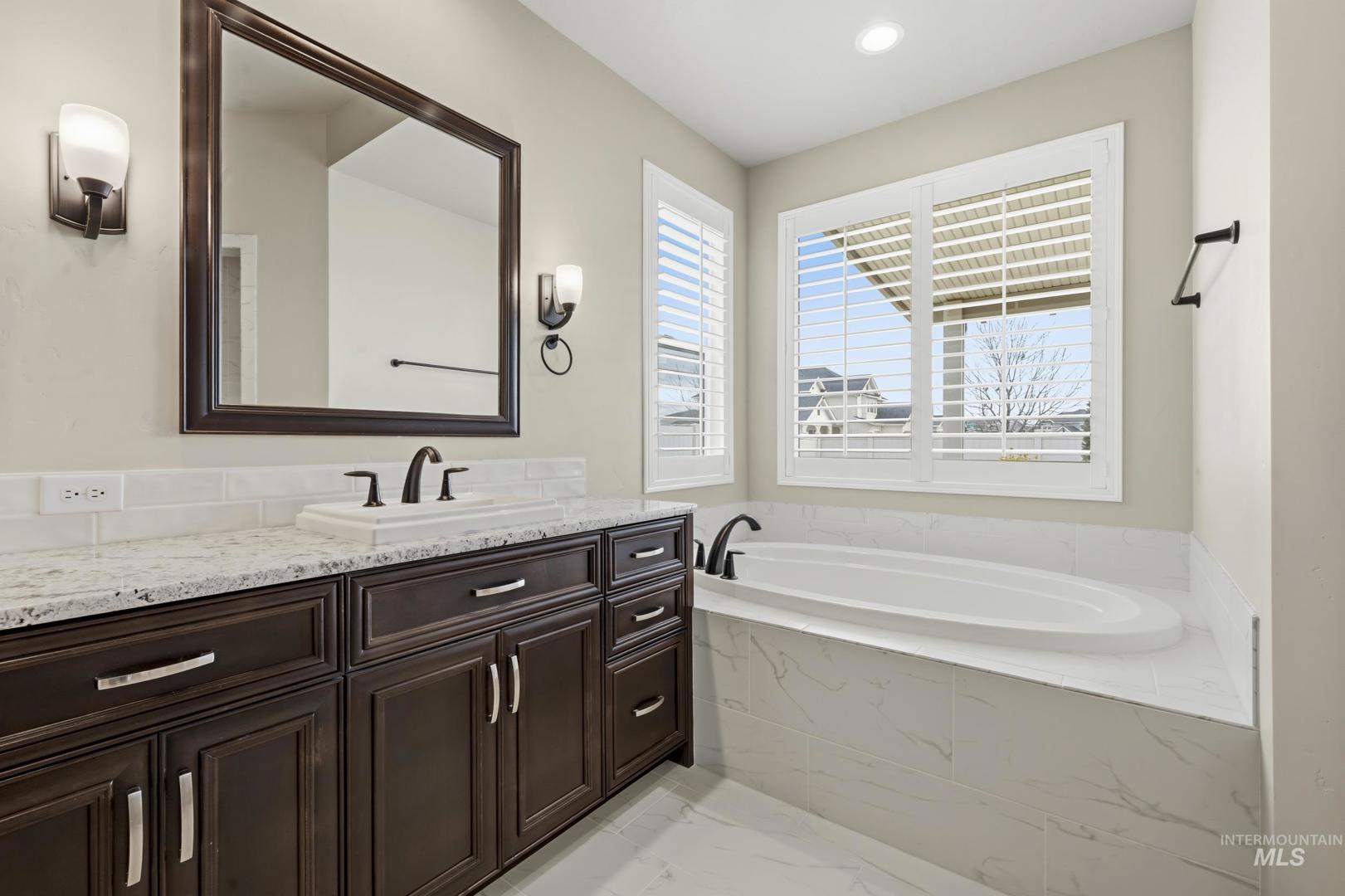 This stunning home has many wonderful features! Located in sought after Oaks North community. This single level residence features a split bedroom design with 3 spacious bedrooms, office, family room, formal dining room, plantation shutters, rock fireplace, custom accent walls, extra strorage closets & instant hot water. Stunning kitchen features custom cabinets, large island, walk in pantry & a butlers panrty. Primary suite icludes 6 ft soaker tub, tile walk in shower, dual vanities & large walk in closet. Private backyard features plenty of privacy with no rear neighbors, custom landscaping, two large patios, extensive concrete, boulders and room for boat or trailer parking on the side! Oversized 3 garage features epoxy floors. This immaculate home also feautres 2 water heaters, 2 Ac`s & 2 furnaces & accent soffit lighting. This community has alot of great ammenities including parks, walking paths, pool, pickle ball courts, basketball courts & food trucks throughout the summer months!
