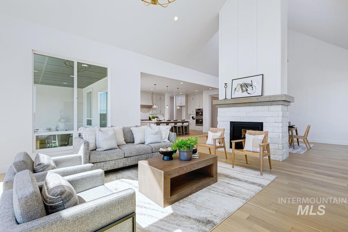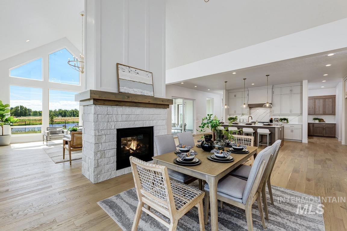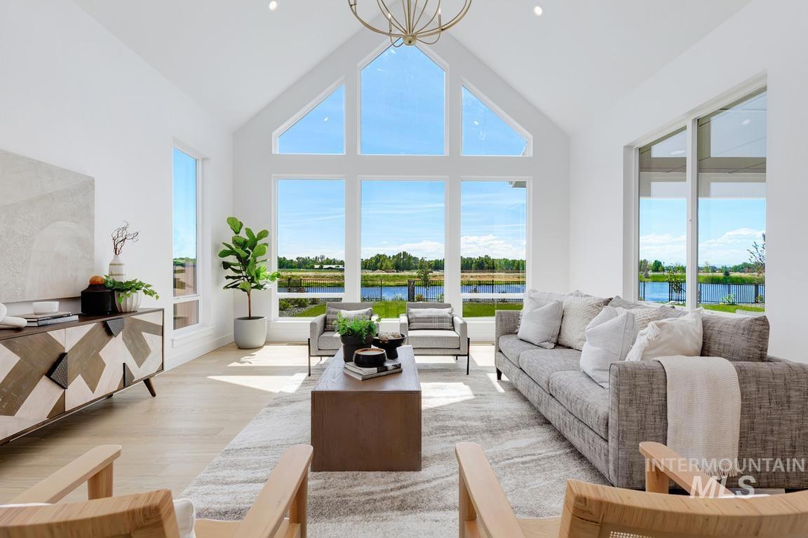 This Palisade home with RV garage offers single-level living on a premier lakeshore homesite. A long entry opens to a vaulted great room anchored by a dual-sided fireplace that brings warmth and architectural beauty to the main living space. The gourmet kitchen flows off the dining area and great room, and includes an oversized island, handsome cabinetry, and walk-in and butler’s pantries. Just off the kitchen, you’ll find direct access to the covered patio that captures exceptional lakeside views. Tucked away, the primary suite serves as a private sanctuary framed by wraparound windows, complete with a master bath featuring a fully tiled shower, freestanding tub, and expansive walk-in closet. Now open, the River Park Estates Clubhouse offers endless opportunities for activity and relaxation presented in a beautiful modern aesthetic. Enjoy coveted community access to the Boise River, pickleball, swimming, lounge areas, and more. Home is under construction with a July 2026 completion date. Rendering for illustrative purposes. Photos similar.