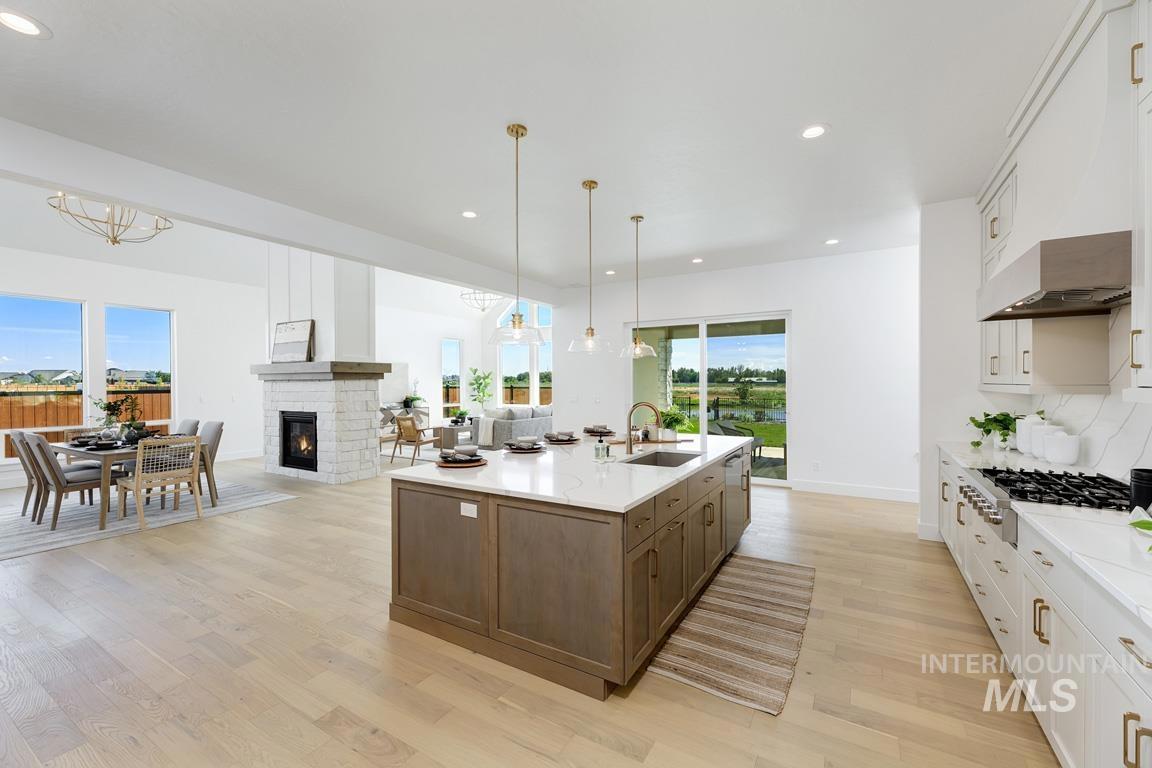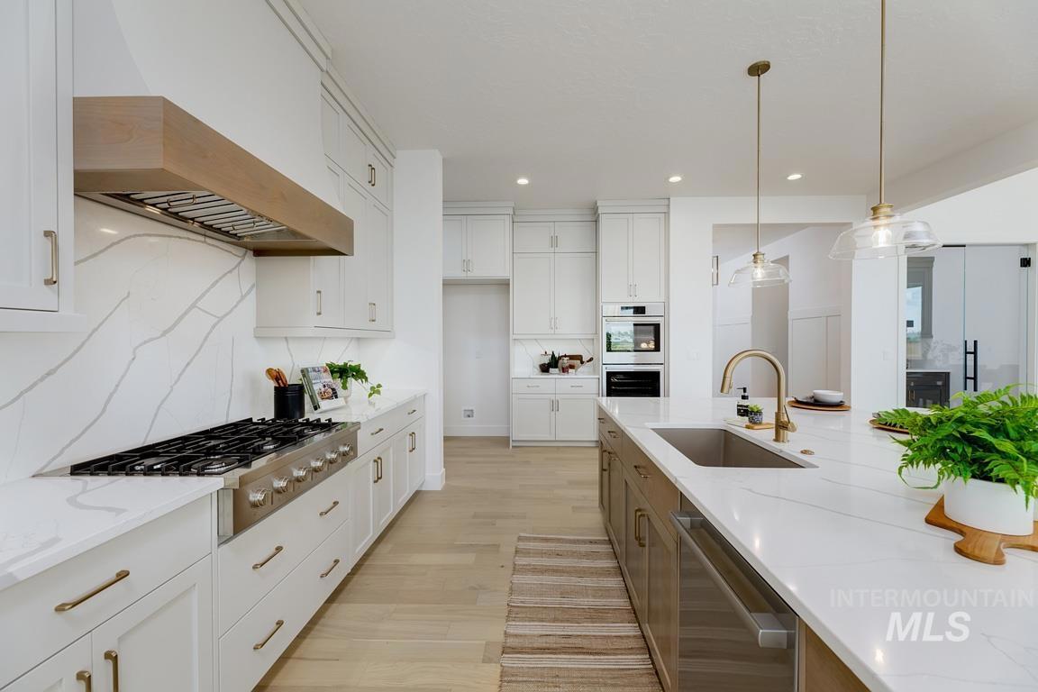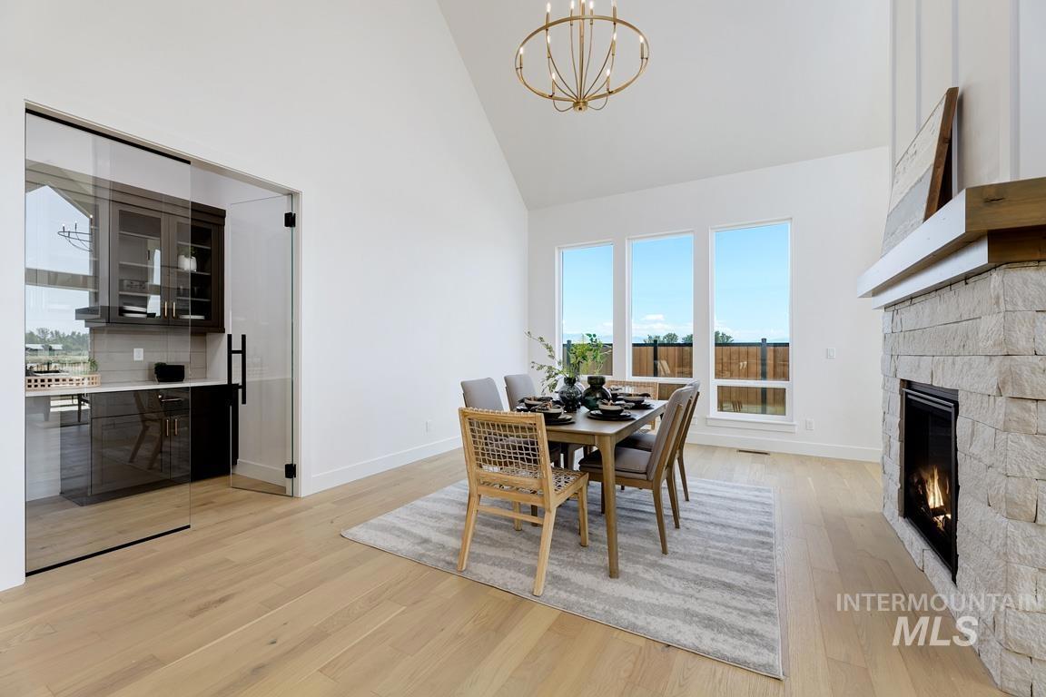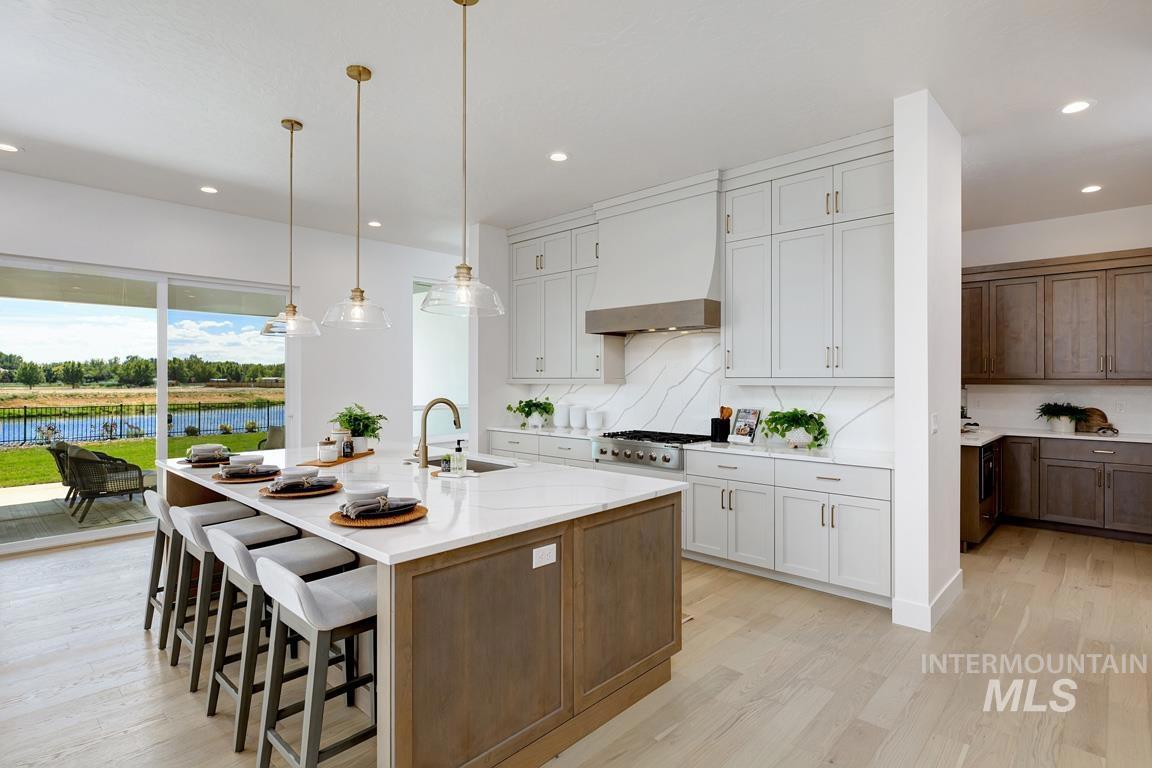 This Palisade home with RV garage offers single-level living on a premier lakeshore homesite. A long entry opens to a vaulted great room anchored by a dual-sided fireplace that brings warmth and architectural beauty to the main living space. The gourmet kitchen flows off the dining area and great room, and includes an oversized island, handsome cabinetry, and walk-in and butler’s pantries. Just off the kitchen, you’ll find direct access to the covered patio that captures exceptional lakeside views. Tucked away, the primary suite serves as a private sanctuary framed by wraparound windows, complete with a master bath featuring a fully tiled shower, freestanding tub, and expansive walk-in closet. Now open, the River Park Estates Clubhouse offers endless opportunities for activity and relaxation presented in a beautiful modern aesthetic. Enjoy coveted community access to the Boise River, pickleball, swimming, lounge areas, and more. Home is under construction with a July 2026 completion date. Rendering for illustrative purposes. Photos similar.
