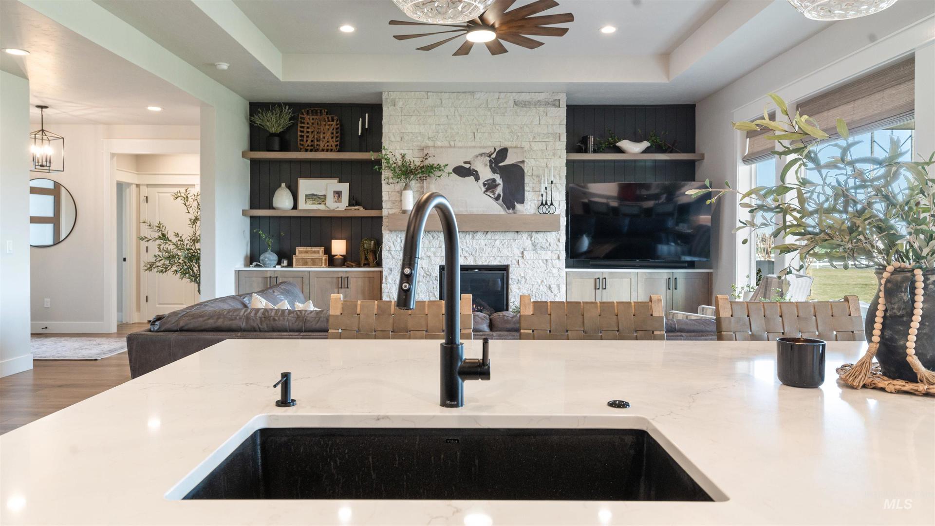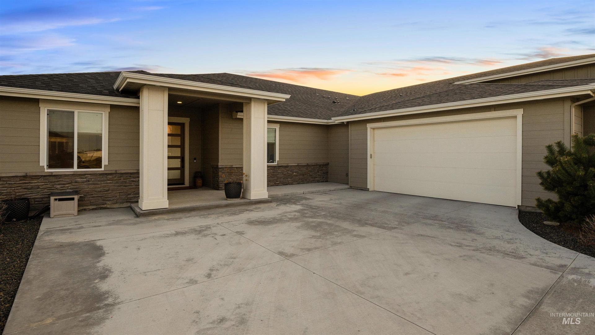 Custom built Single level home on a large 1.25 acre lot w/ no rear neighbors and a stunning view of the Owyhee Mountains. Your chefs kitchen features a high end Thermador appliance package, granite countertops, to-the-ceiling cabinetry w/ under cabinet and toe kick lighting plus a large walk in pantry w/ appliance shelf. Master suite is impressive w/ its own South facing mountain views, massive bathroom w/ dual vanities and a jaw dropping oversize his/hers closets. High end window treatments throughout Convenient location with a short 5 minute commute to Lake Lowell for boating and a quick jaunt to hospitals, shopping, restaurants, coffee and entertainment!