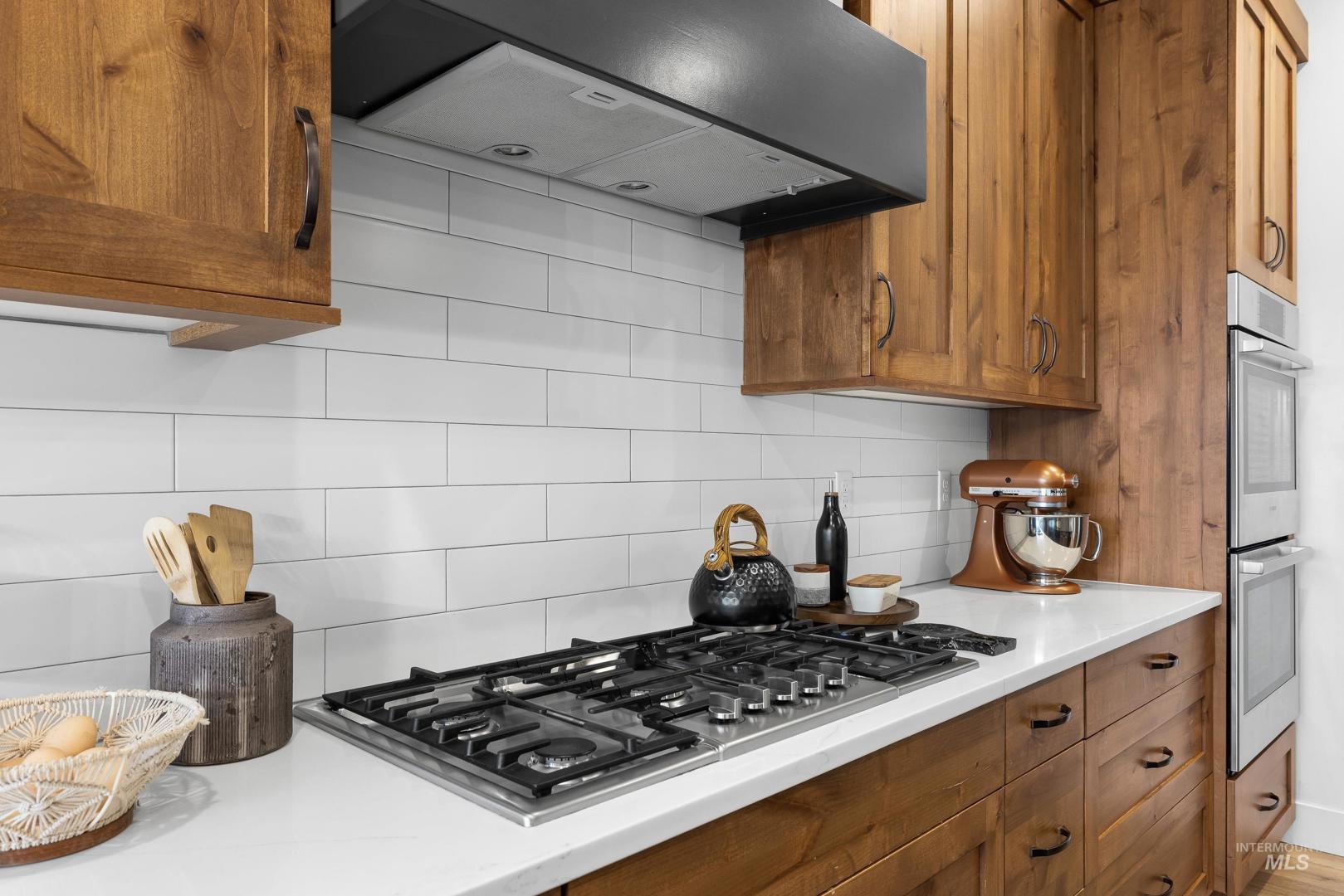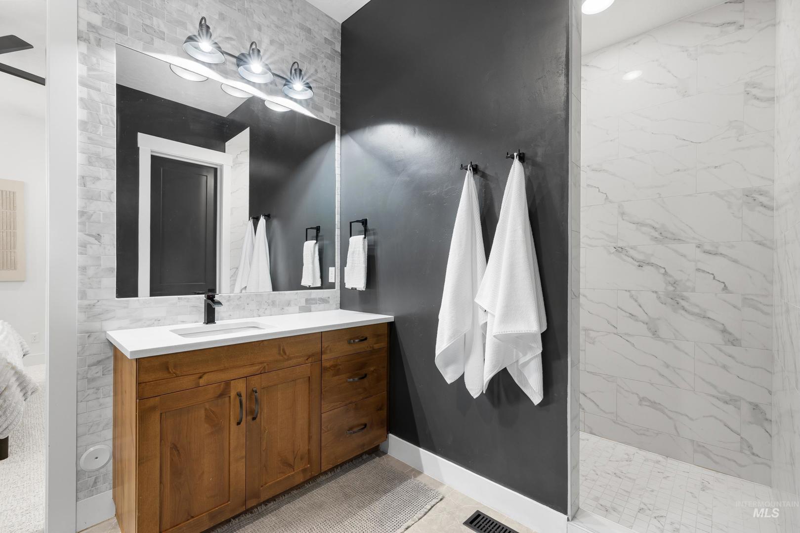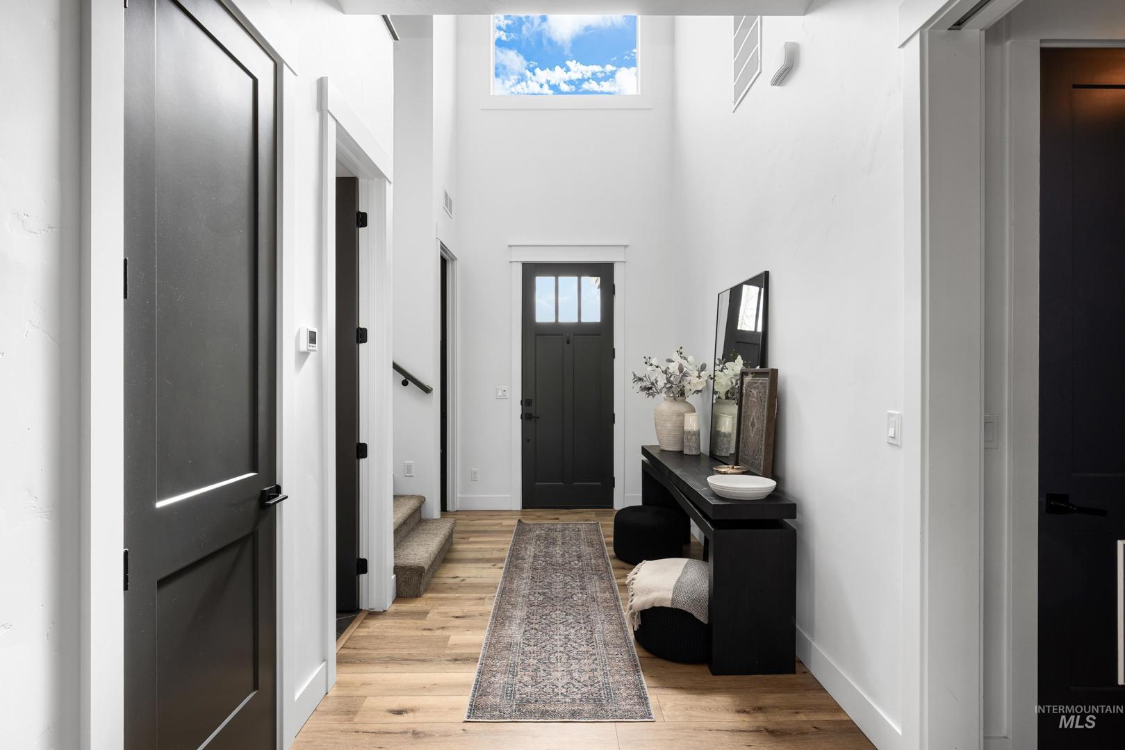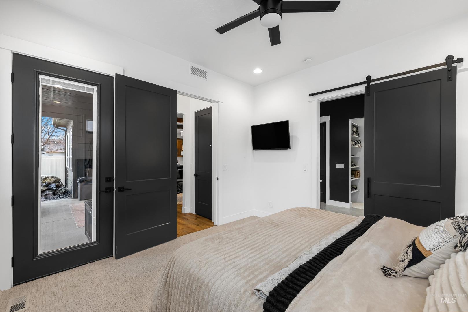 Custom built and packed with upgrades! An Idahoan`s dream 1,220SF garage with a 50` pull through rv bay and built in storage. Situated on a massive 0.28 acre private lot backing to acreage neighbors and sitting on a culdesac out front. The backyard is a patio lovers paradise with a 50` wide concrete pour that opens up to a large covered patio and dog run with pet turf, water feature, paver finished fire pit, swing set with slide, well maintained lawn and evergreen trees. The double sliding glass doors open up the living room to the patio, perfect for those that love to host. The kitchen includes a custom cabinetry package, beverage center, marbled quartz and leathered granite countertops, Bosch appliances and large walk in pantry with butlers shelf. Main level master with dual vanities, walk in tile shower and connecting laundry / mud room. On the main level is another full bedroom/office and a powder bathroom for guests. Upstairs are two bedrooms split by a bonus room, full bathroom and a kitchenette. Quiet community with only 42 lots, friendly neighbors and walking distance to Ridgevue High School. North Nampa is a central hub for easy access to everything Ada and Canyon County. 7 minutes to CostCo, St Lukes and everything Karcher offers for shopping, dining and living. Garage gym is negotiable. Hard to find features at this price point and location!
