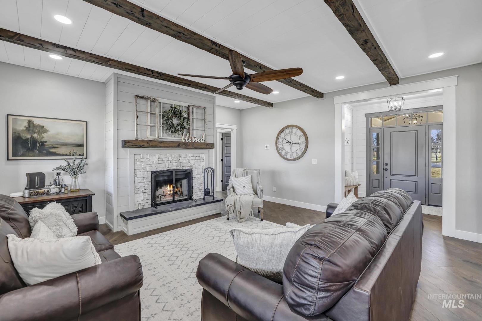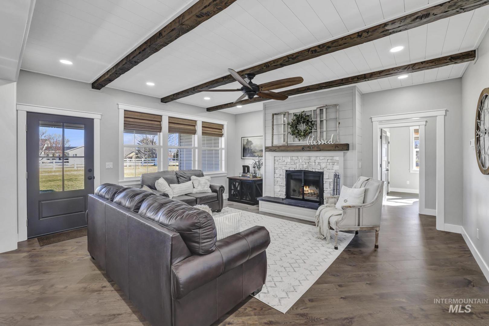 5 bedroom home on 1 acre with a 4 car garage, located in a desirable established subdivision. Built less than a year ago, this beautifully crafted home offers the perfect combination of modern finishes, spacious living and quality construction. Inside, the open concept layout features quartz countertops, custom trim work and high end finishes throughout. The kitchen flows seamlessly into the living and dining areas, creating an ideal space for entertaining or everyday living. Large windows provide abundant natural light and highlight the thoughtful design of the home. With five spacious bedrooms and three and a half bathrooms, there is plenty of room for family, guests or a home office. The large bonus room offers flexible space that could be used as a media room, playroom, gym or additional living area. The oversized four car garage provides ample space for vehicles, storage, recreational toys or hobbies. Situated on a full 1 acre lot, the property offers room to enjoy outdoor living, future landscaping, a shop or simply the privacy and space that acreage living provides.