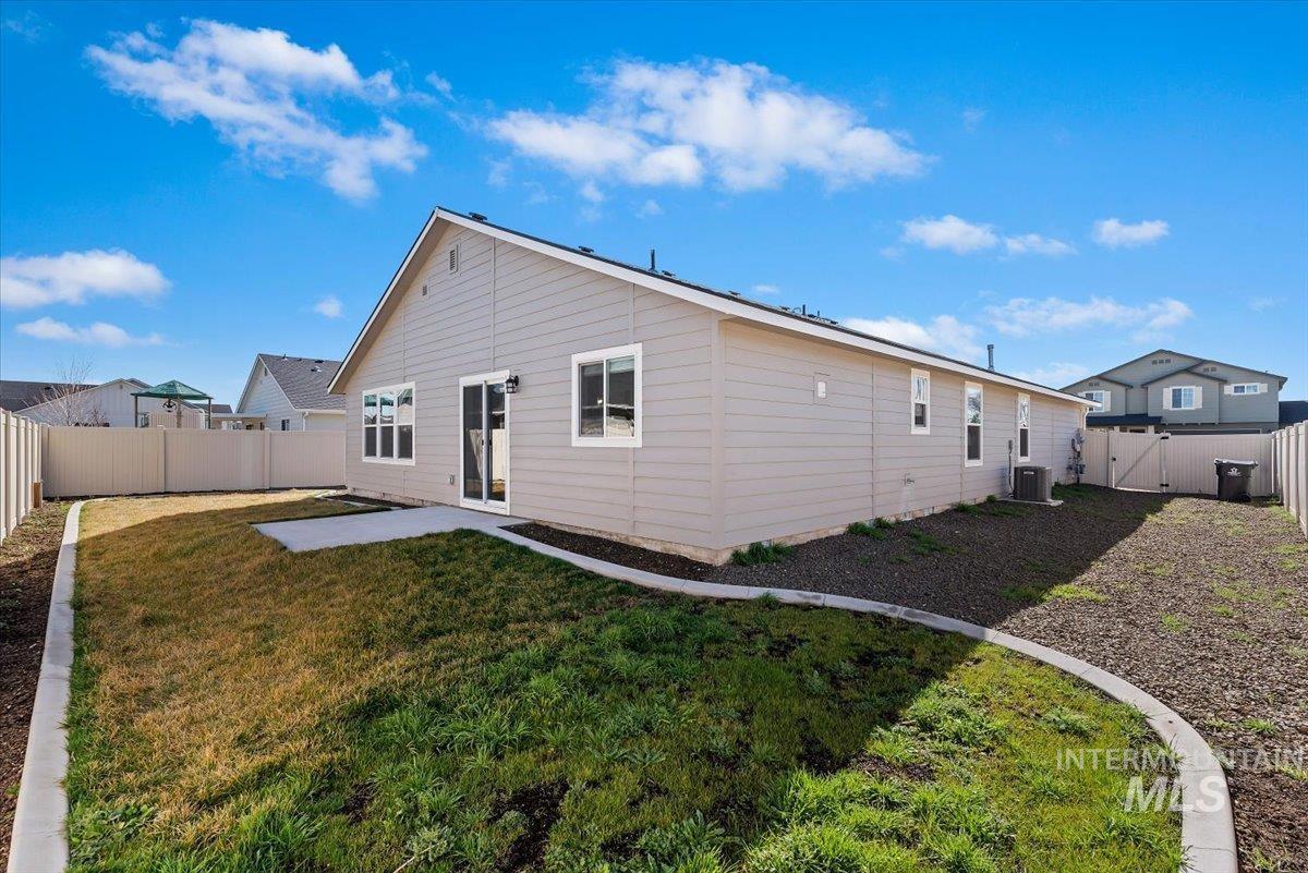 Offering 2025 square feet of comfortable living space, this thoughtfully designed 4-bedroom, 2-bath home blends openness with everyday functionality. The spacious living room flows effortlessly into the dining area, while the kitchen overlooks it all — creating a natural gathering space that feels connected and welcoming. Whether hosting friends or enjoying a quiet evening at home, the layout makes it easy to stay engaged. The primary suite provides a relaxing retreat, featuring a large bathroom with dual vanities and a walk-in shower. Generously sized bedrooms and ample closet space ensure everyone has room to spread out and stay organized. Upgrades include: A Culligan water softener, 2.5" plantation blinds throughout, potential RV parking, new GE microwave & range, new Bosch dishwasher, backyard french drain and irrigation bib, curbing around grass in front & back, 3/4" rounded rainbow rock, perimeter vinyl fencing with 2 side gates and fully repainted interior walls & garage. Conveniently located close to restaurants, shopping, and everyday amenities. Ridgecrest and Centennial Golf Courses are both within walking distance and Optimist Park just steps away—featuring 15 acres of football, soccer, and baseball fields, a playground, and picnic shelter—this location delivers an exceptional lifestyle for recreation, relaxation, and community connection.