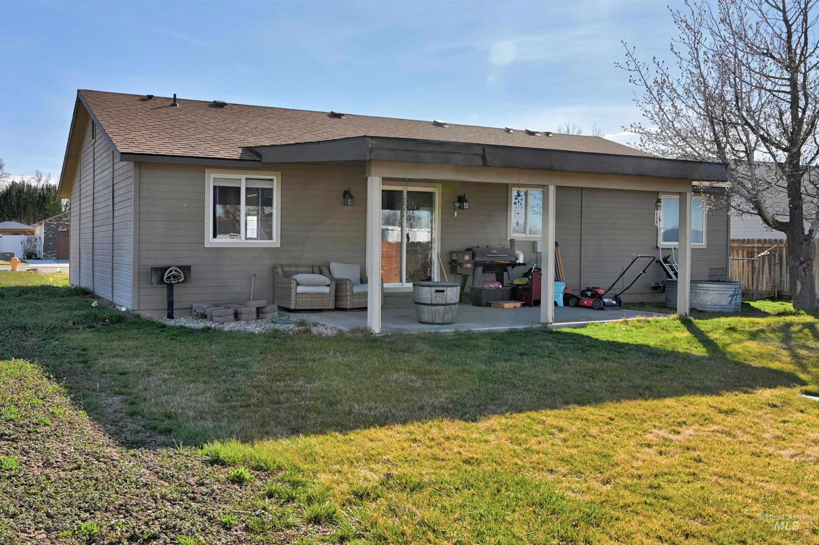 This charming 3-bedroom, 2-bath home with a 2-car garage sits on a desirable corner lot in an established Nampa neighborhood—with no HOA. Conveniently located near shopping, dining, and freeway access, this home offers both comfort and convenience.Inside, vaulted ceilings in the living room and kitchen create an open, airy feel. The kitchen features some newer cabinetry with some being soft-close cabinets, providing extra storage and a modern touch. A new water heater installed within the last year offers added peace of mind for the next owner. All appliances are included, and the refrigerator is also new within the last year. Outside you can enjoy the covered back patio, perfect for relaxing or entertaining, and the backyard provides space for gardening, chickens and much more! Located in a well-established neighborhood with mature surroundings, this home is a fantastic opportunity for buyers looking for a comfortable and conveniently located home.