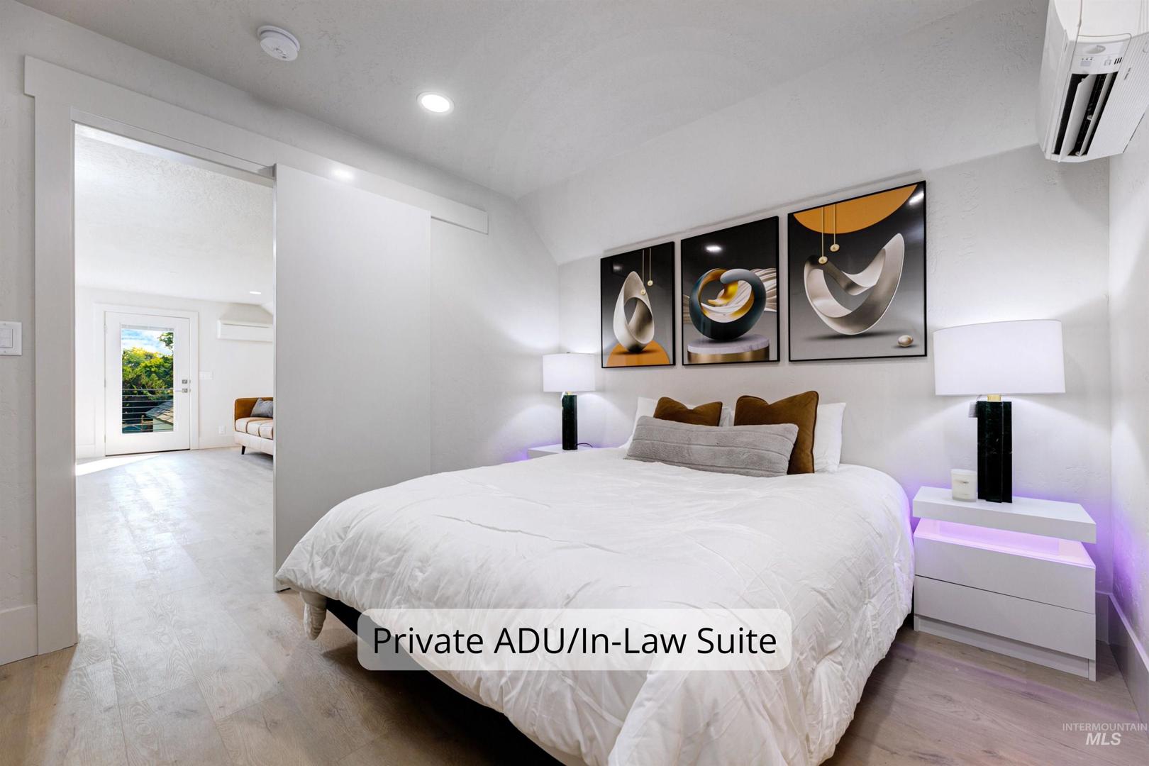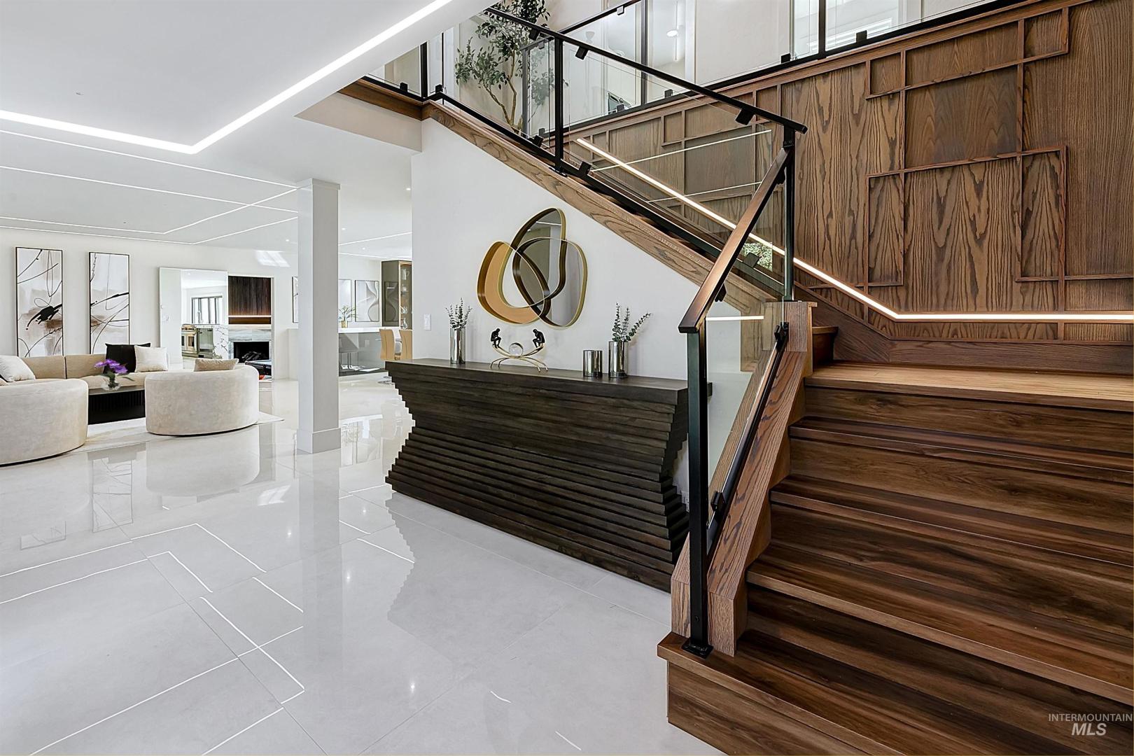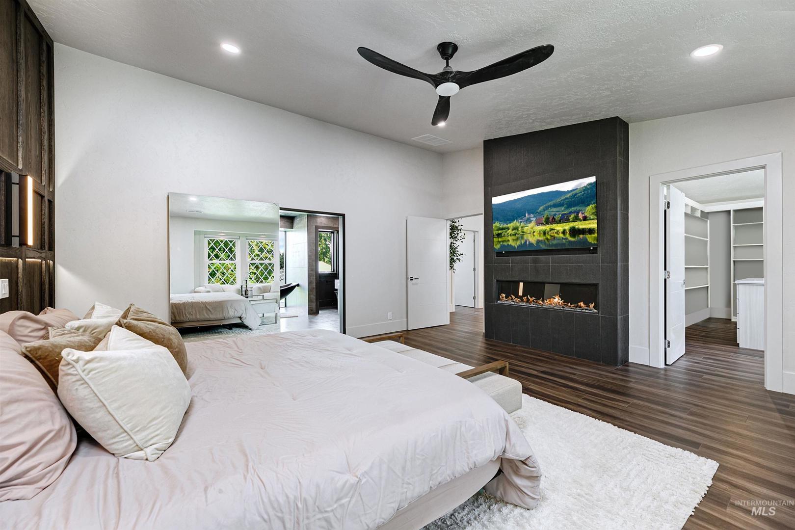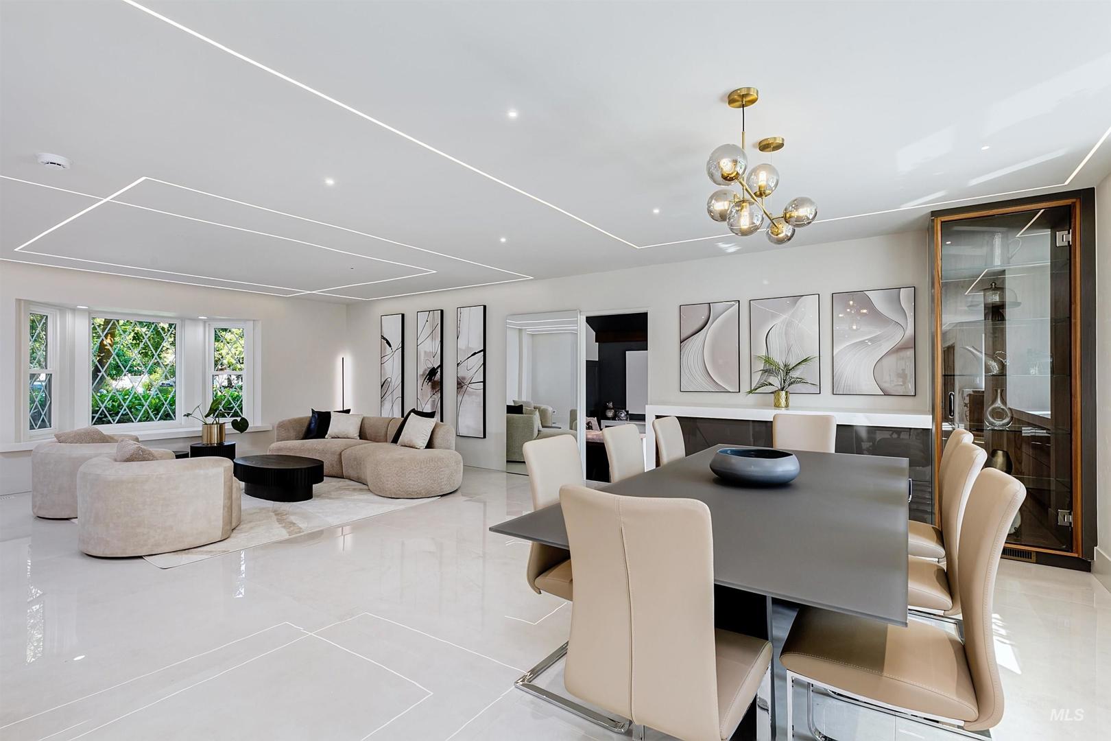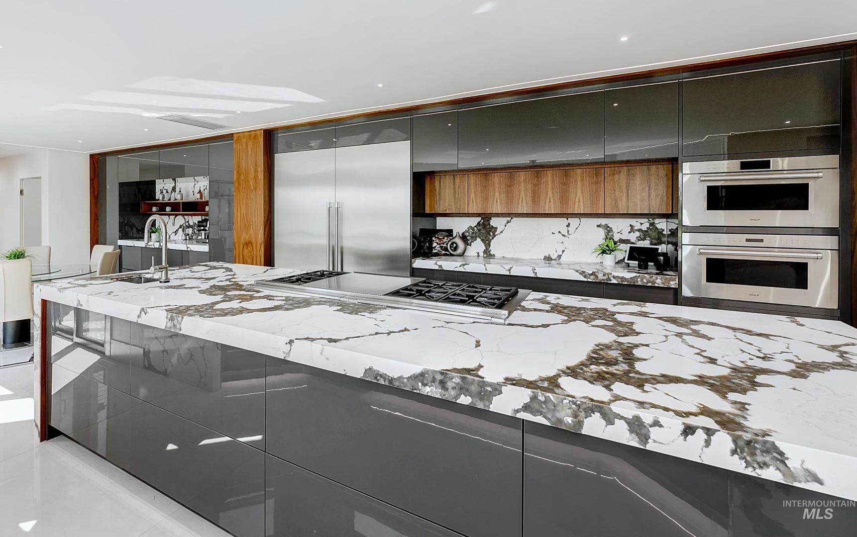 Properties offering this level of design, privacy, and resort-style amenities rarely come available in Eagle. Set on 1.7 elevated acres with sweeping foothills views, this home delivers a blend of modern architecture, luxury finishes, and an exceptional view setting. Thoughtfully remodeled by Legacy Homes in 2024, the 6,286 SF residence showcases craftsmanship and distinctive features throughout. At the center is a stunning chef’s kitchen with Wolf, Sub-Zero, and Thermador appliances, expansive quartzite surfaces, and custom detailing designed for everyday living and large-scale entertaining. A vaulted Great Room creates a dramatic gathering space, complemented by a hotel-inspired wine bar and seamless indoor-outdoor access to the saltwater pool and cabana. The Primary Suite offers a true retreat with heated stone floors, a sculptural floating tub, and panoramic views. The home includes an attached private apartment (In-Law Suite/ADU) with its own entrance, ideal for guests, extended living, or multi-generational flexibility. A detached heated three-car garage with a large upper storage room provides additional space for vehicles, hobbies, or equipment. Designed for both relaxation and recreation, the home features a hidden speakeasy lounge, dedicated home gym, massage room, hot tub, fire pit gathering area, solar panels, a large lawn space, and a full-sized fenced tennis court.