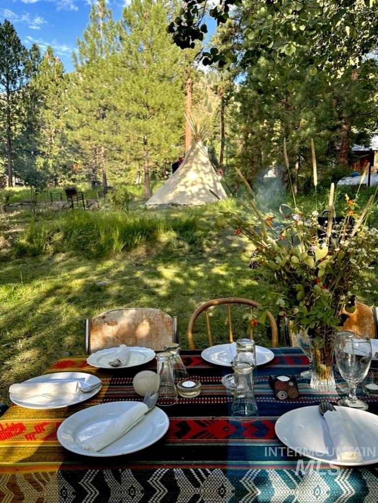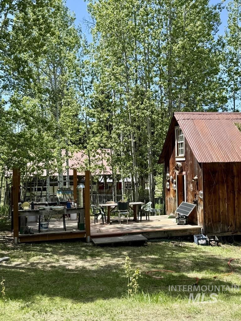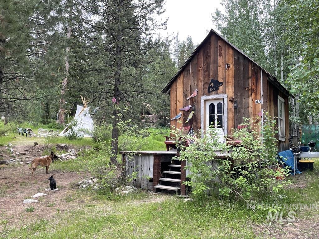 A rare opportunity to own a lot of this caliber in historic Atlanta. This exceptional corner property enjoys breathtaking Mountain views and sets on the edge of the Sawtooth Wilderness Area, a premiere location for back country adventures. On the west side of the lot find a charming historic one room cabin tucked into a grove of Aspens. The back deck has been extended, posts added, it is poised to be converted into an enclosed outdoor kitchen. The east side of oversized lot provides opportunity for growth. Community water is hooked up and power is available. Fire pit, antique wood stove, tipi, furnishings, shower tent and solar generator included. Year around access. See the stars at night & enjoy Atlanta’s history, arts, hiking, biking, fishing, pristine hot springs & rivers.