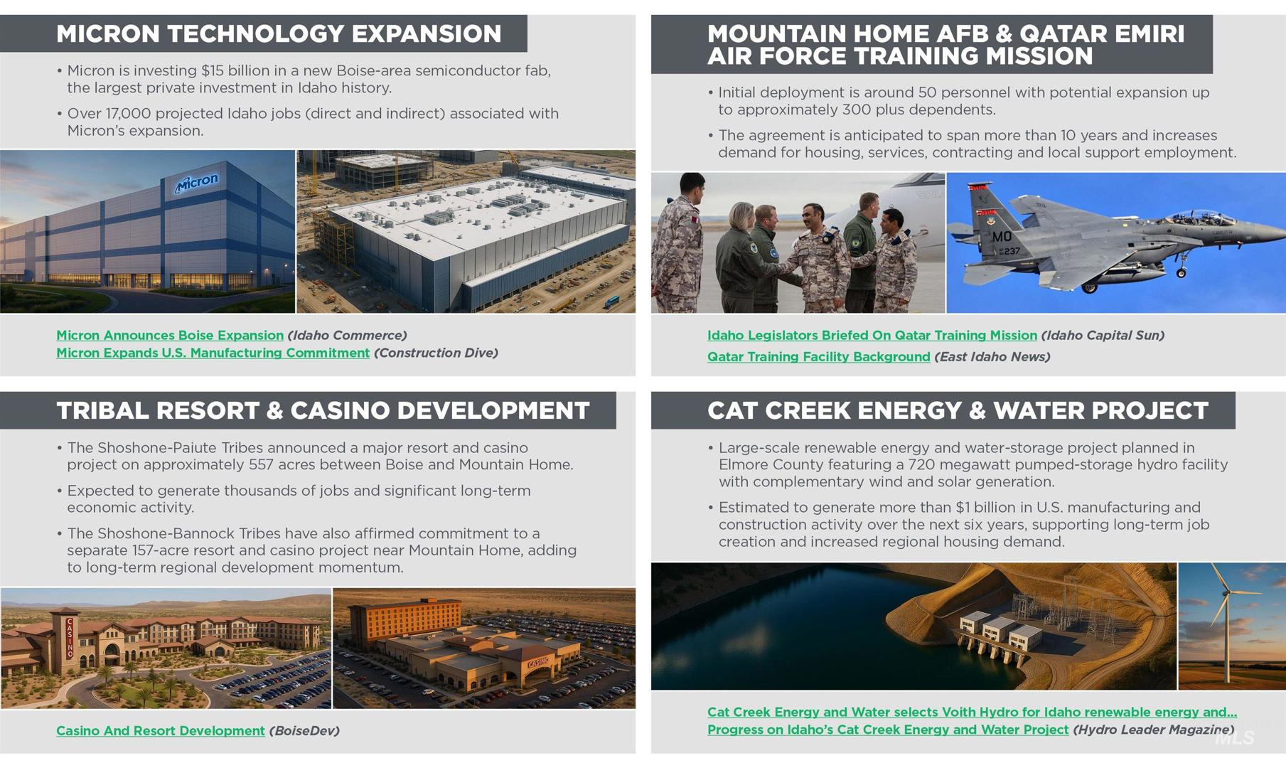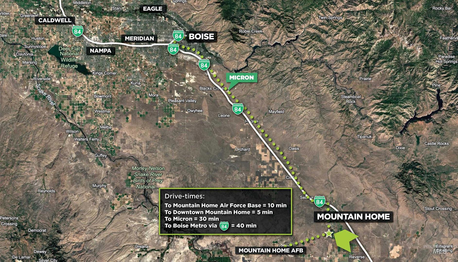 Incredible opportunity for development or land investment with significant upside appreciation in the heart of the next great growth market in Southern Idaho! City Water and Sewer are very close to property with available capacity and the area is slated for Mixed Use development in the comprehensive plan. With the unrelenting pace of the Micron expansion fueling housing need for the Valley, as well as the growth of the Mountain Home Airbase both organically and through strategic partnerships with Qatar and Singapore, this area is prime for burgeoning growth for decades to comejavascript:void(0);. Contemplated casino in Mountain Home would only elevate an already incredible growth story! Situated right on Highway 51, with ease of access to the base and only a short commute to Micron, this is a fantastic opportunity to provide a master planned community development to serve the coming growth. In the Mountain Home Impact Area, adjacent to City Limits. BTVAI