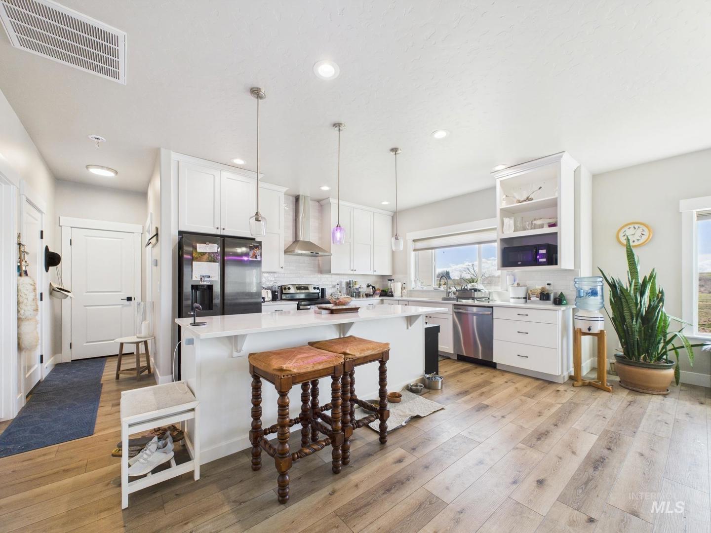 19 acres Horse set up. Water Frontage and Pond on Bissel Creek year around. new home 3 year old, (3) car garage-shop 36x24 fully insulated with wood stove. loafing building 72x12, covered riding and corrals 90x50, Hay cover 100x40, Large turn around area for trailers and equipment. home sets close to your pond with Bass, Long access from Black Canyon how ever a private setting for your family 4-H projects or full production. Have questions reach out to me and will be glad to contact Seller on questions. appointment only or add 40 acres to have 59 total acres 98976234
